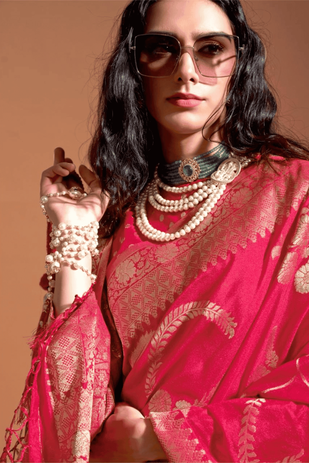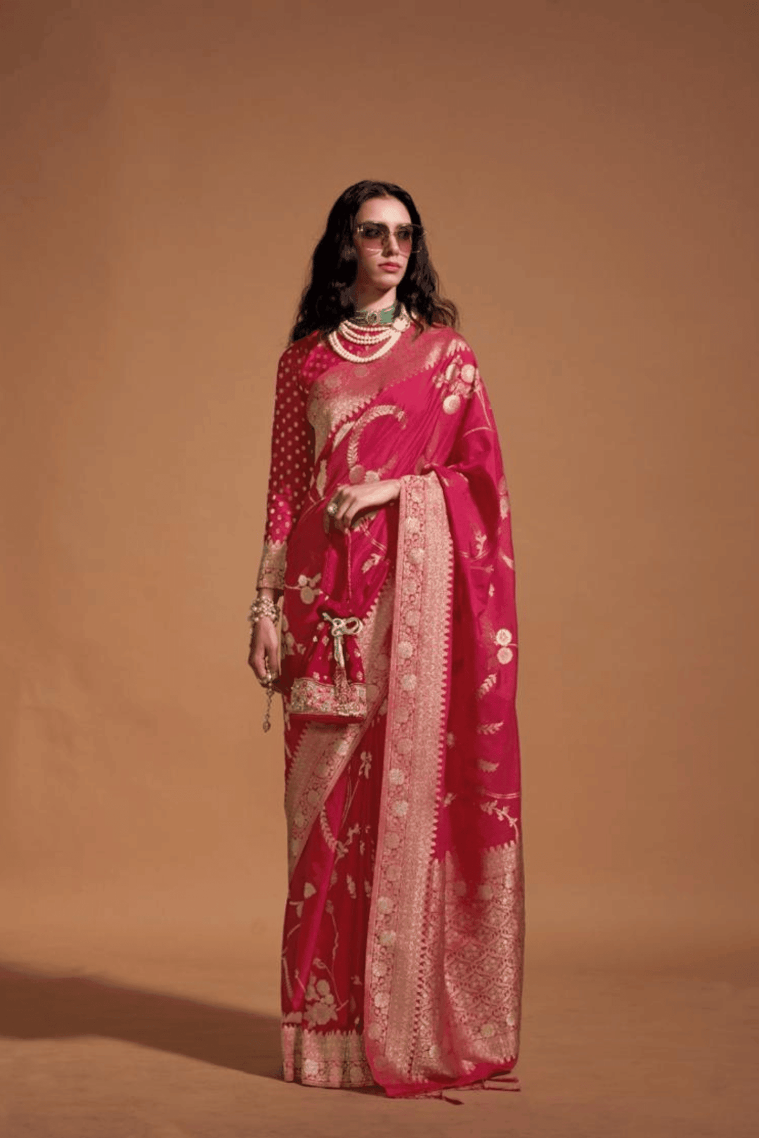 About: Introducing our royal heritage ready-to-wear Silk saree, a true masterpiece that is perfect for weddings and other special occasions. The saree comes with a contrasting blouse piece that has been designed to complement the saree perfectly. You can easily drape this saree without any hassle as it comes ready-to-wear with a pre-stitched pleats.