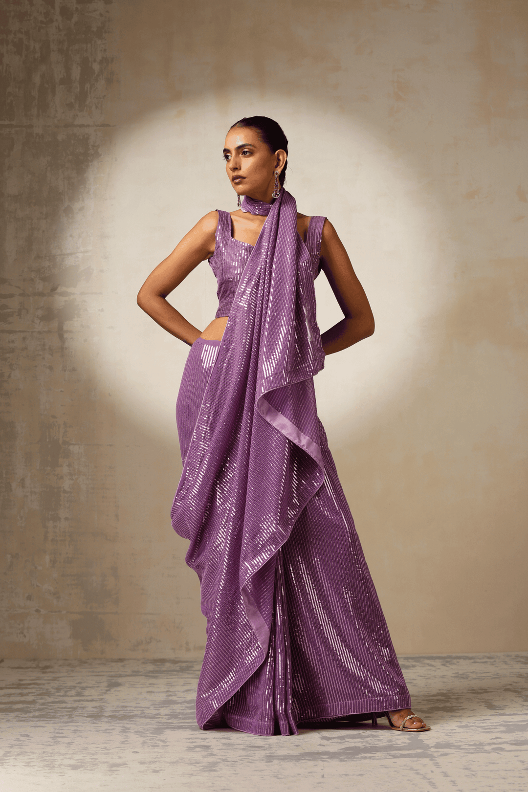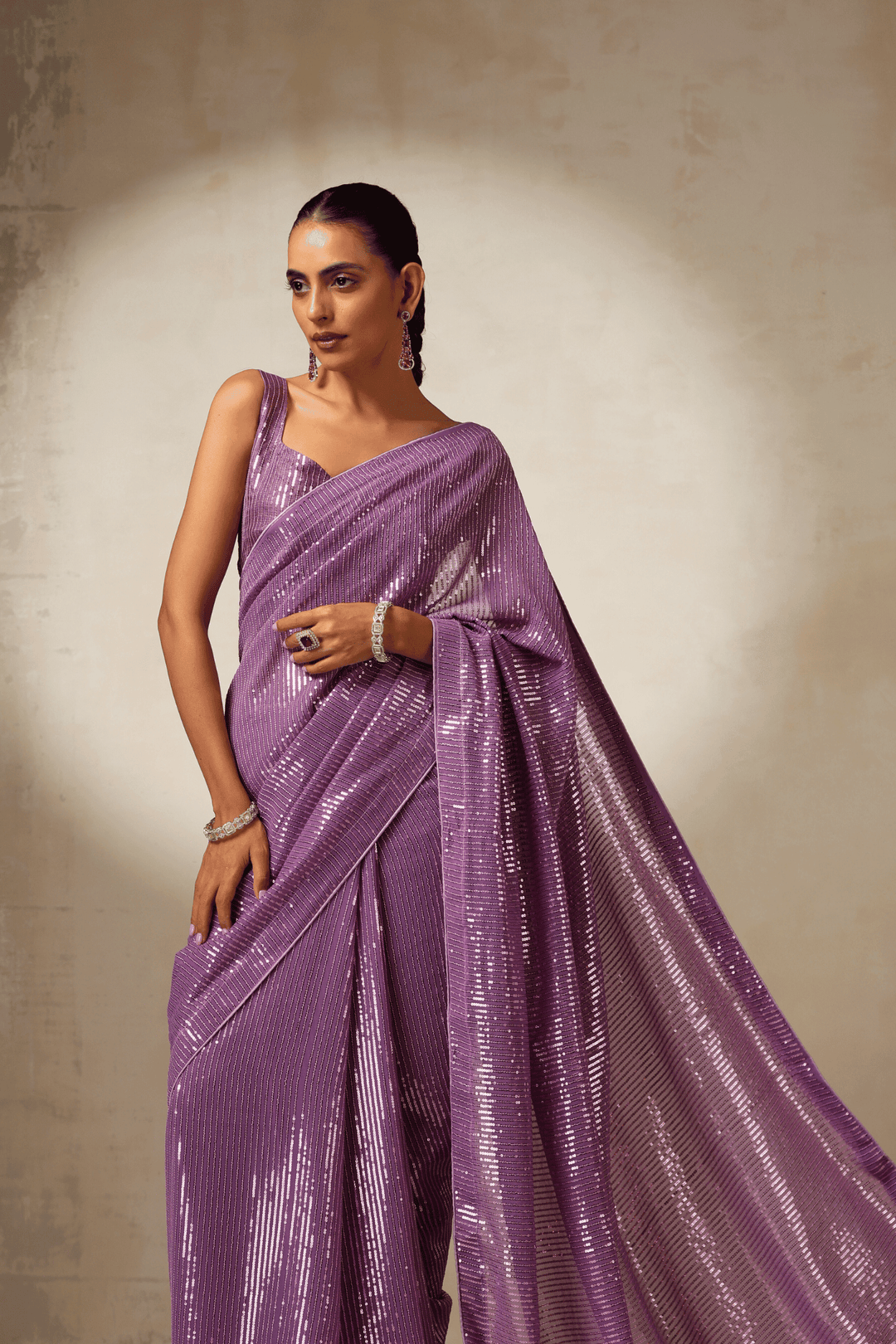 Lavender Lush | Ready to Wear Lilac Sequins Saree
