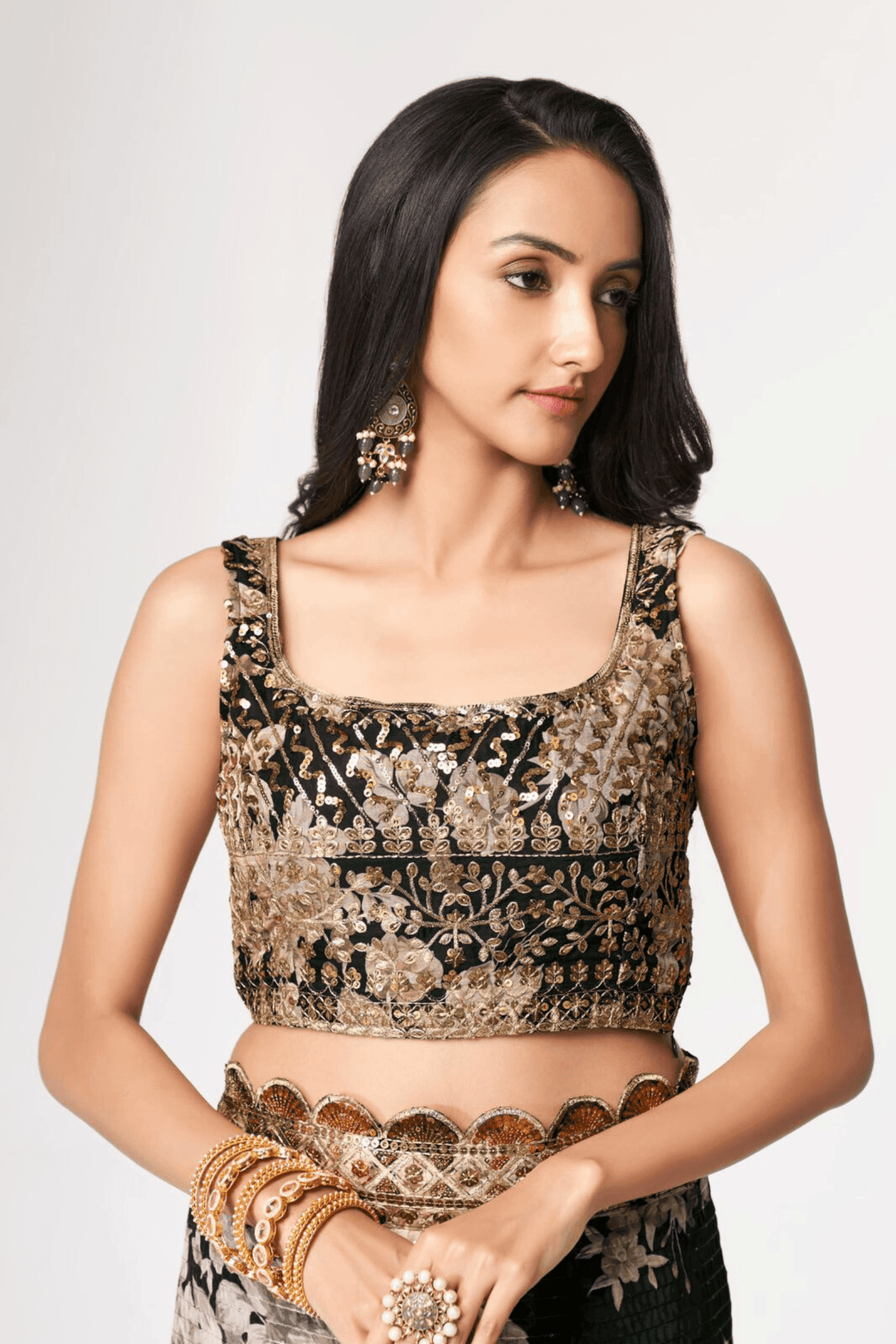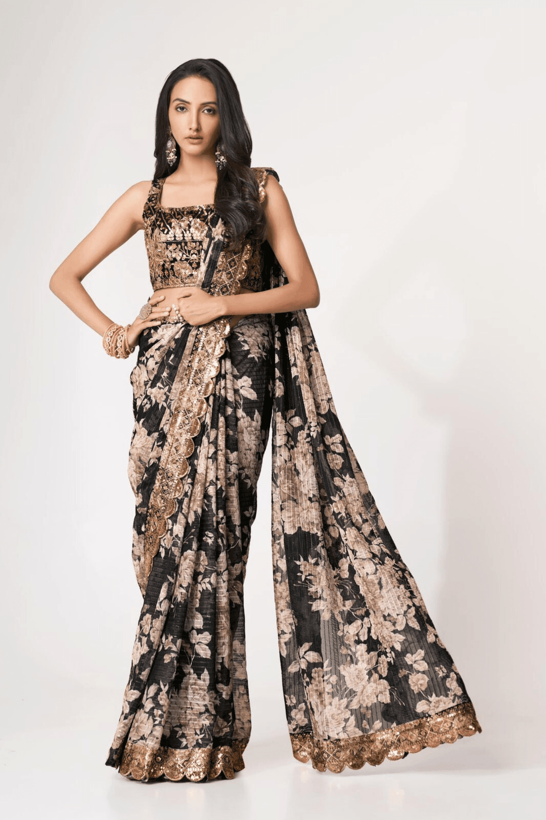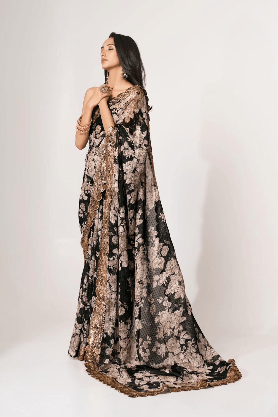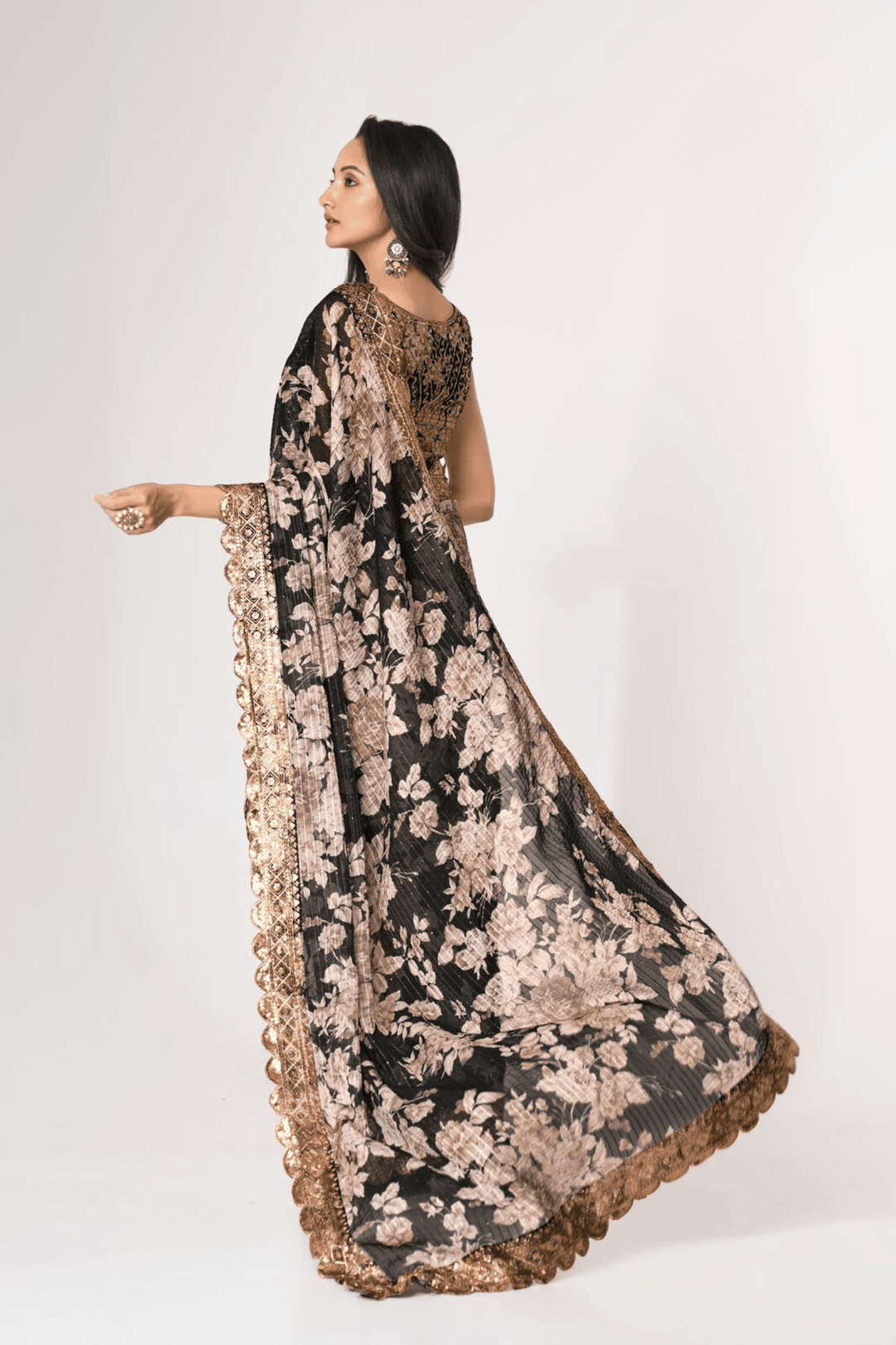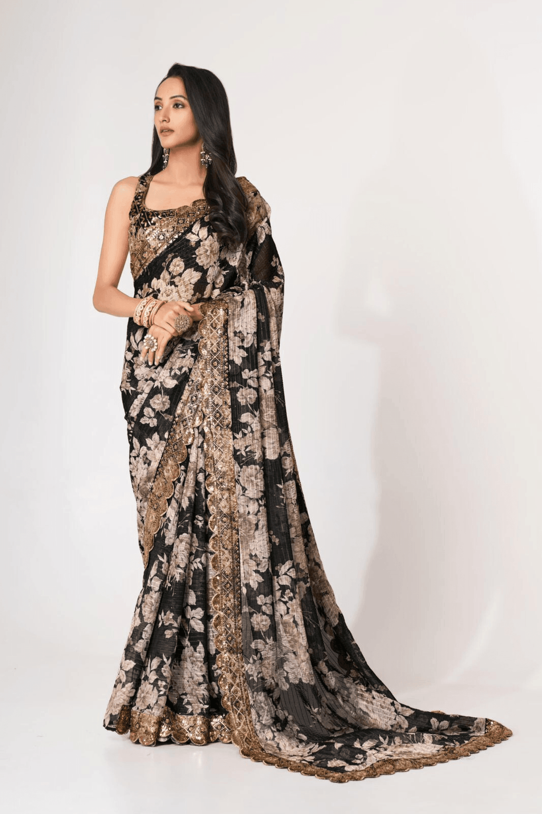 Midnight Bloom | Ready to Wear Black Floral Organza Saree