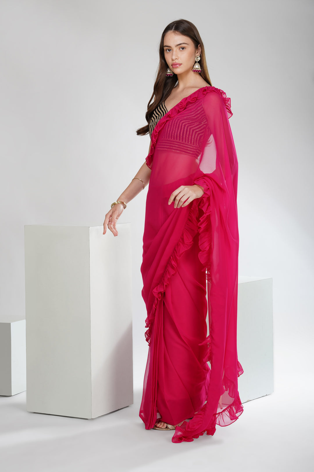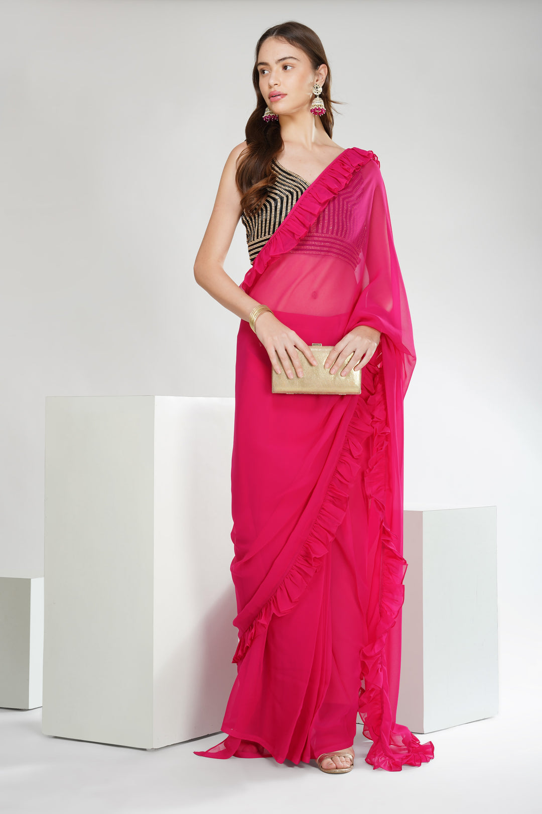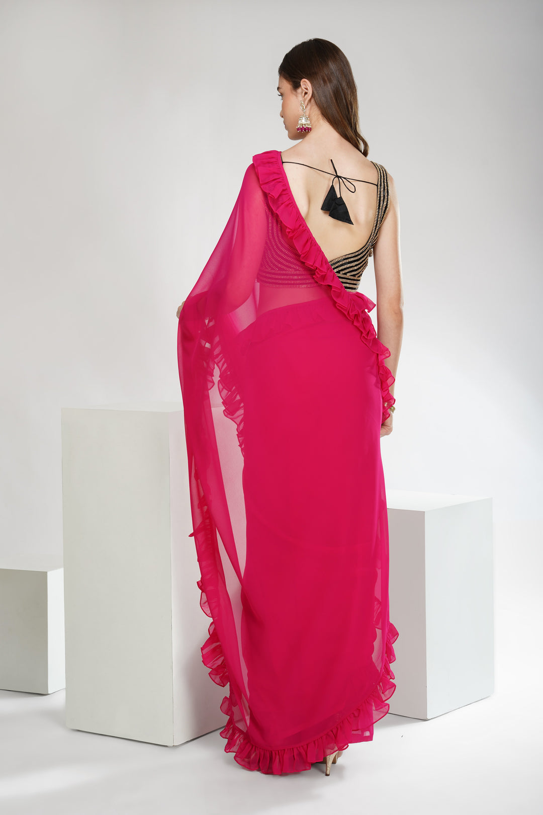 - One "Pink Power" 1-Minute Ruffle Georgette Saree.