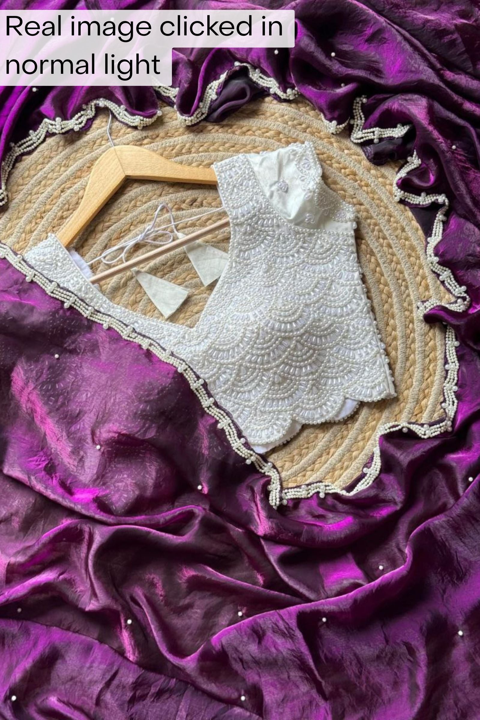 Ready to Wear saree with Readymade (hand embellished pearl) blouse (upto Chest size 42")