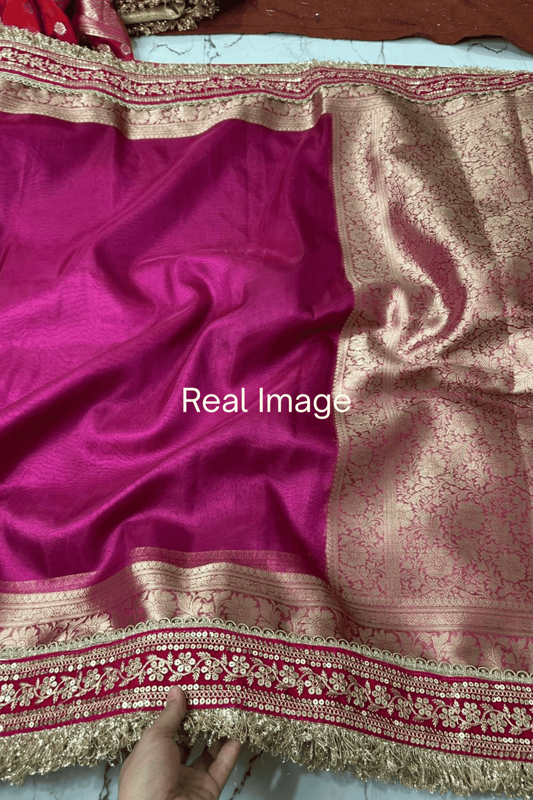 Colors as shown in the image may or may not vary slightly due to photographic effects or light reflection on fabrics like silk & satin.