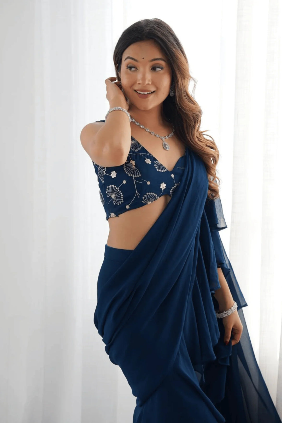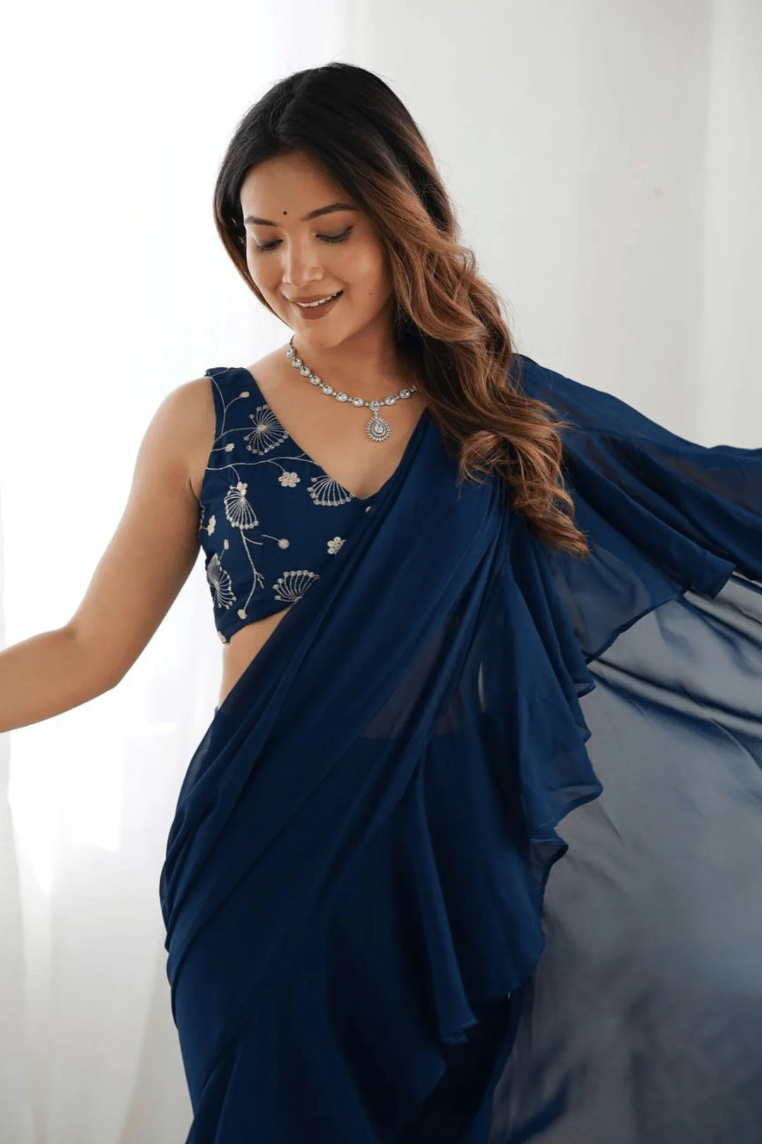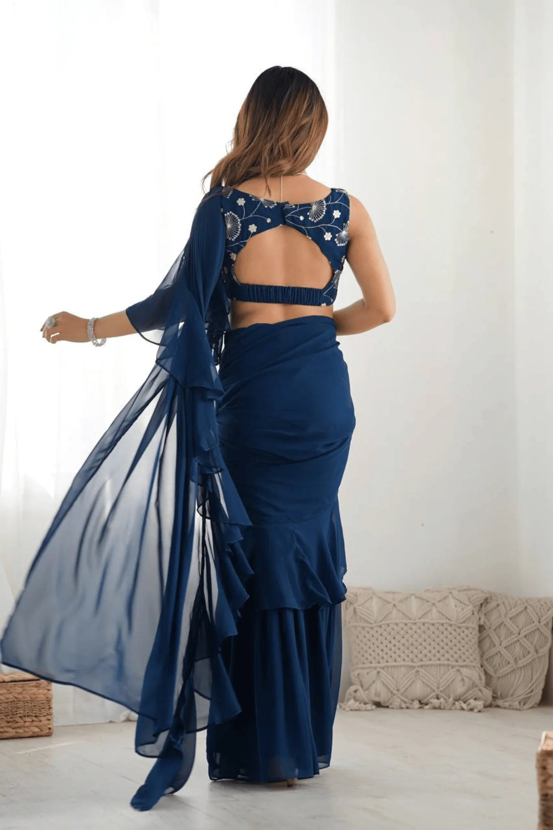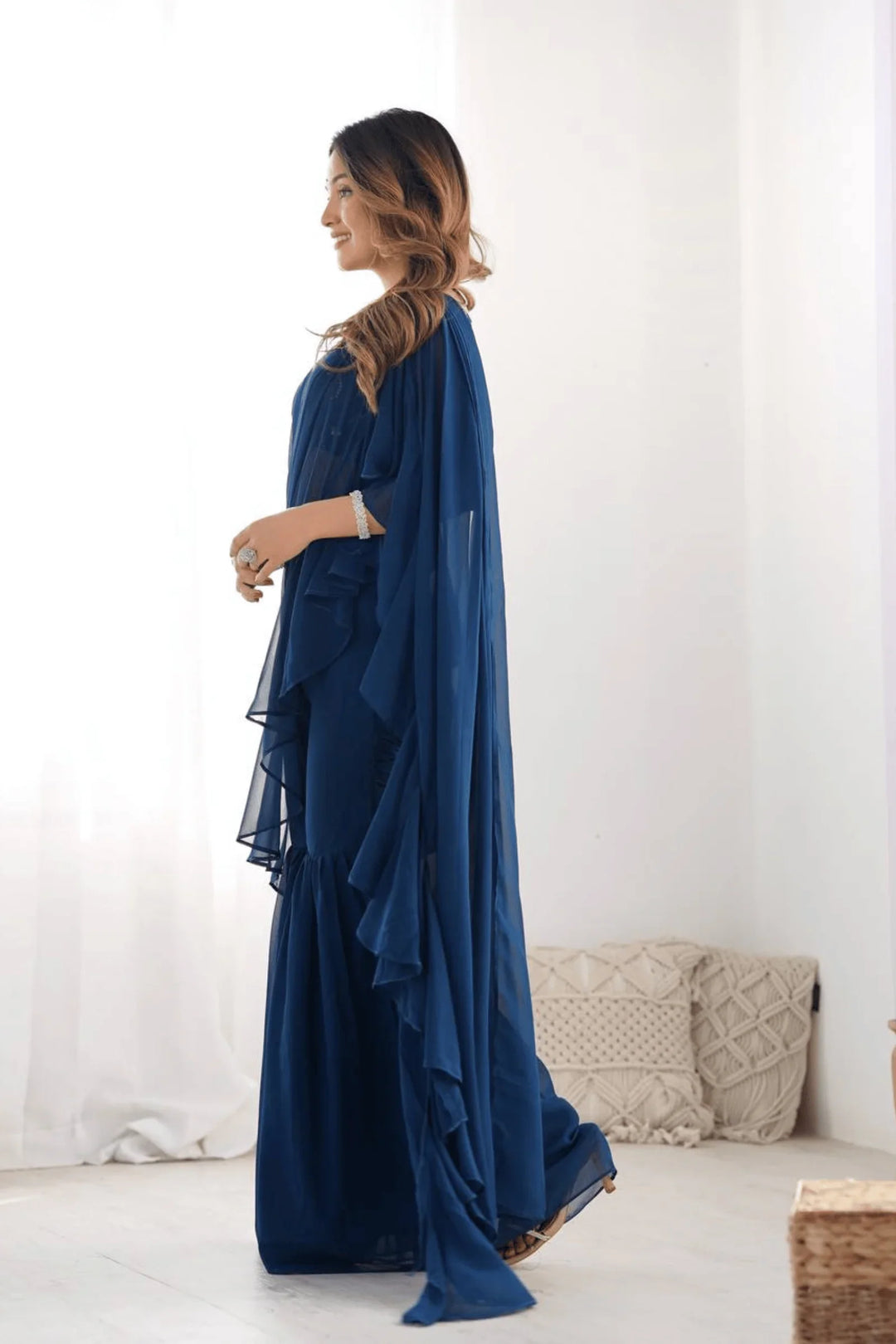 Our Latest collection of Ready to Wear Sharara saree with timeless addition for the upcoming festivities and weddings. Ready To Wear Sharara Saree With Full Stitched Blouse Premium Fox Georgette Fabric.