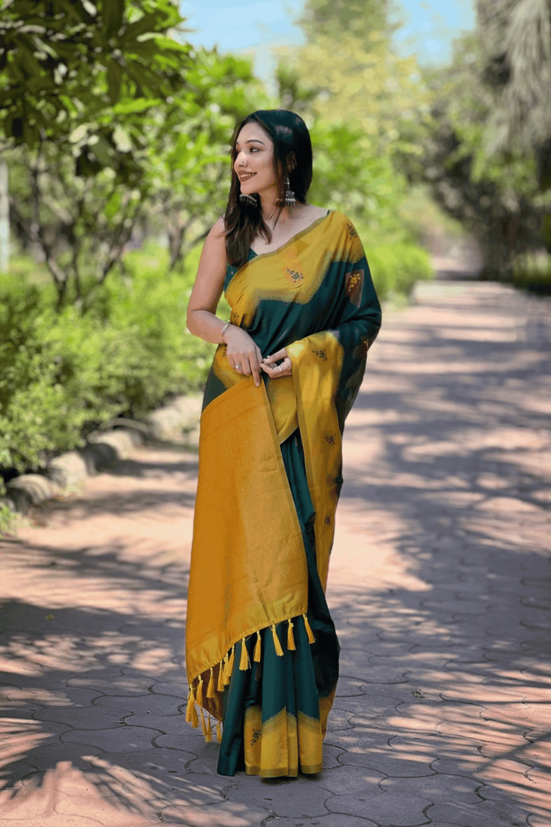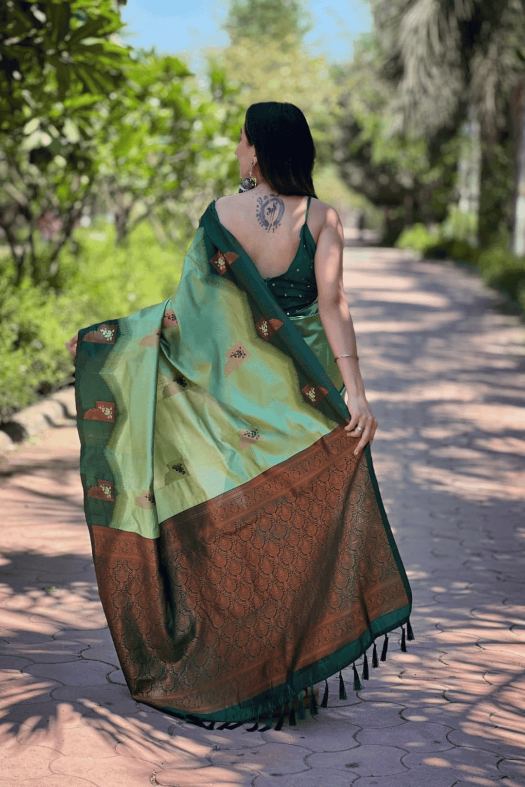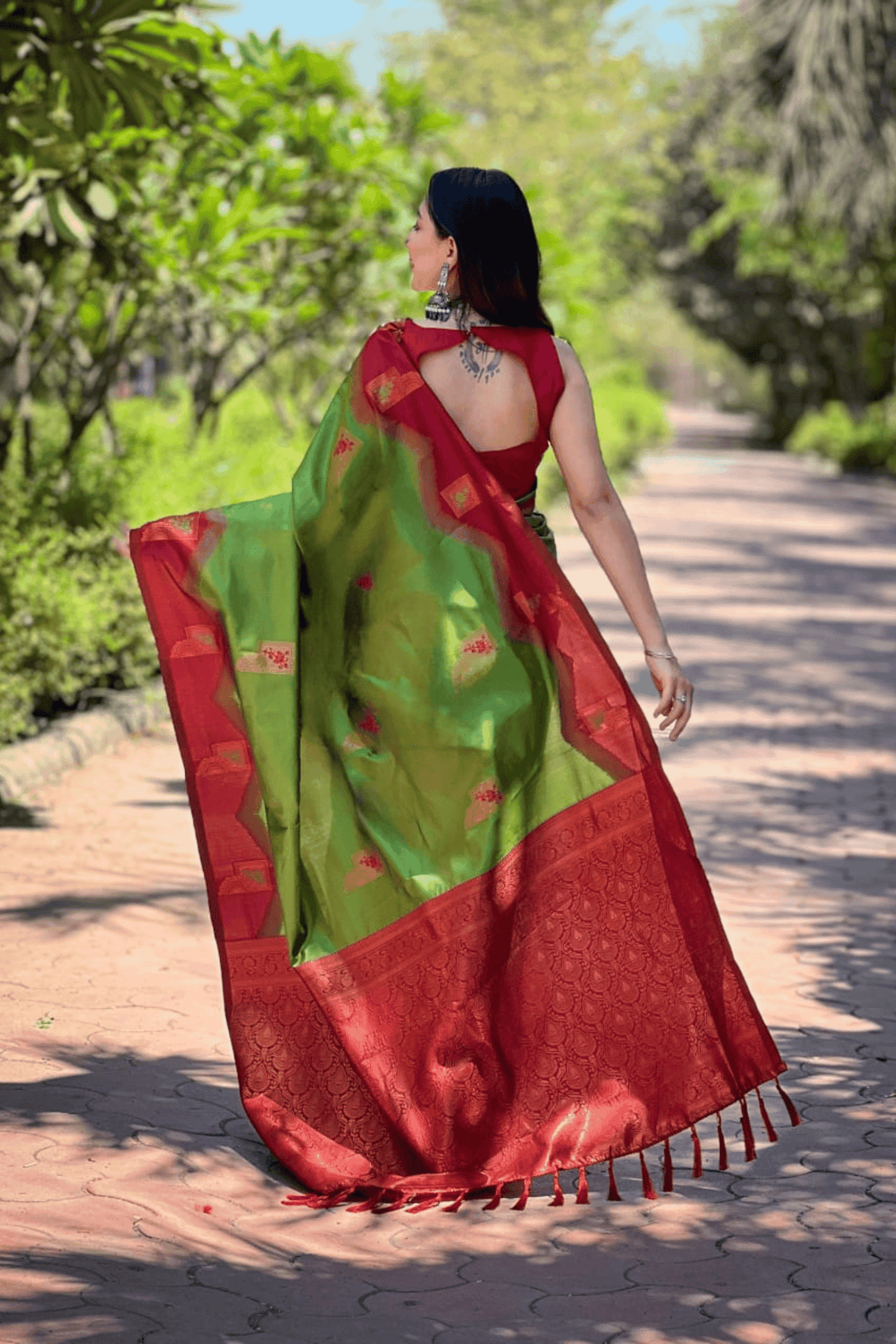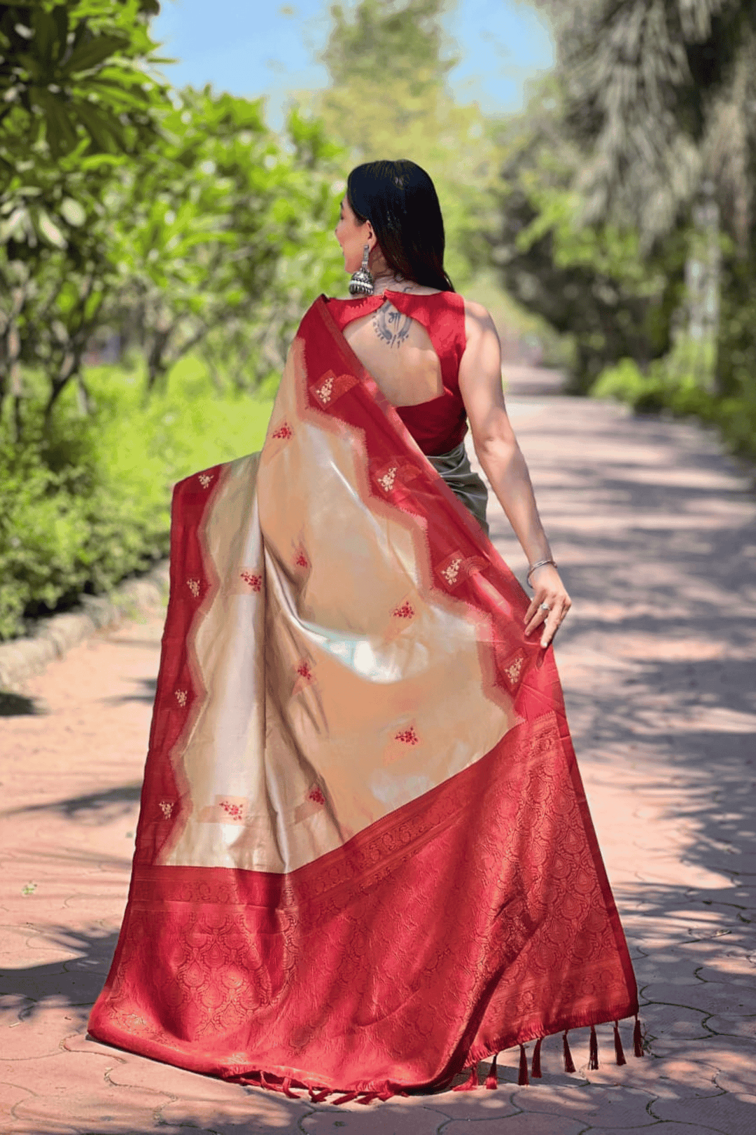 Length:- 5.5 meters & 0.8 Unstitched self fabric Blouse to style the blouse as you please!