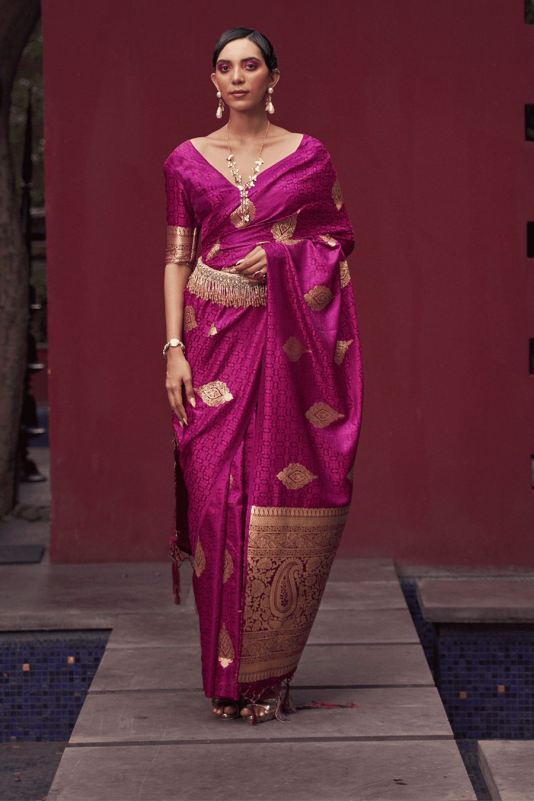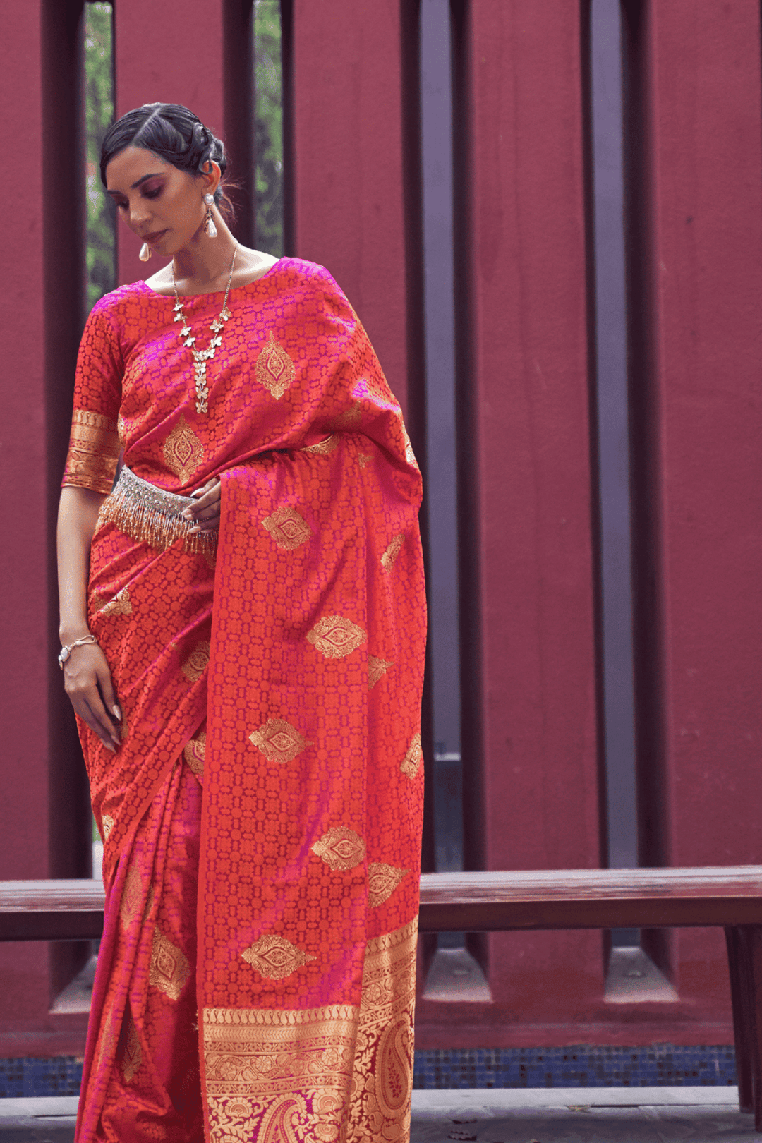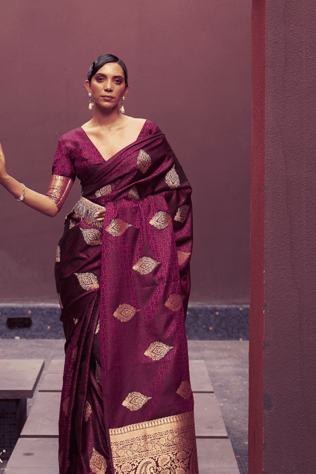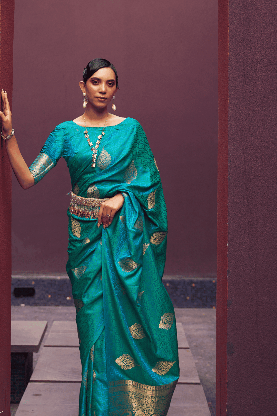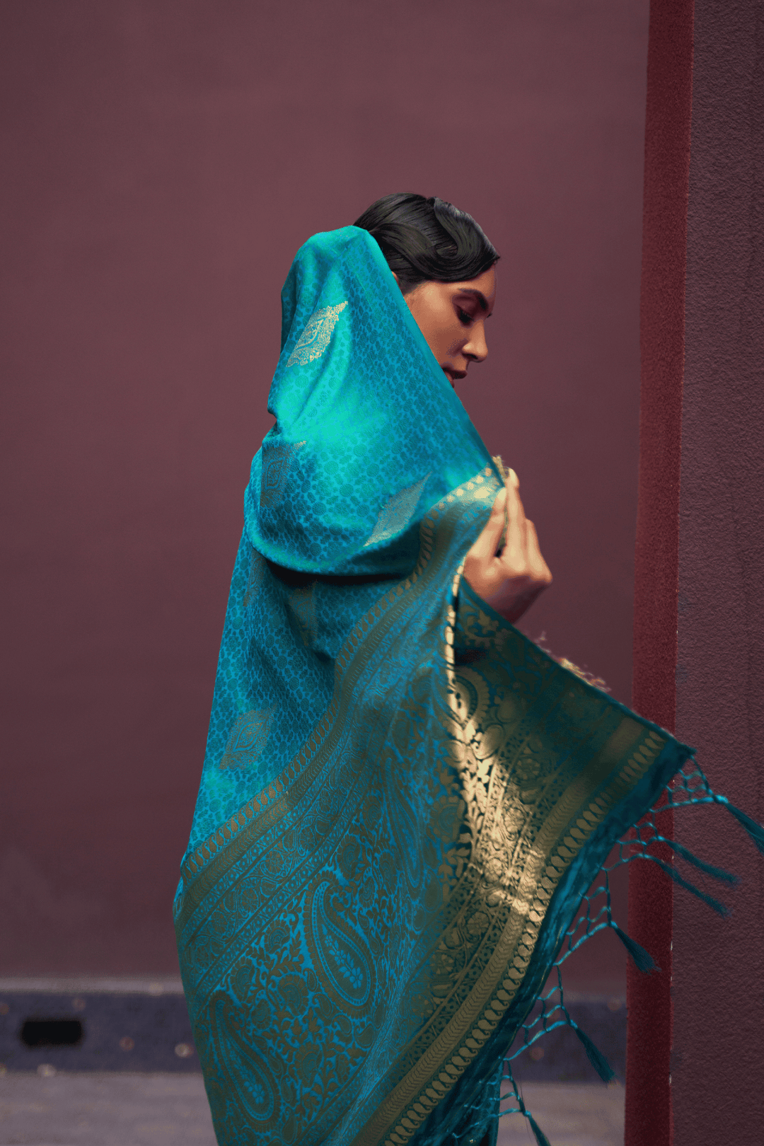 • Weaving across the saree
