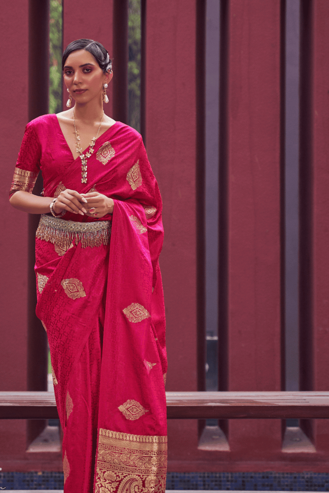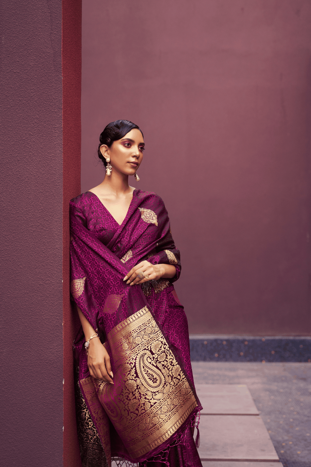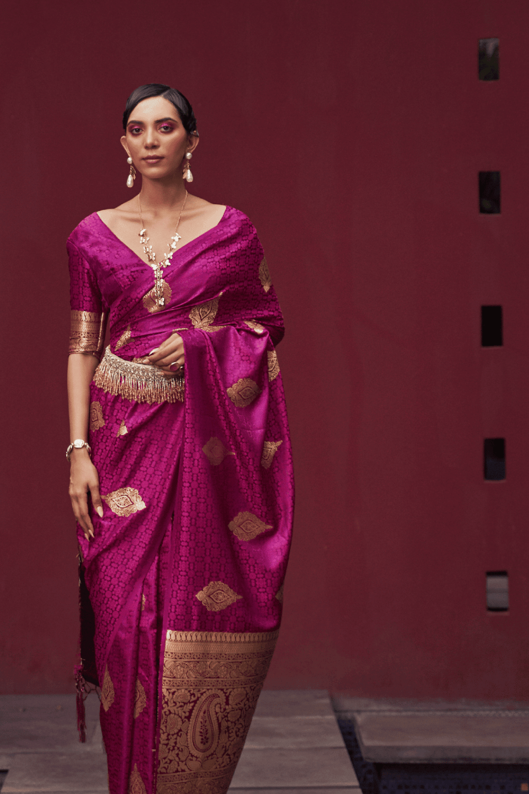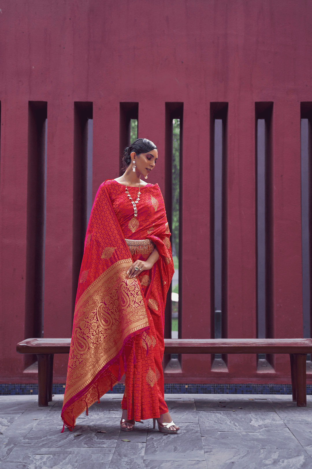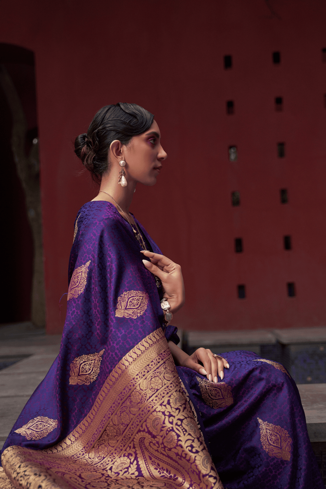 • Weaving across the saree