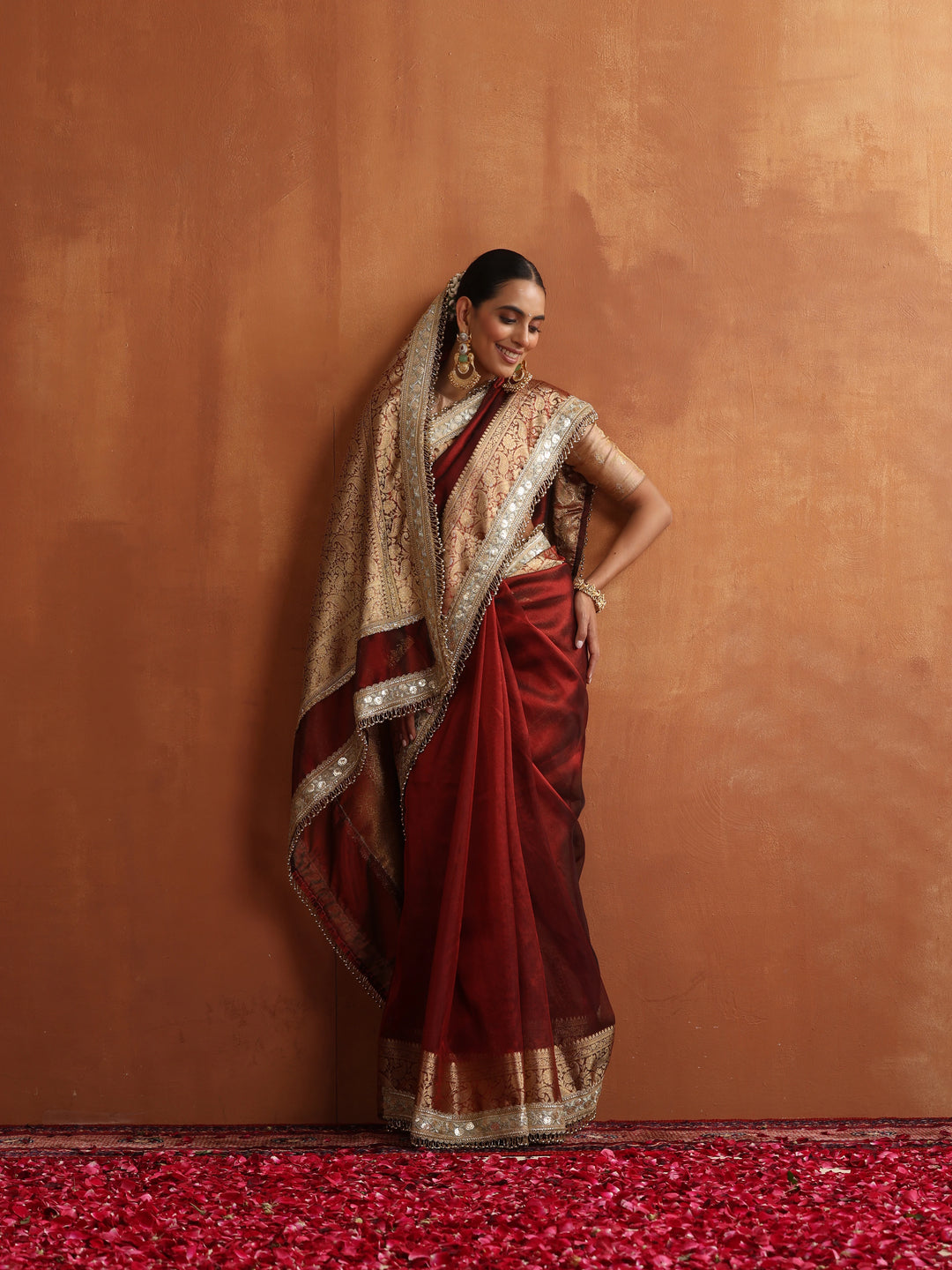 Colors as shown in the image may or may not vary slightly due to photographic effects or light reflection on fabrics like silk & satin.