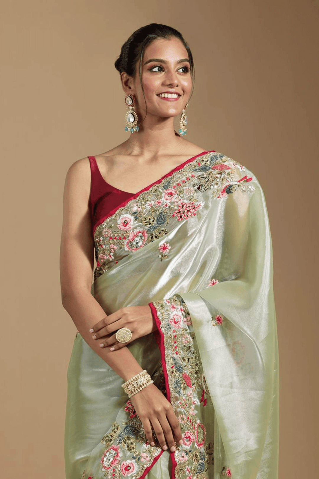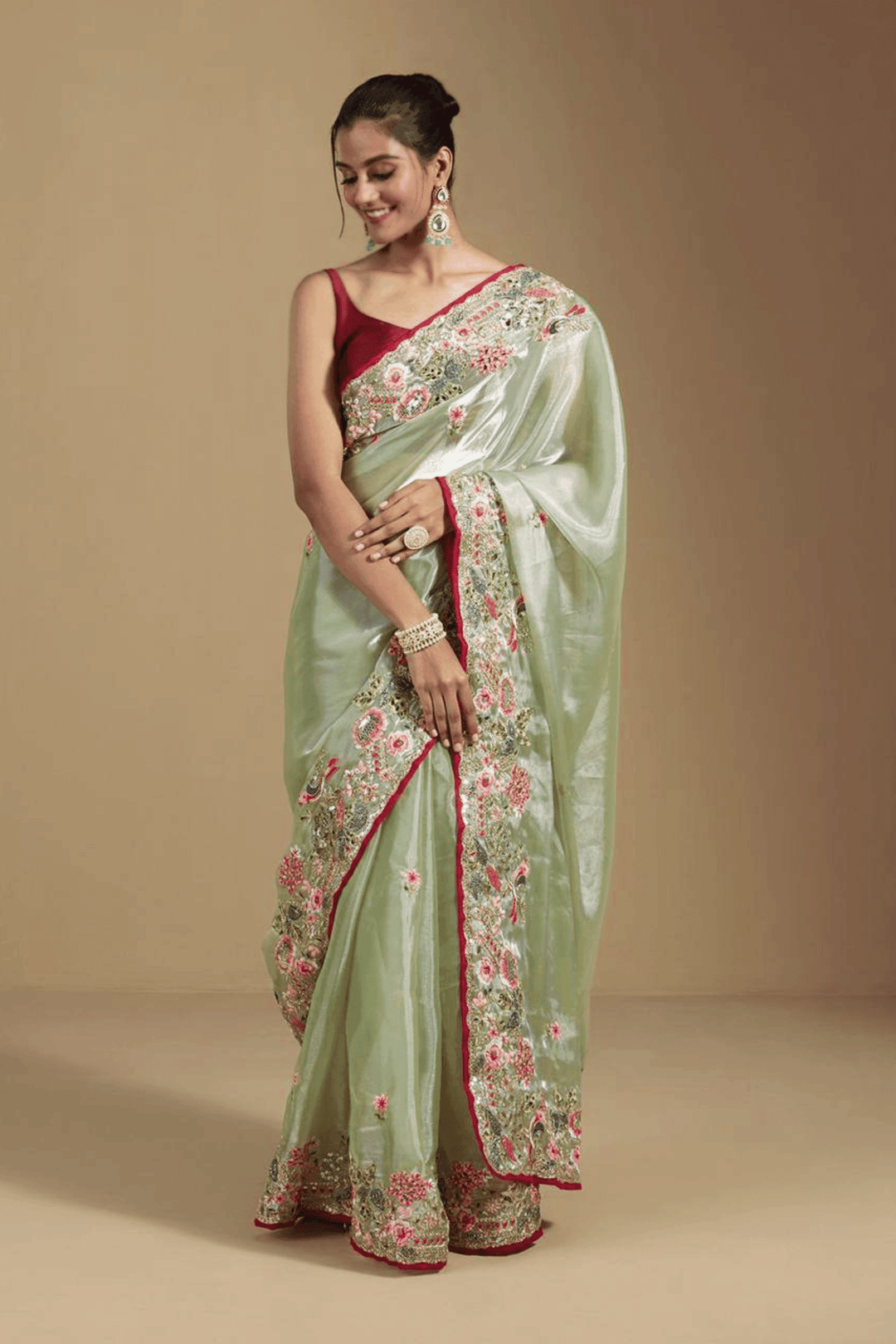 Ready to Wear Mint Green Embroidered Jimmy Choo Saree