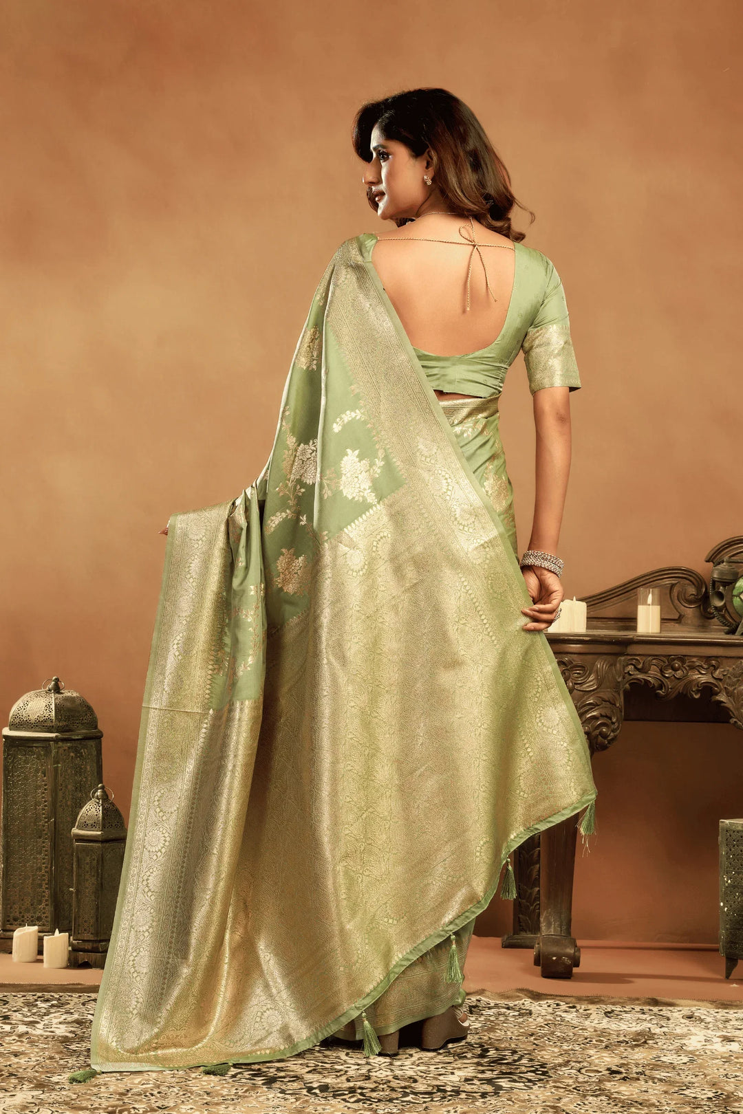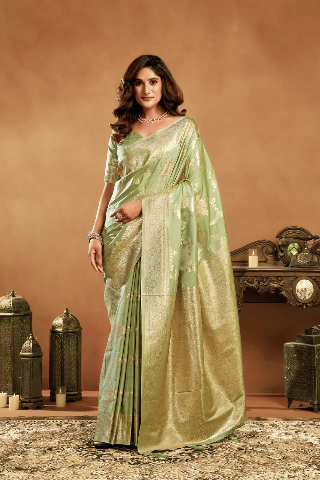 Ready to Wear Pistachio Banarasi Silk Satin Weave Saree