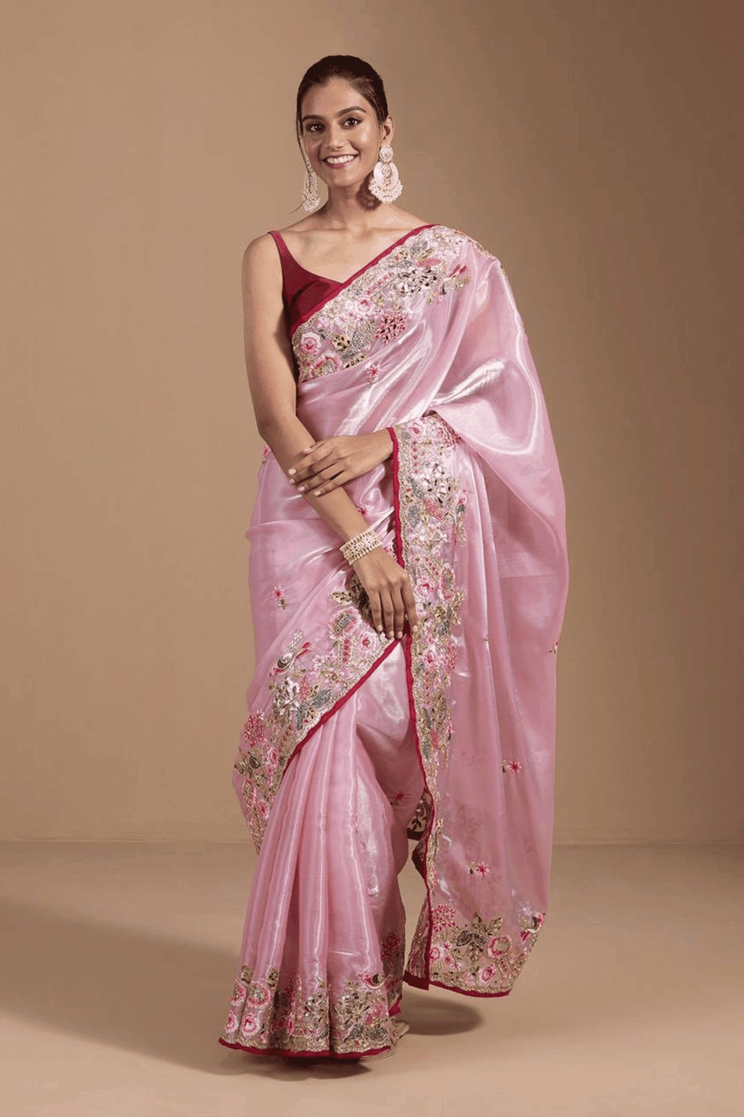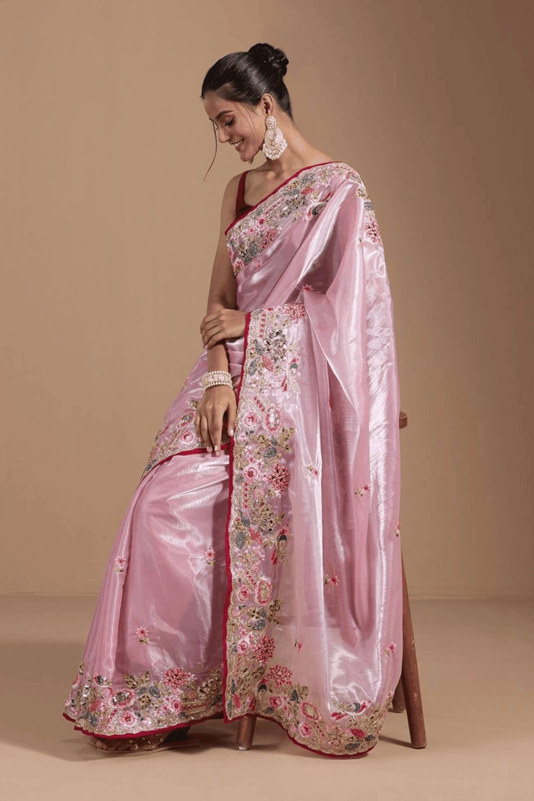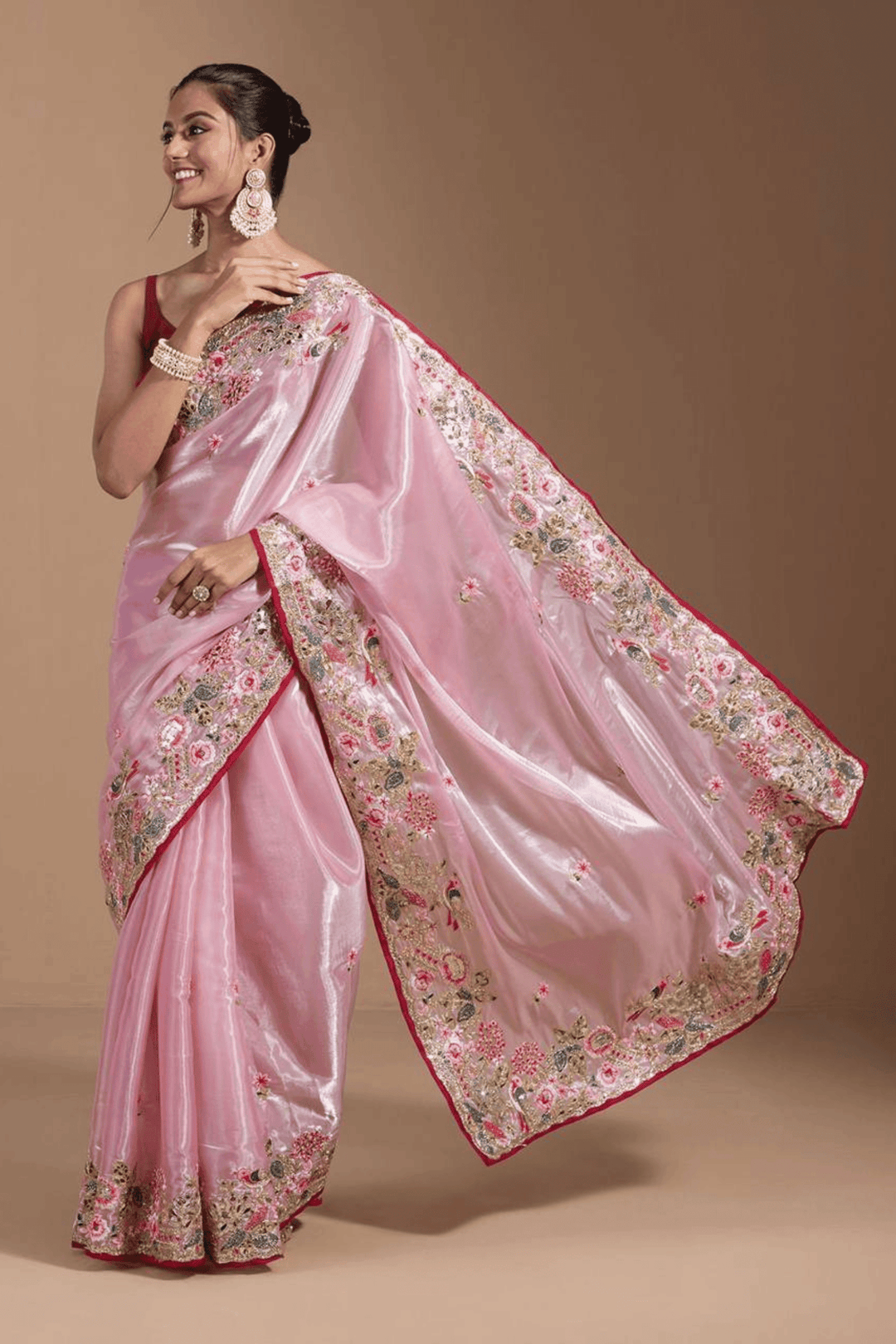 Ready to Wear Rose Pink Embroidered Jimmy Choo Saree