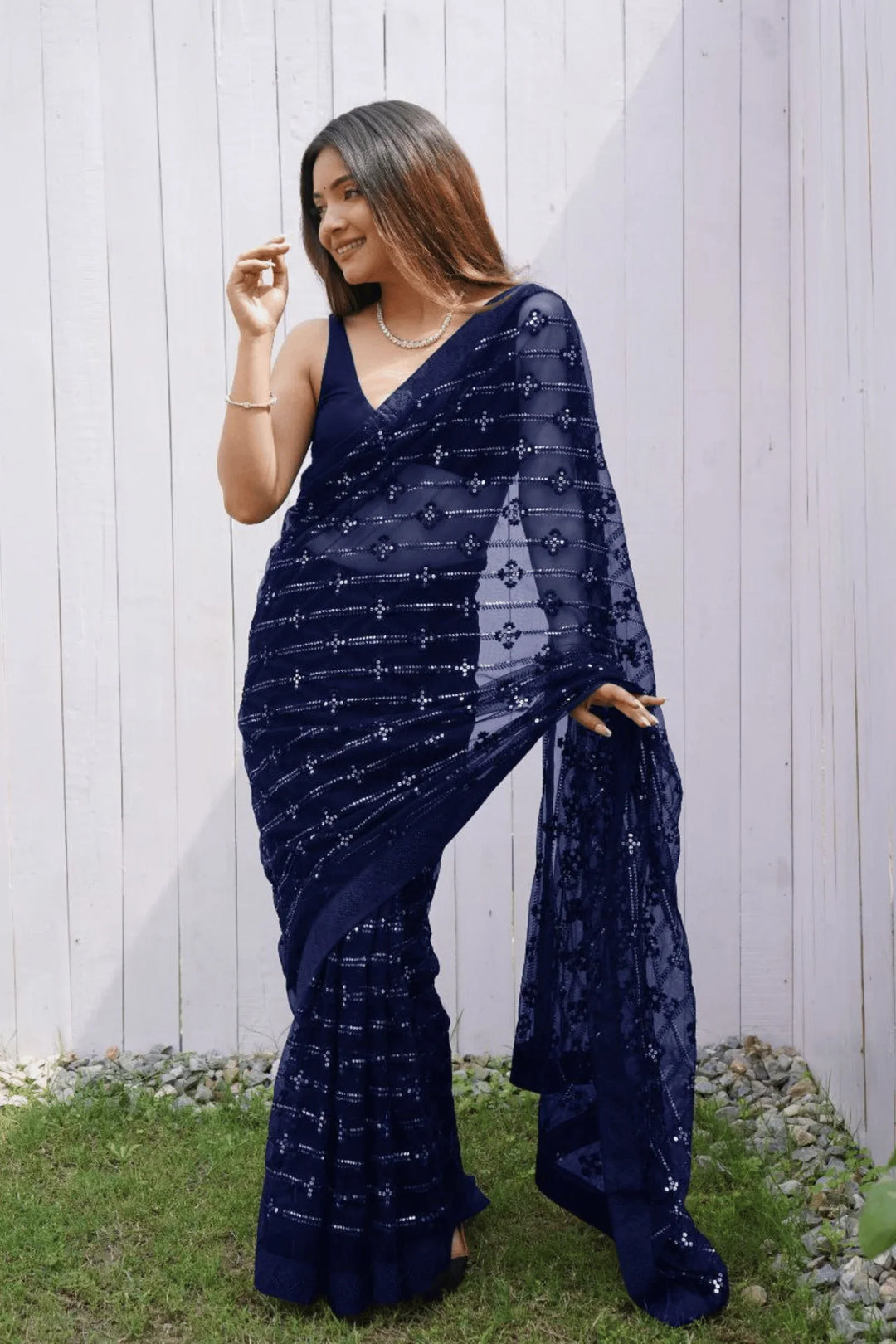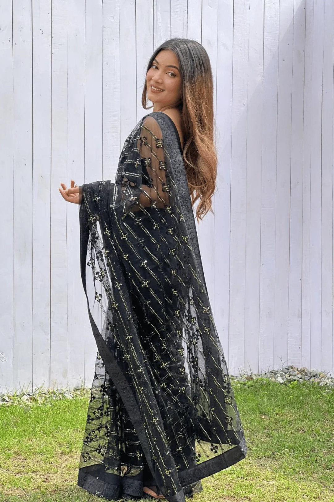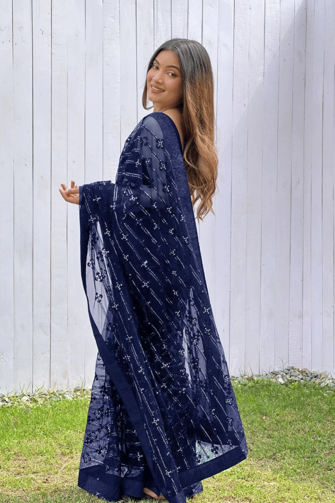 This saree is a stunning piece! The sequin work and net fabric make it a perfect choice for any occasion.
