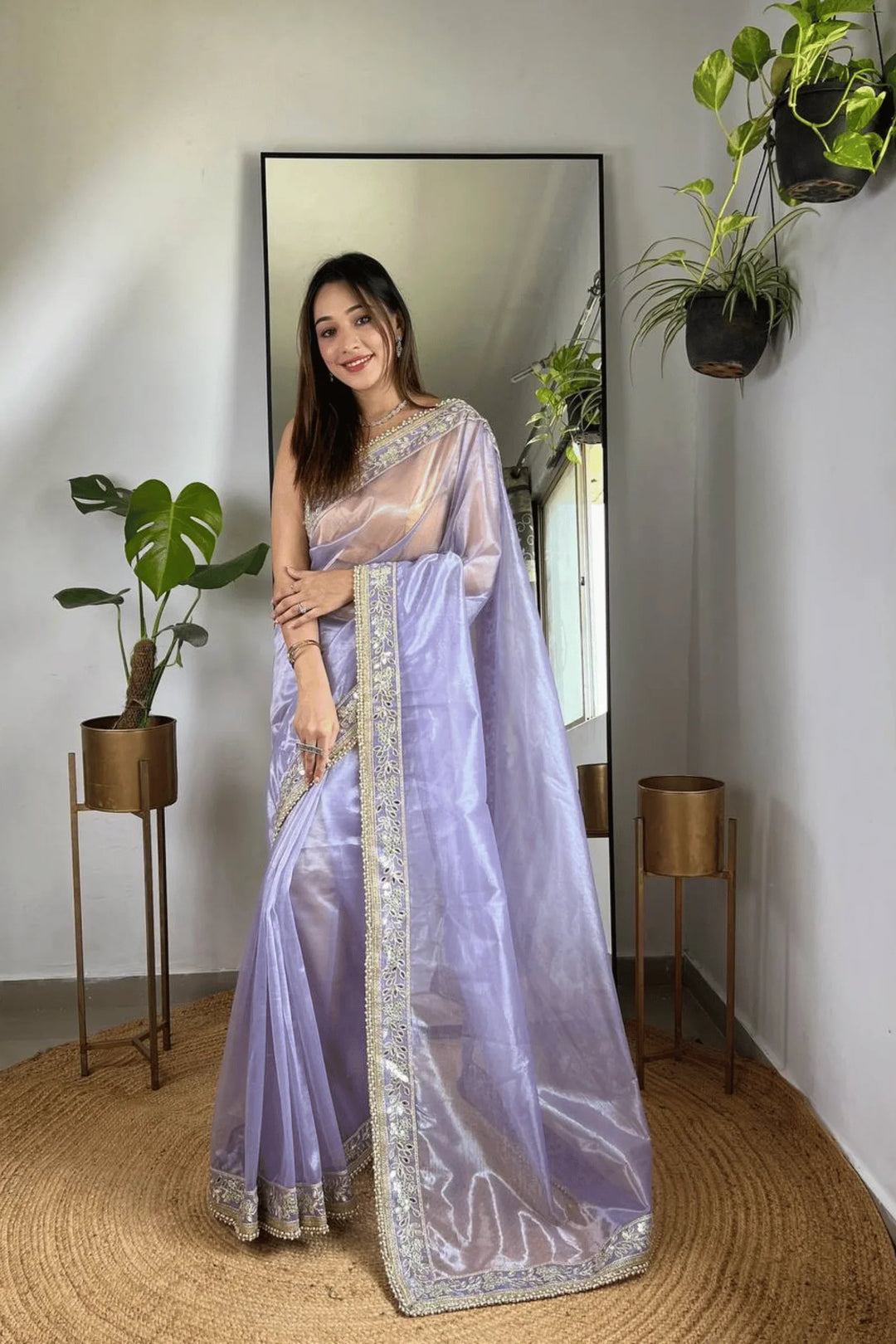 Ready to Wear Silver Tissue Jimmy Choo Saree