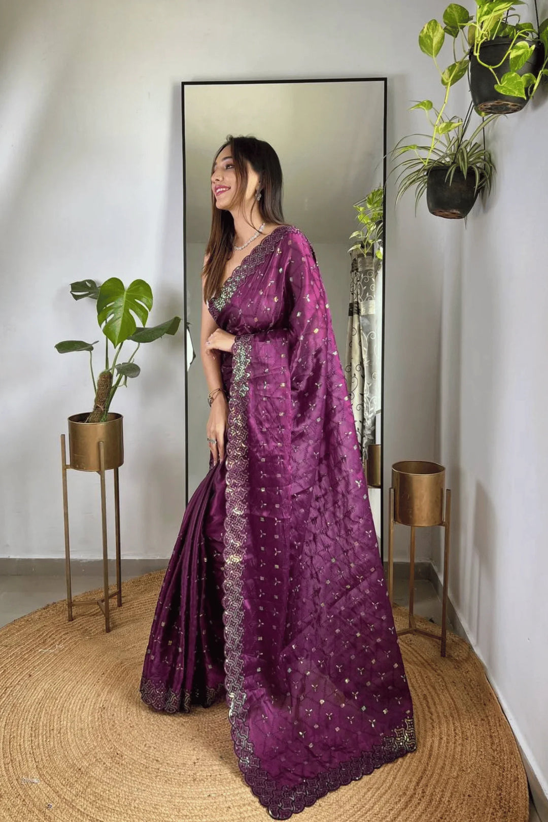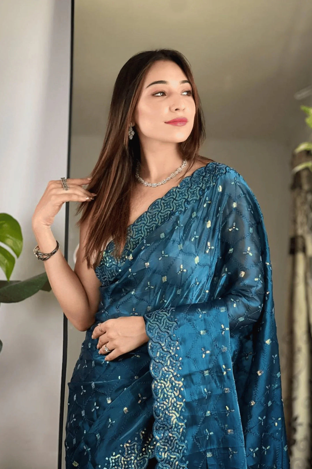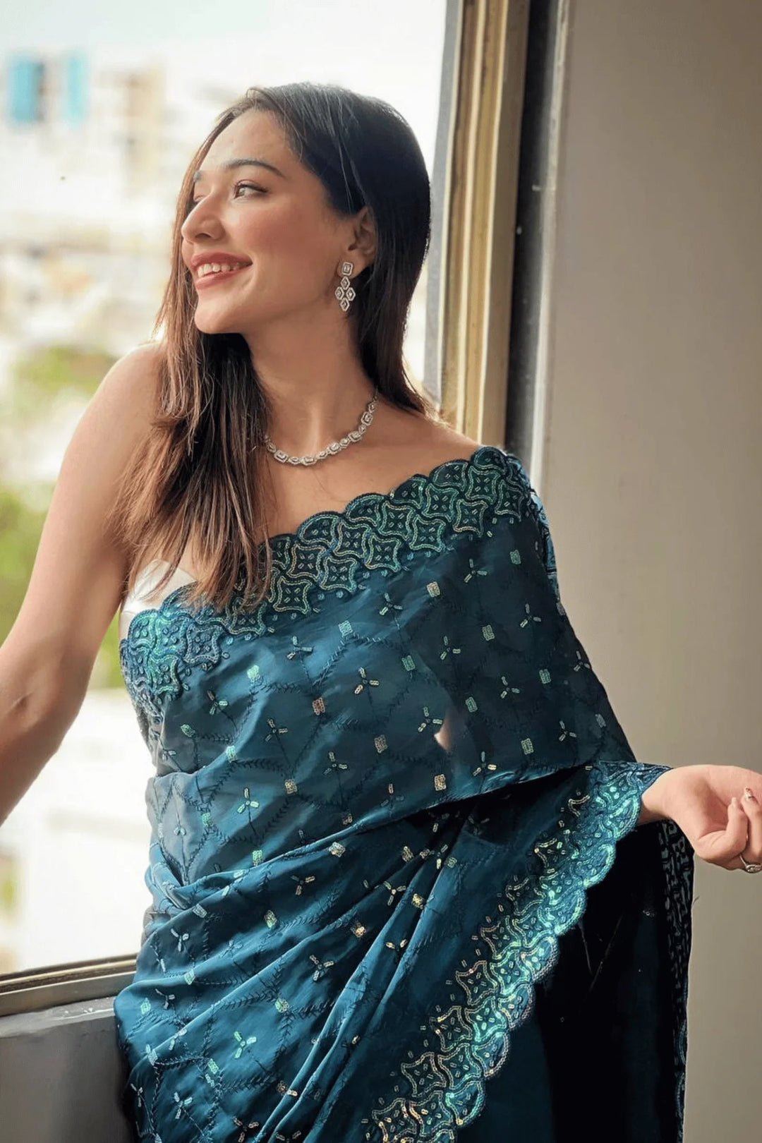 This Ready-to-Wear Saree is a showstopper! The design and sequins make me feel like a million bucks.