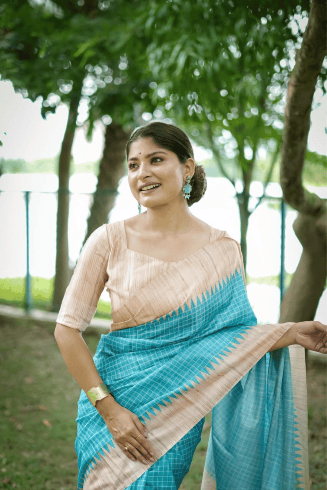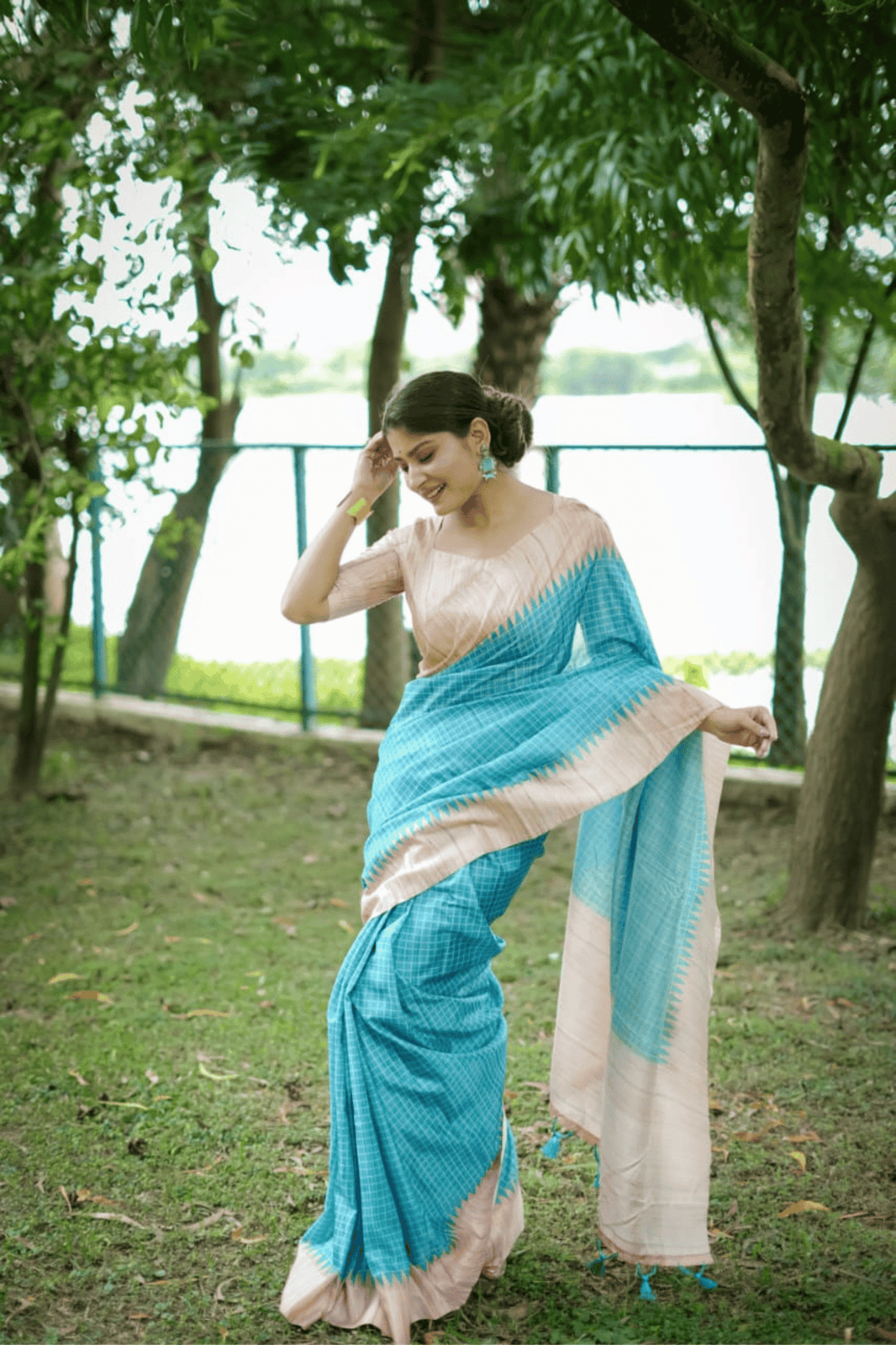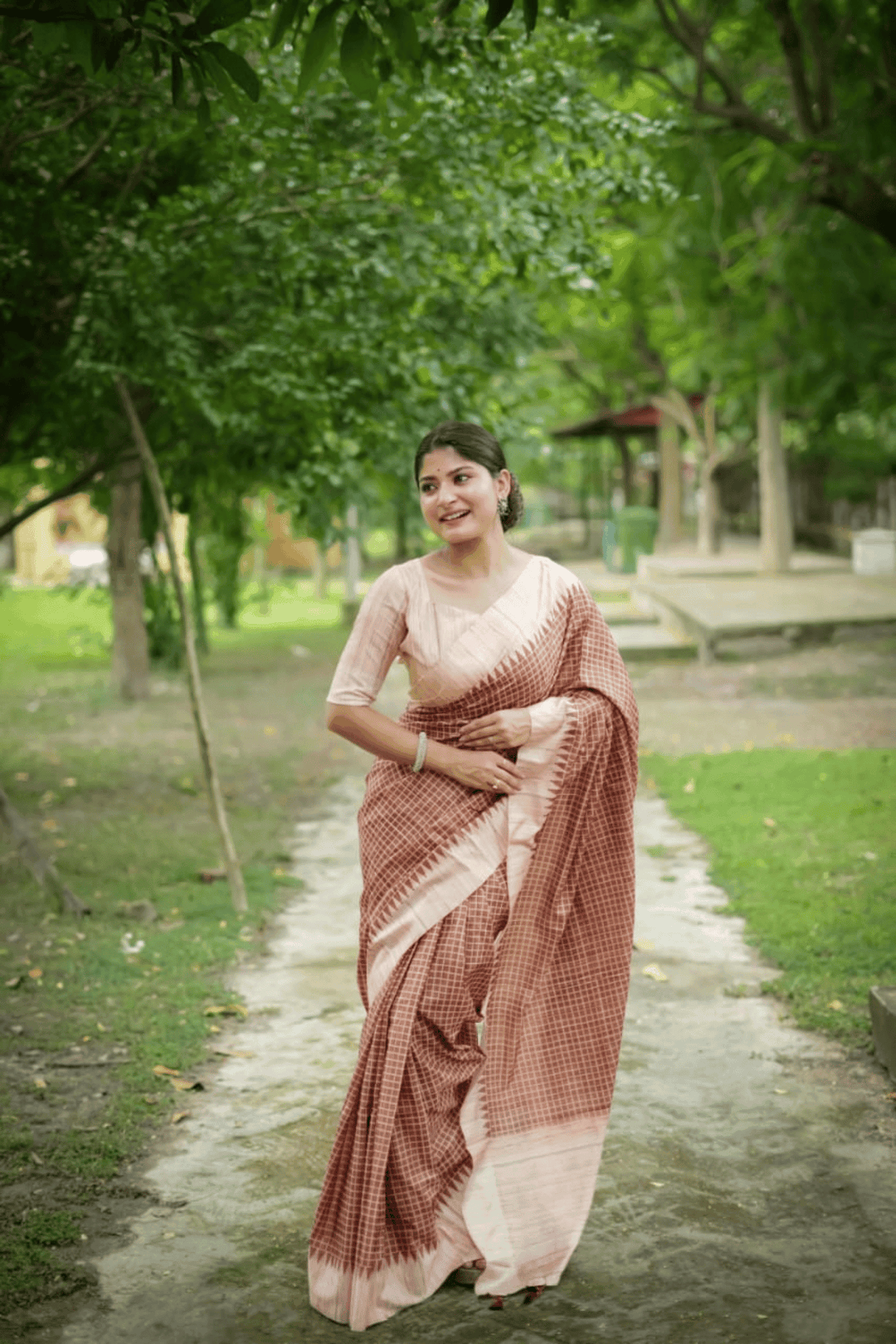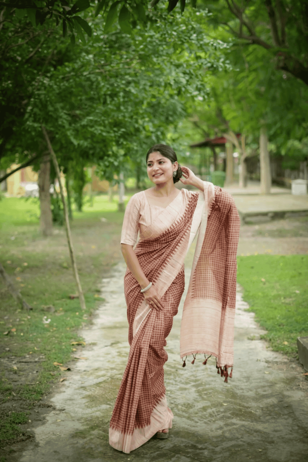 Introducing our exquisite Ready to Wear Tussar Checks Saree. The saree comes with a matching blouse piece that has been designed to complement the saree perfectly. You can easily drape this saree without any hassle as it comes ready-to-wear with a pre-stitched pleats.