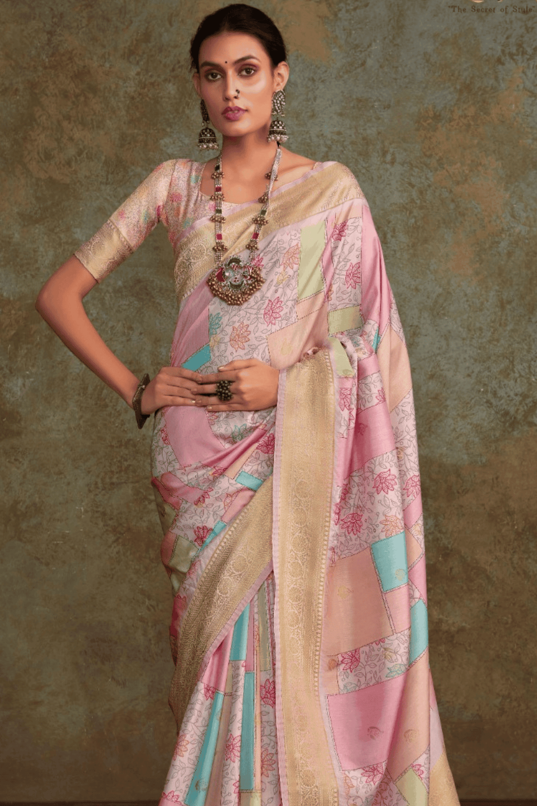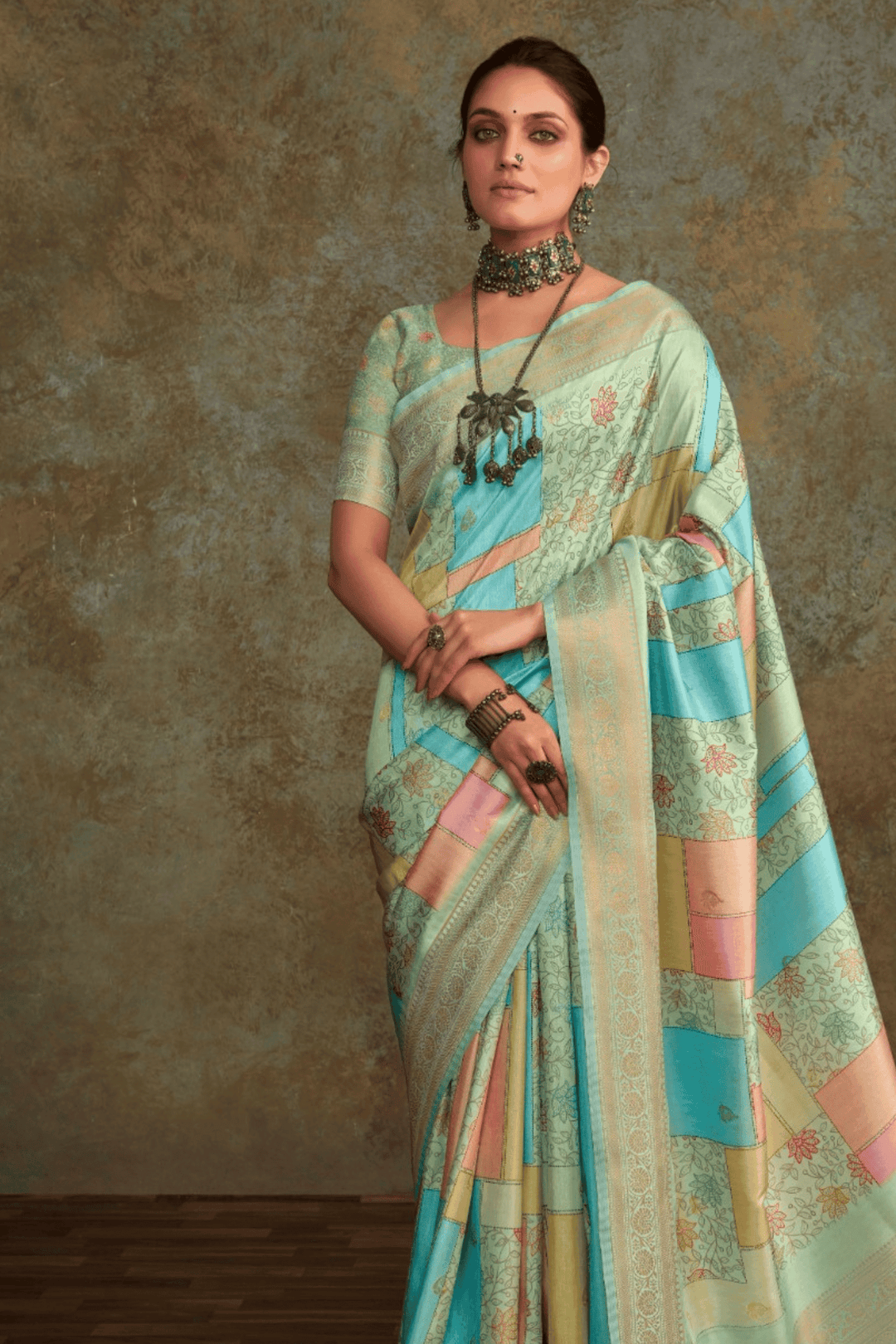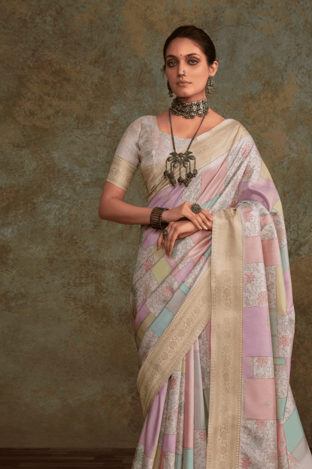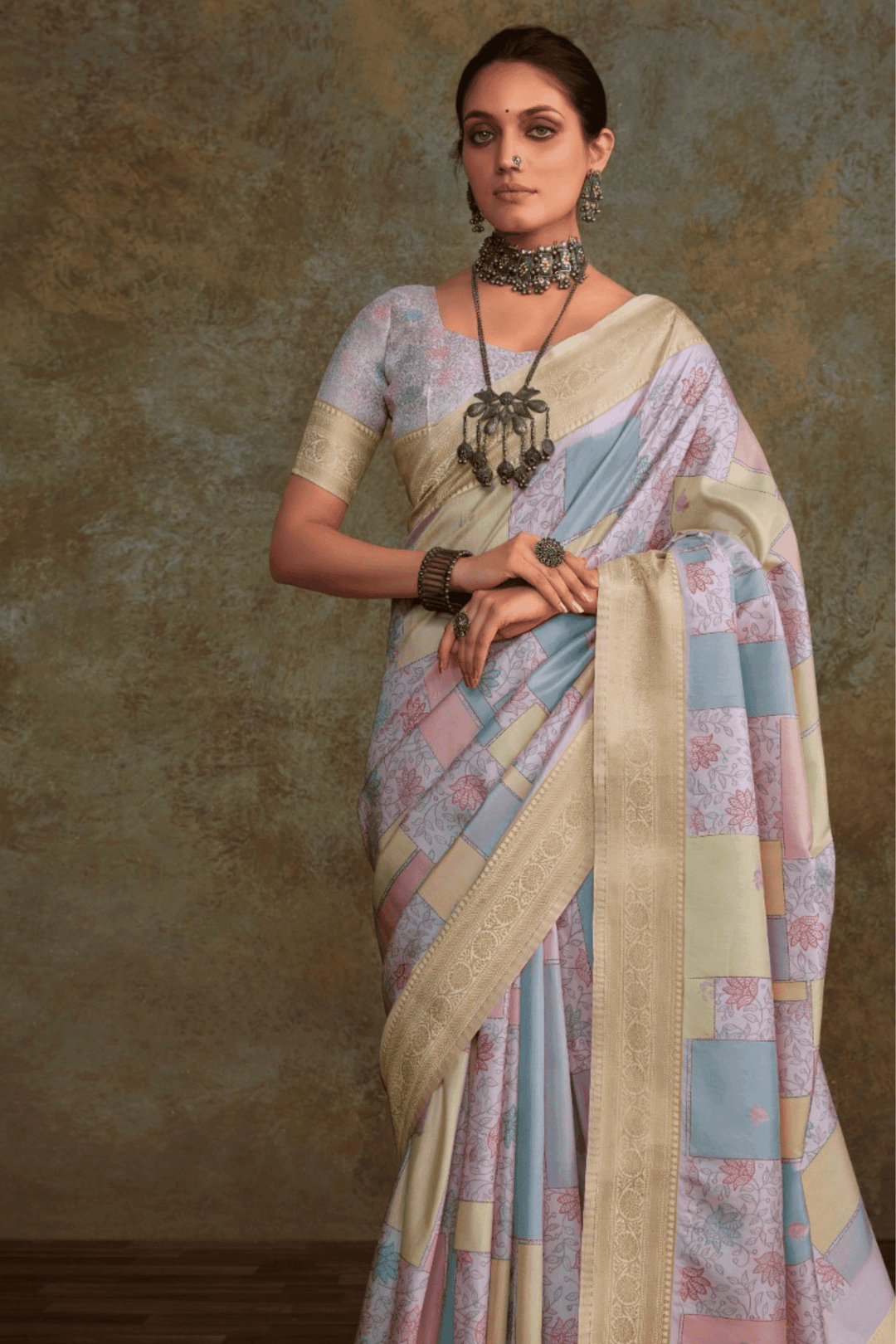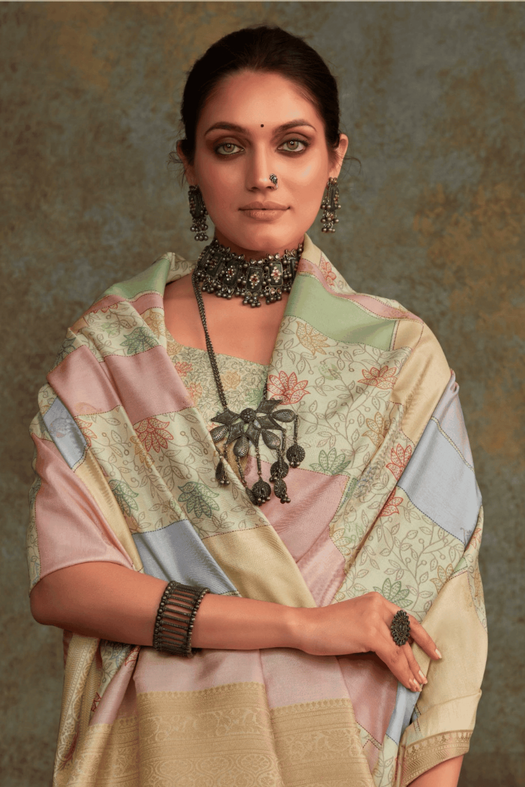 Introducing Glamwiz Ready to Wear Watercolor Print Silk Saree, Elevate your ethnic wardrobe with our stunning soft silk saree, adorned with a beautiful watercolor type of digital print. No draping hassle, just slip into this Pre Stitched Silk Saree and own the moment with our show-stopping Ready to wear saree.