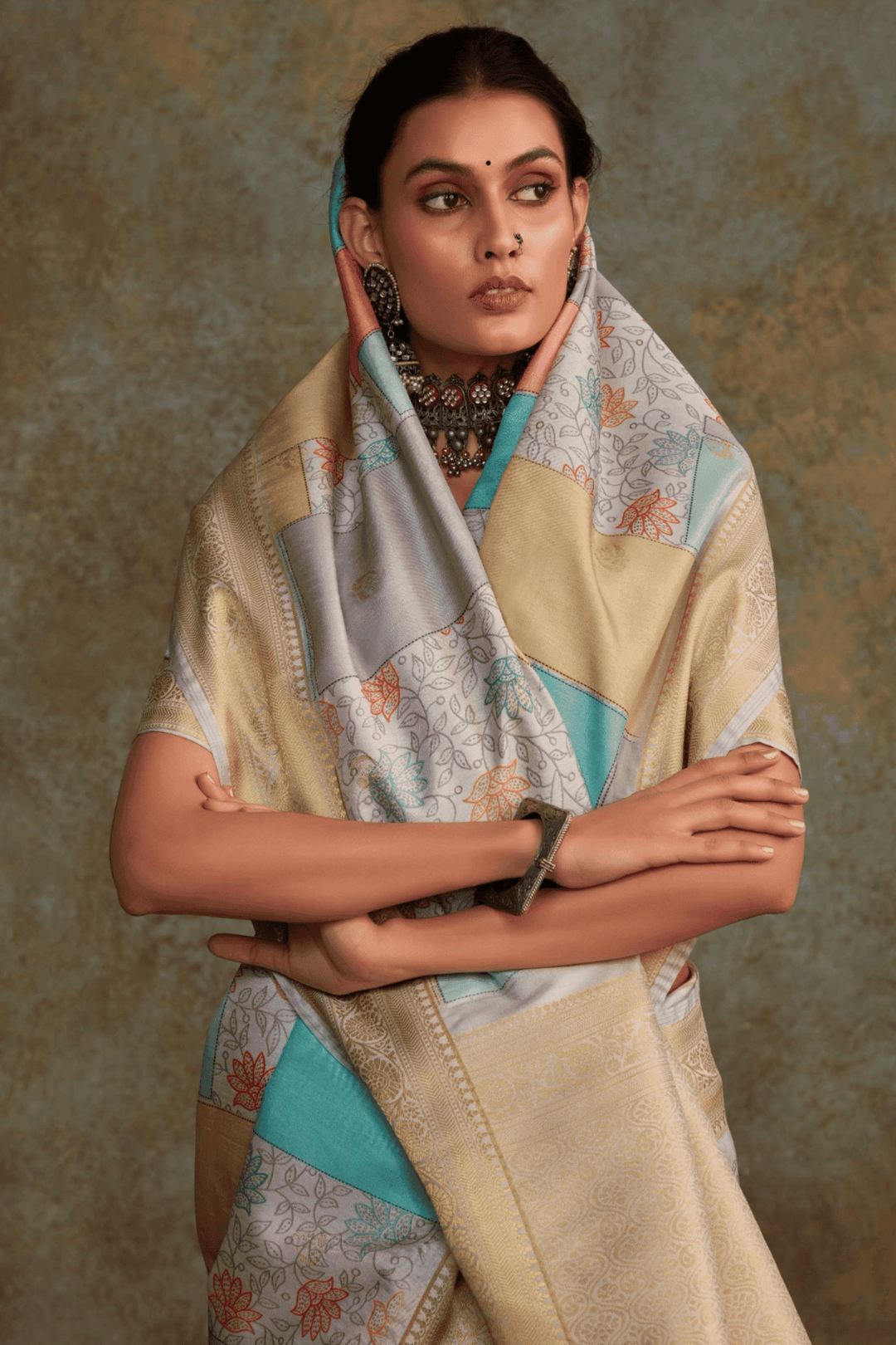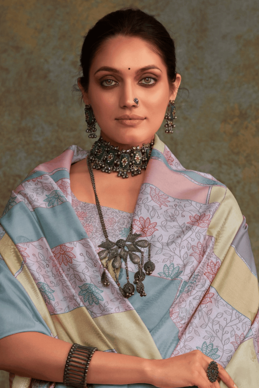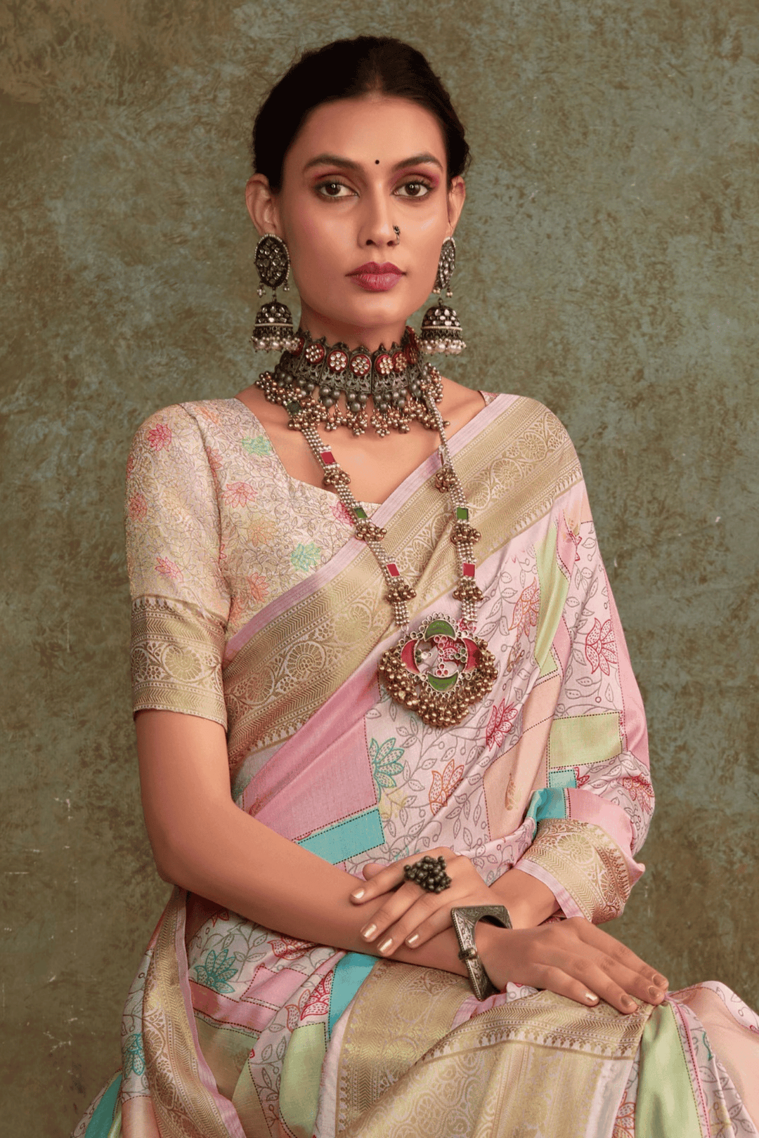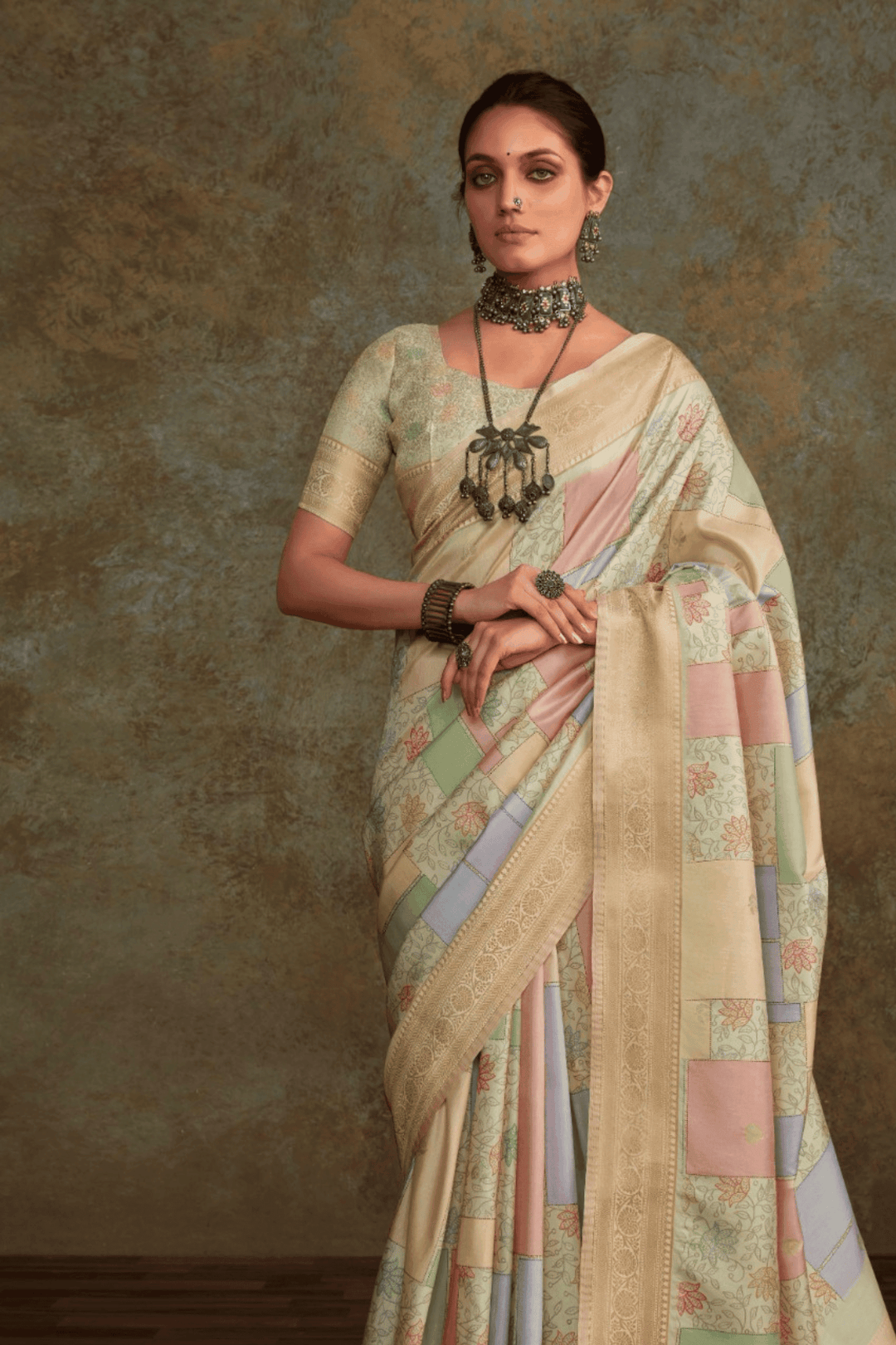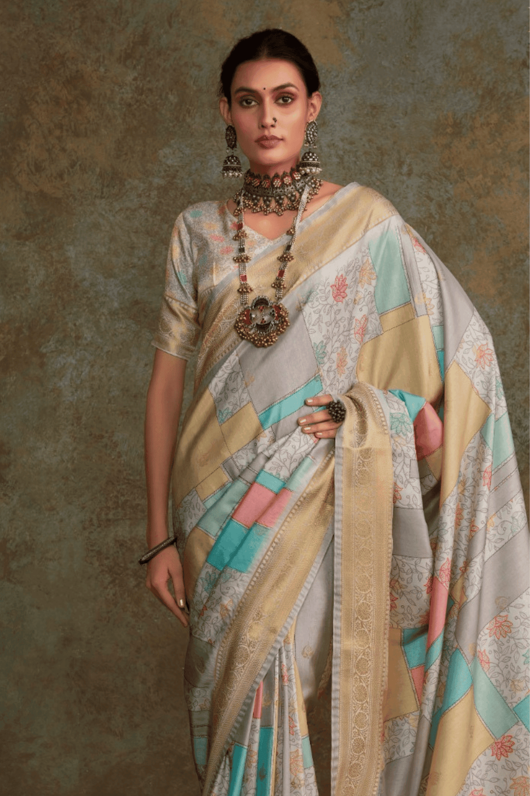 Introducing Glamwiz Ready to Wear Watercolor Print Silk Saree, Elevate your ethnic wardrobe with our stunning soft silk saree, adorned with a beautiful watercolor type of digital print. No draping hassle, just slip into this Pre Stitched Silk Saree and own the moment with our show-stopping Ready to wear saree.