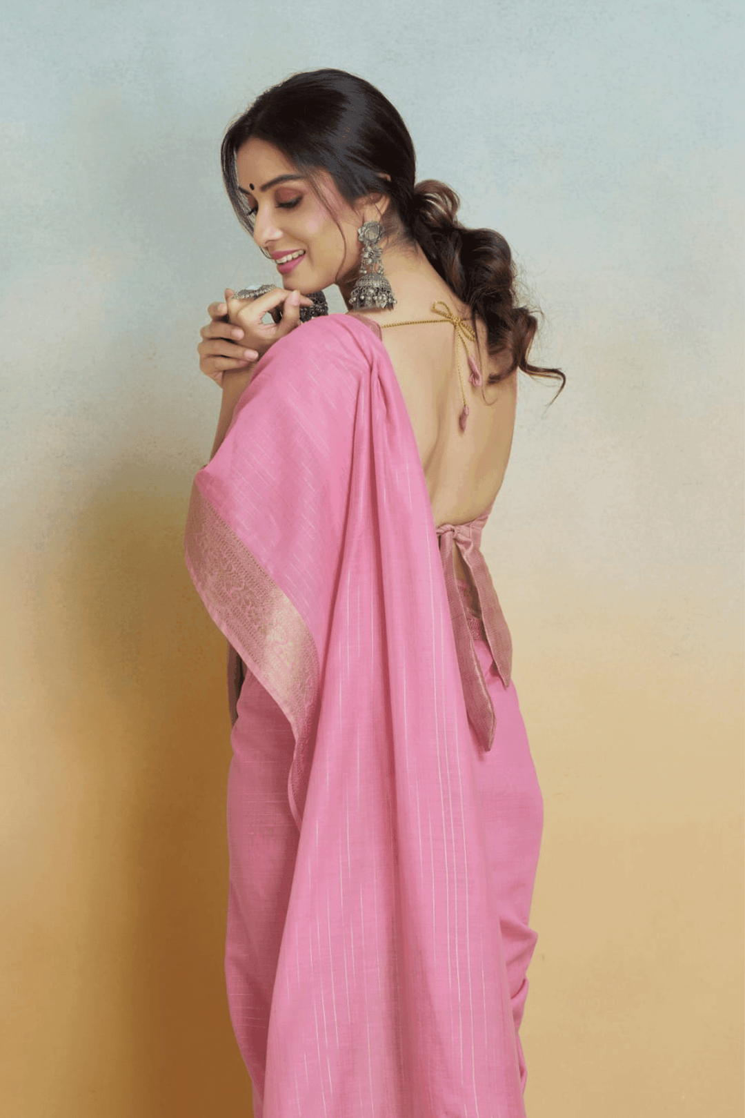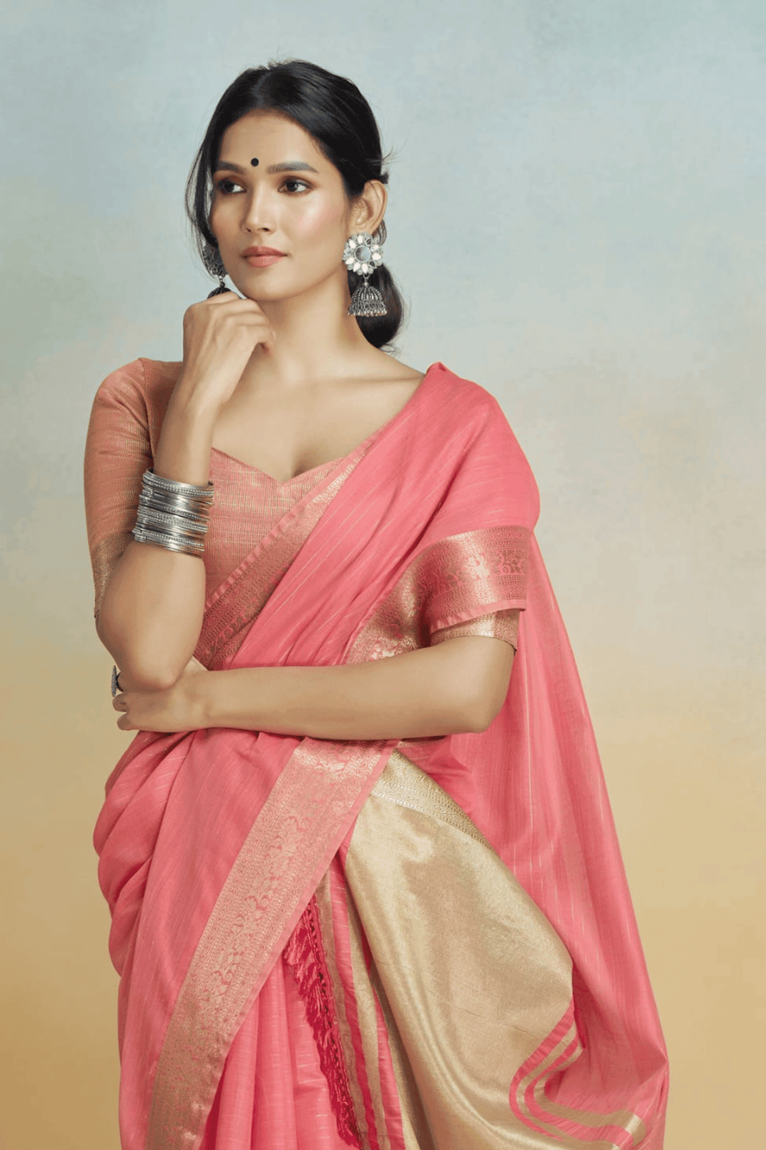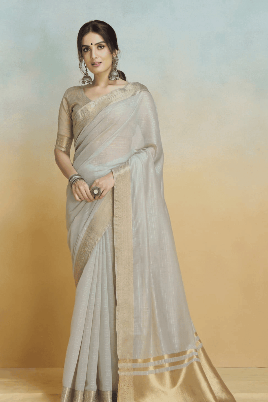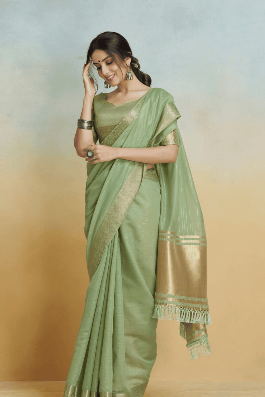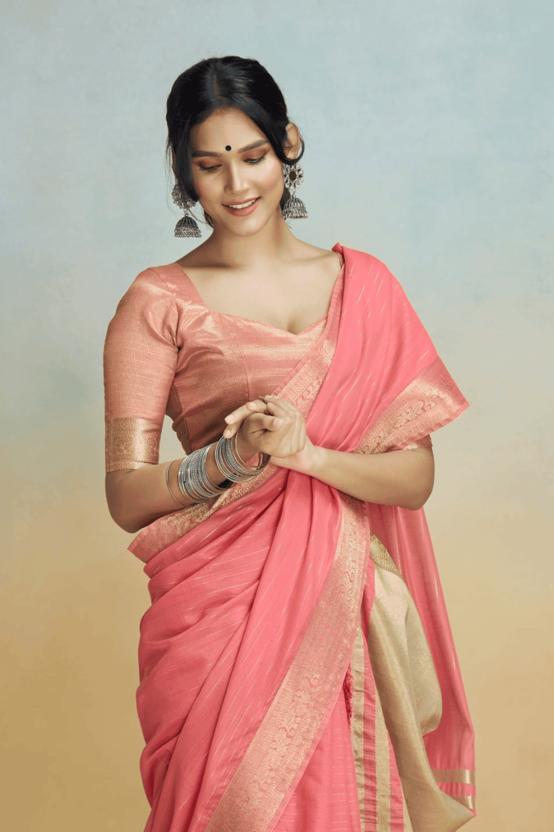 Introducing our Ready to Wear Zari Stripes Raw Silk Saree, woven with zari stripes across the saree. You can easily drape this saree without any hassle as it comes ready-to-wear with a pre-stitched pleats. Ready to wear saree with 1 mtr blouse.