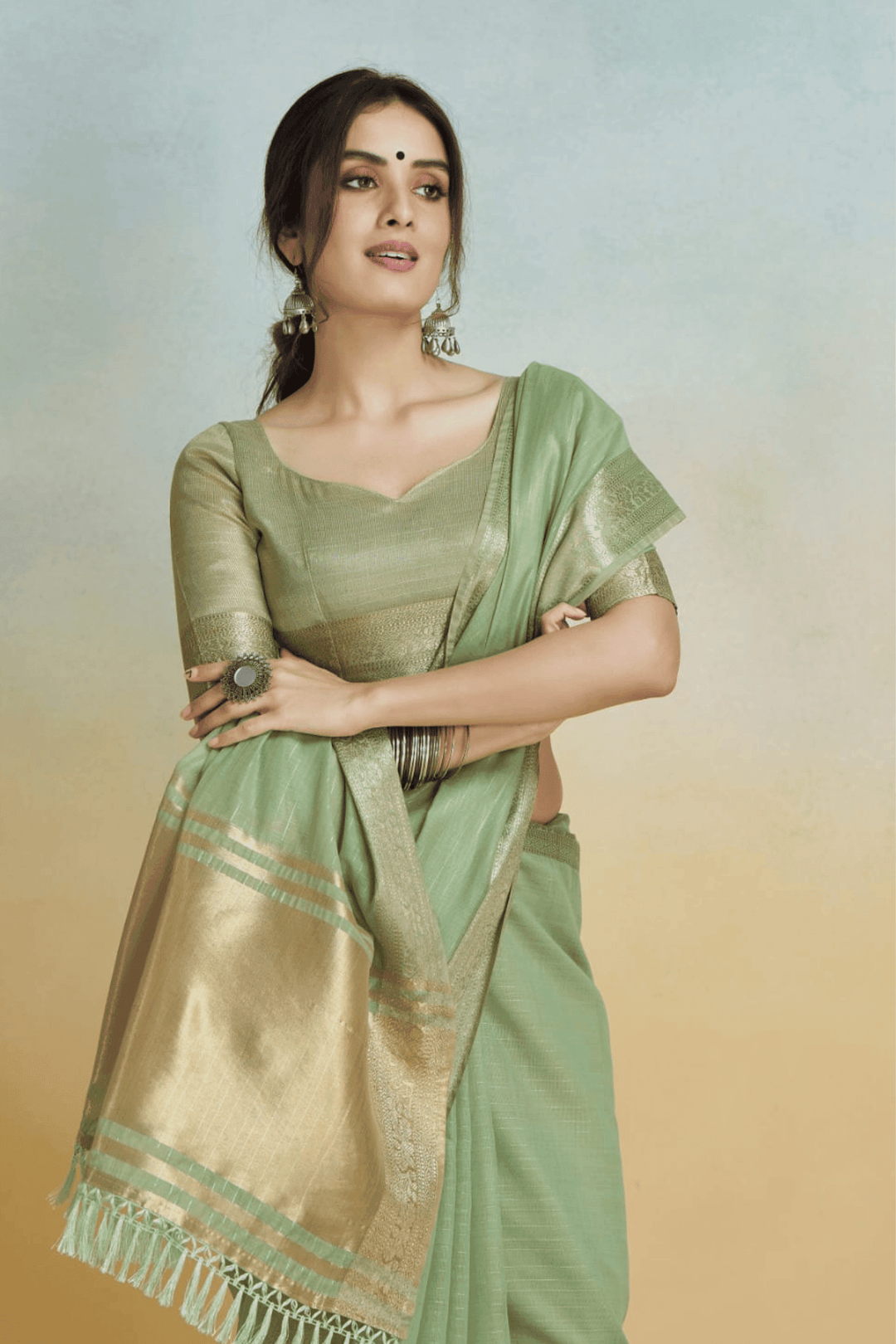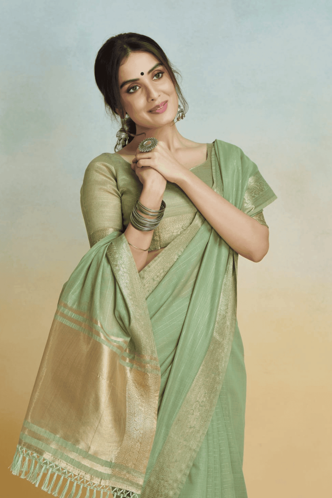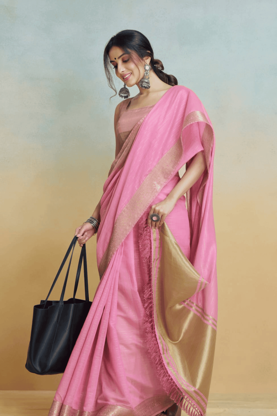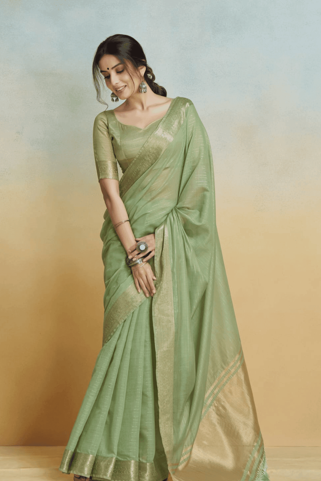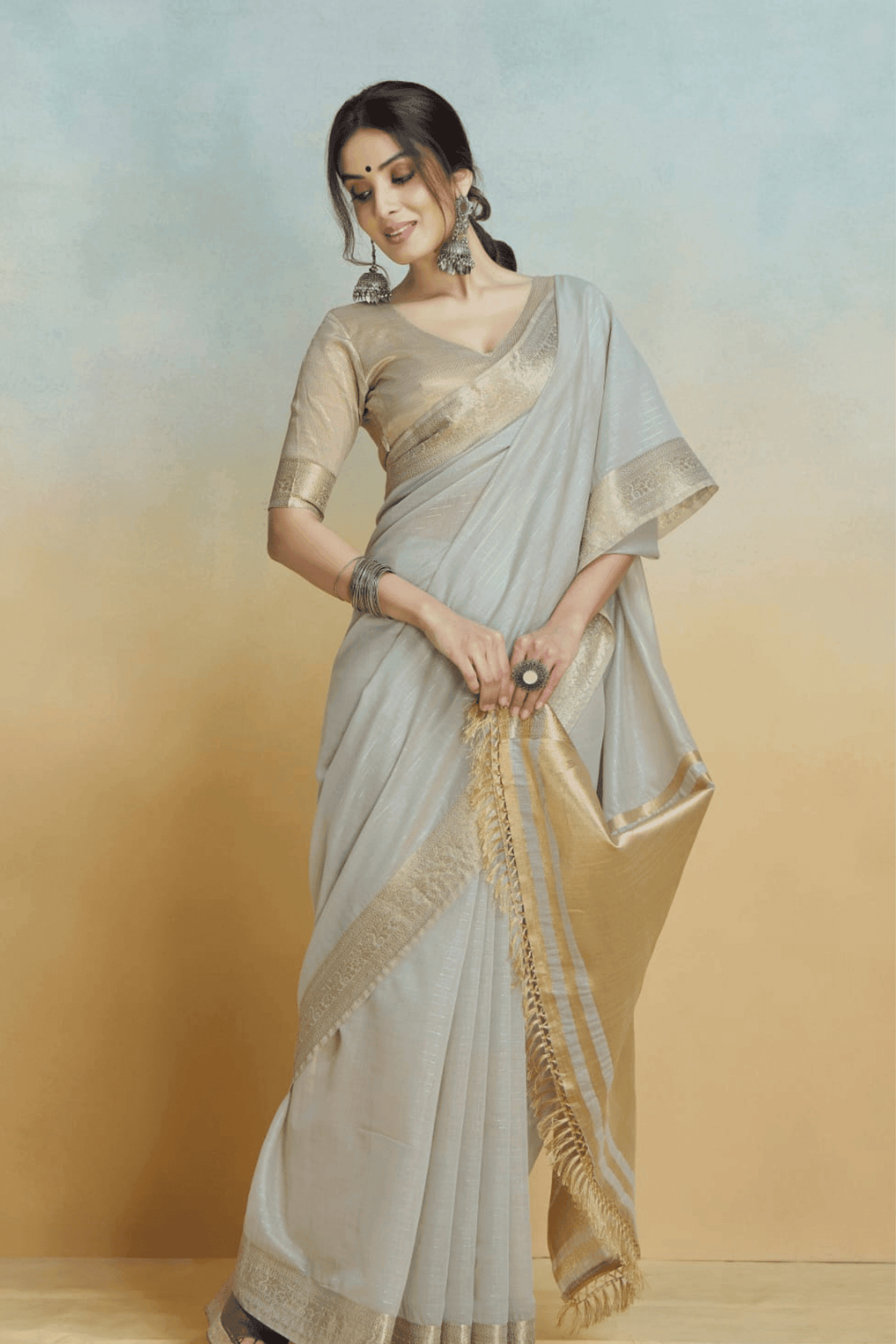 Introducing our Ready to Wear Zari Stripes Raw Silk Saree, woven with zari stripes across the saree. You can easily drape this saree without any hassle as it comes ready-to-wear with a pre-stitched pleats. Ready to wear saree with 1 mtr blouse.