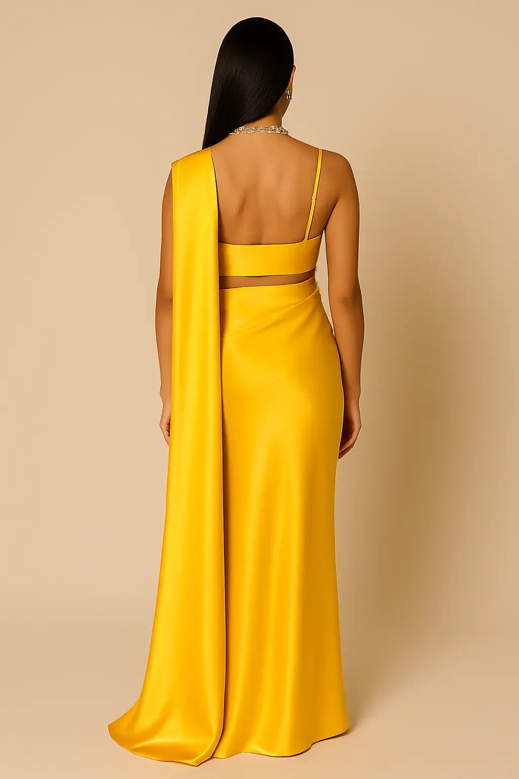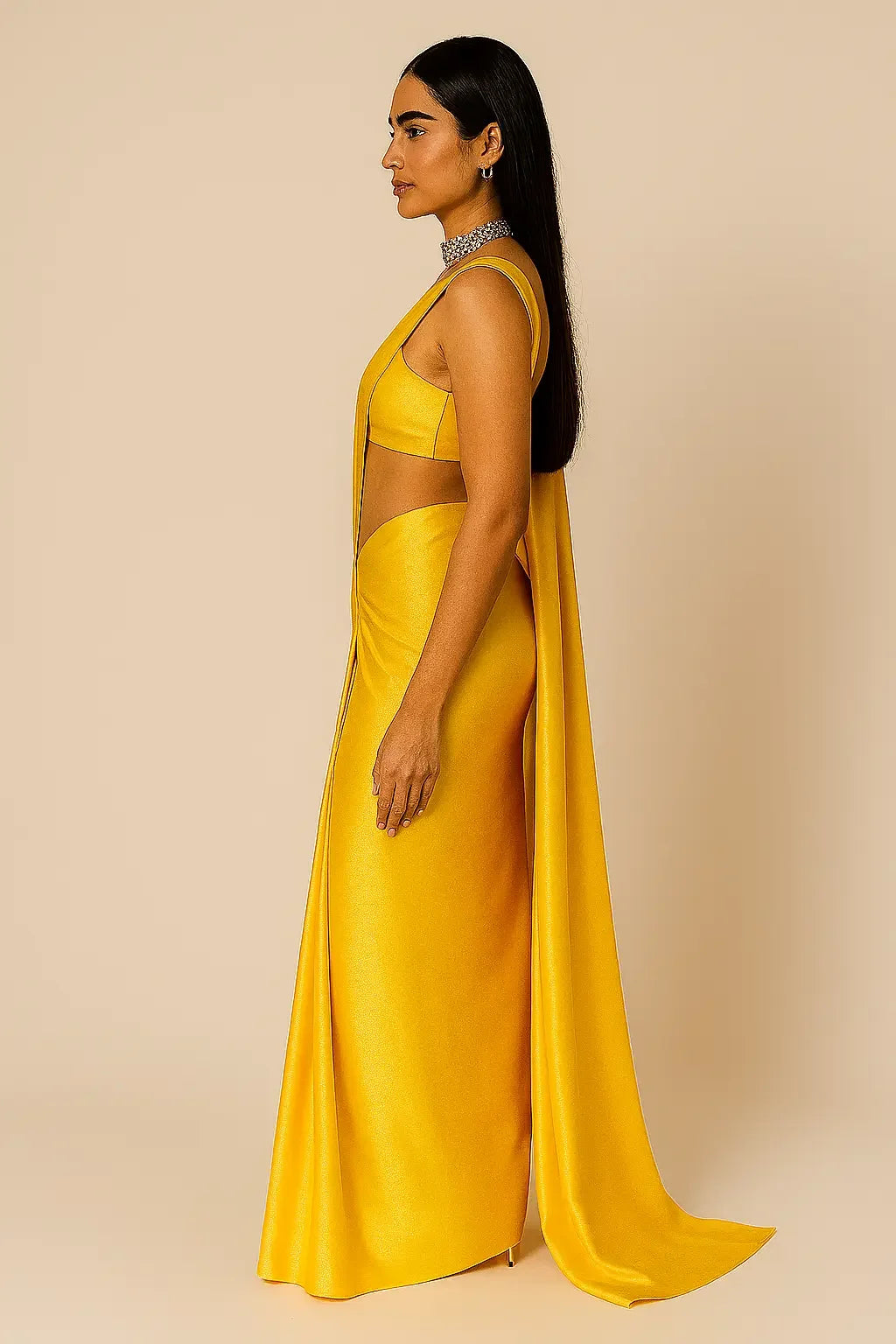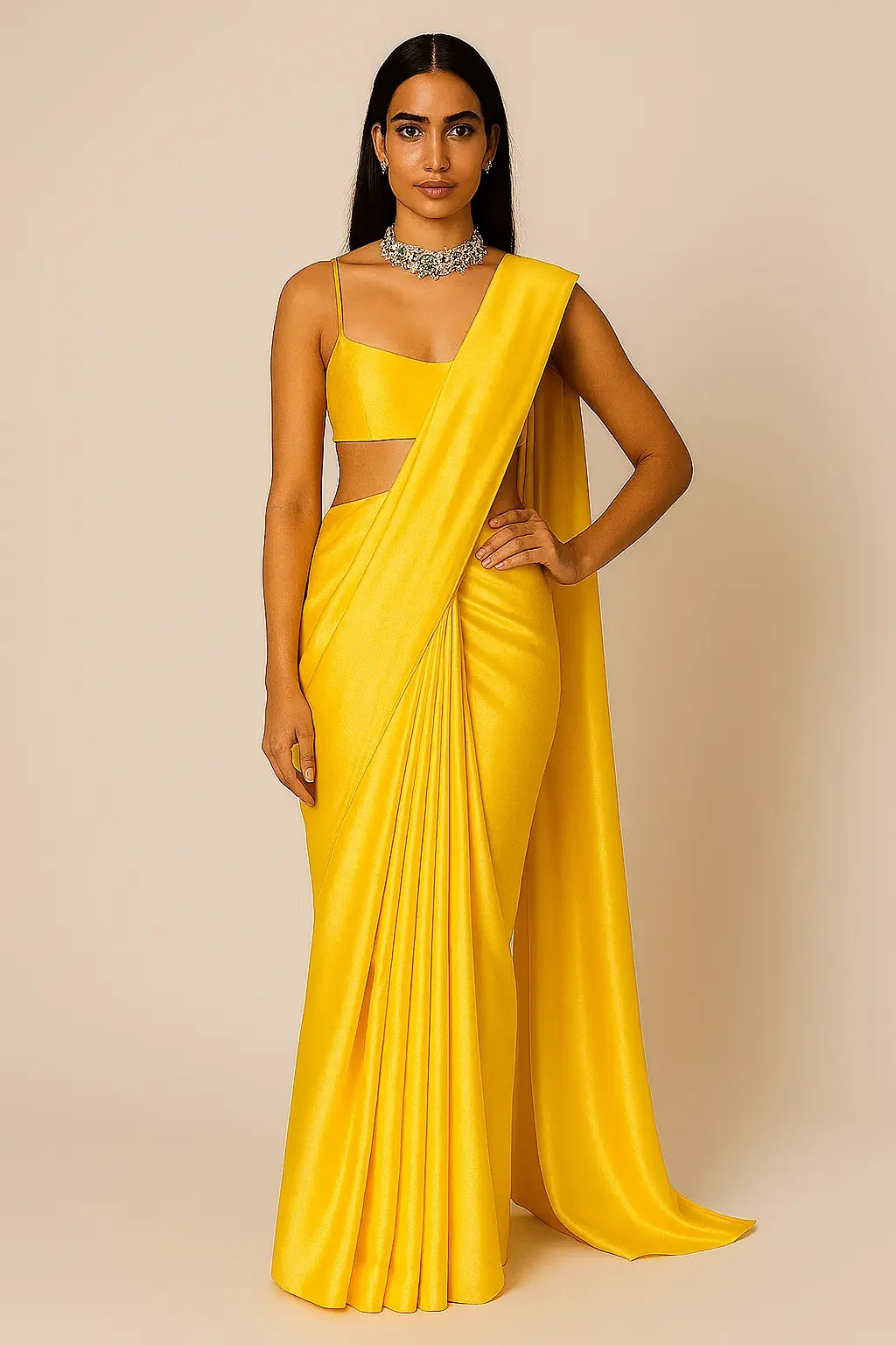 Satin Sol | Pre Stitched Yellow Satin Saree
