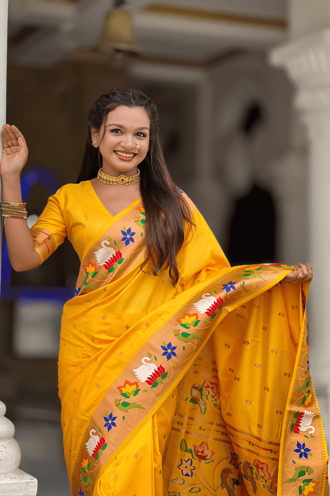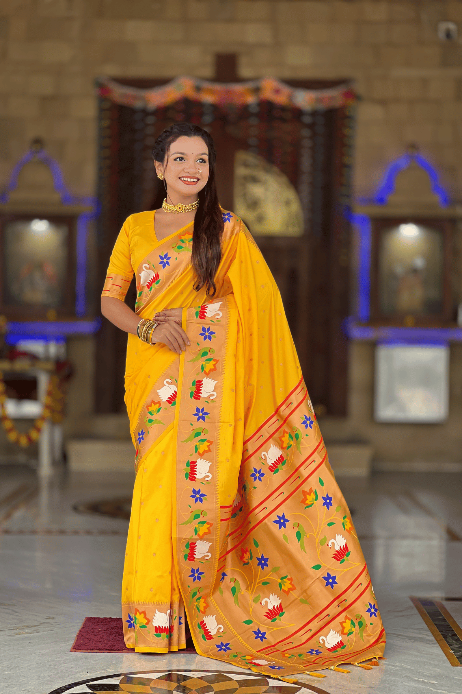 Shahi Paithani | Ready to Wear Yellow Paithani Silk Saree