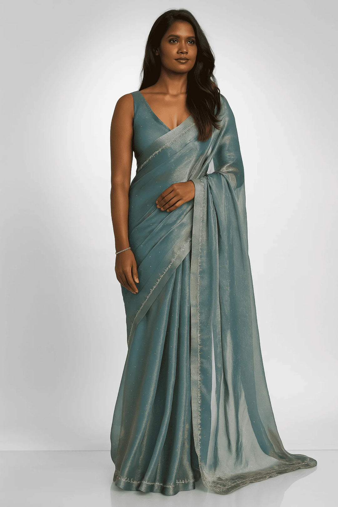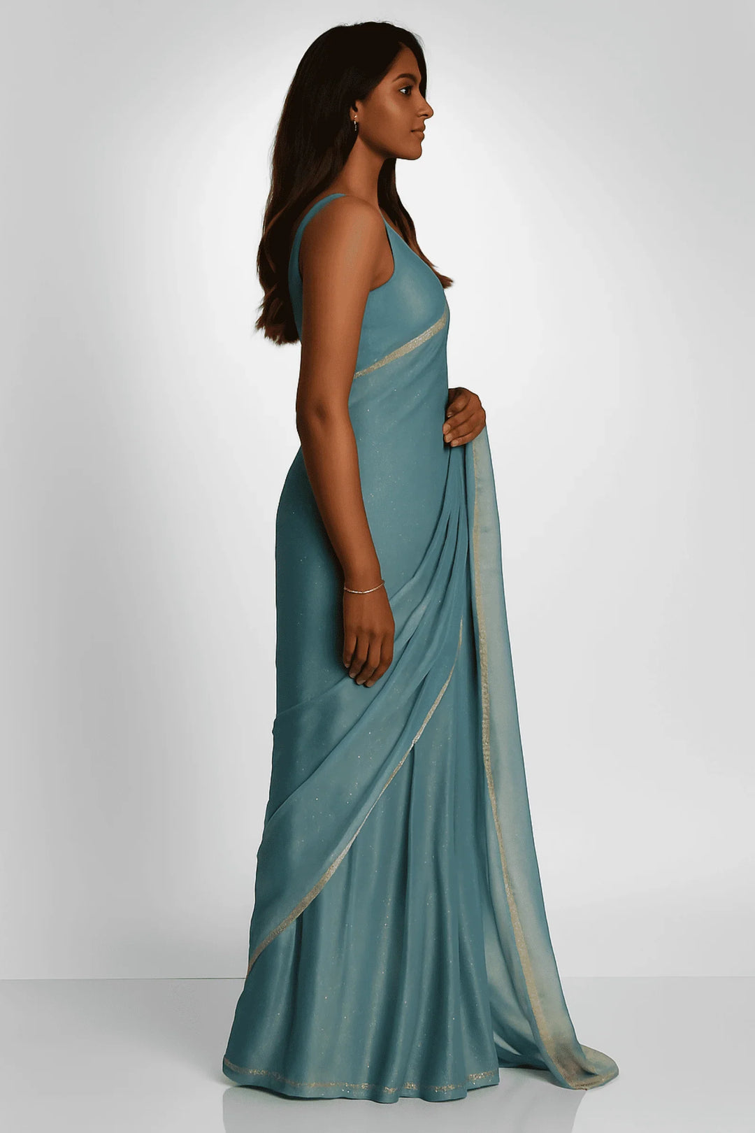 Teal Reverie | Ready to Wear Aqua Jimmy Choo Saree