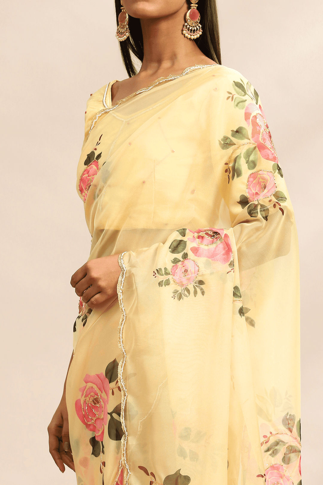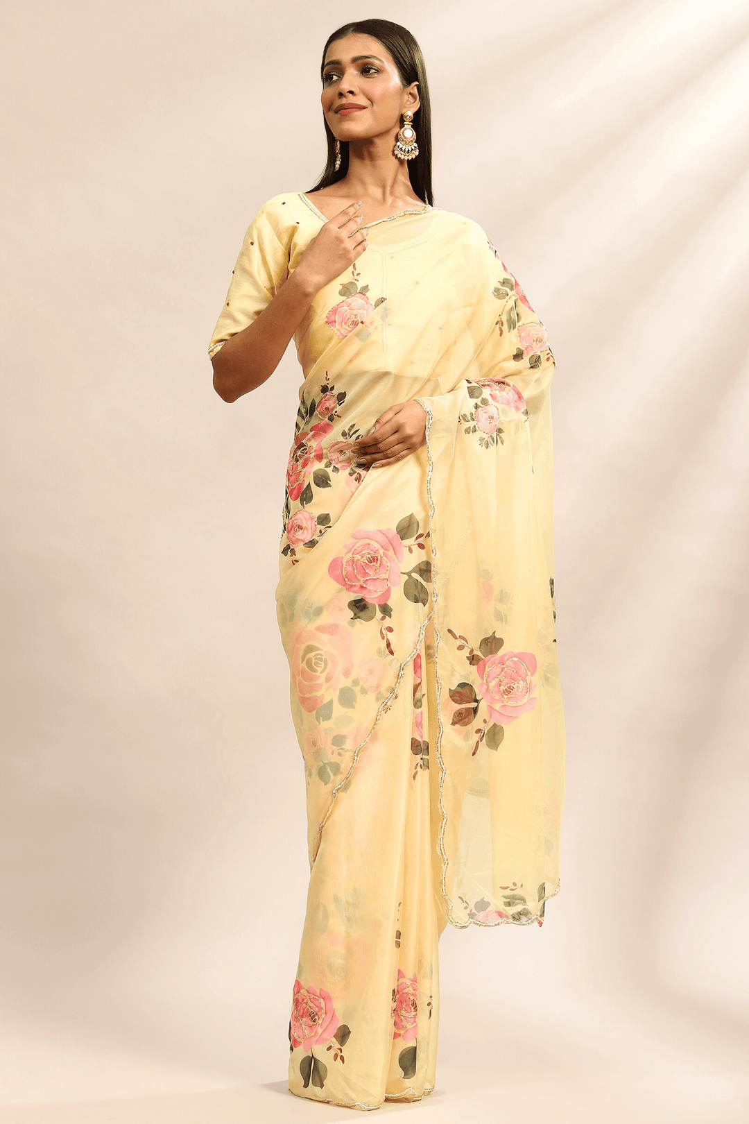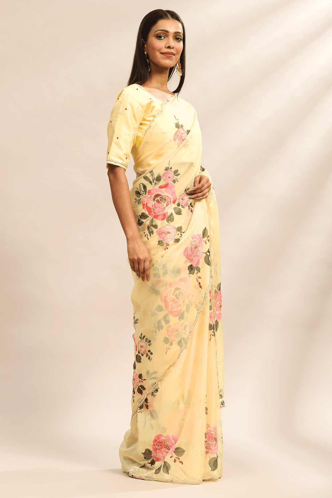 Sunflower | Pre Stitched Floral Organza Saree with Stitched Blouse
