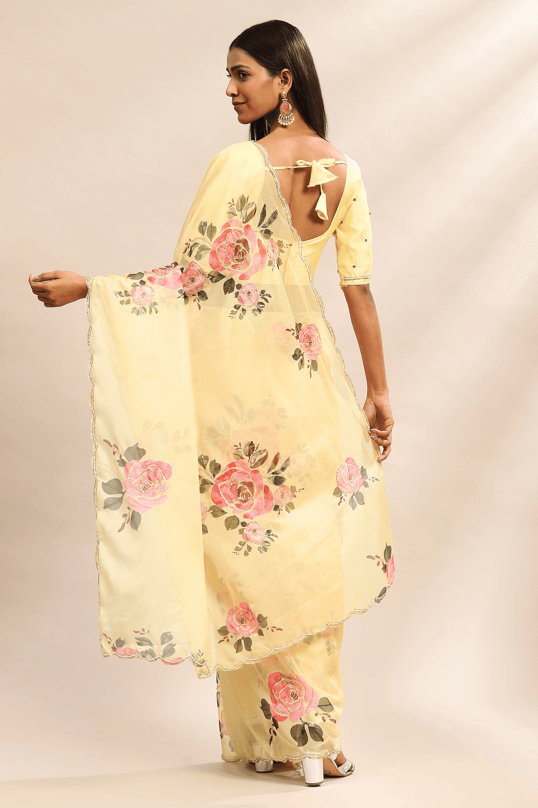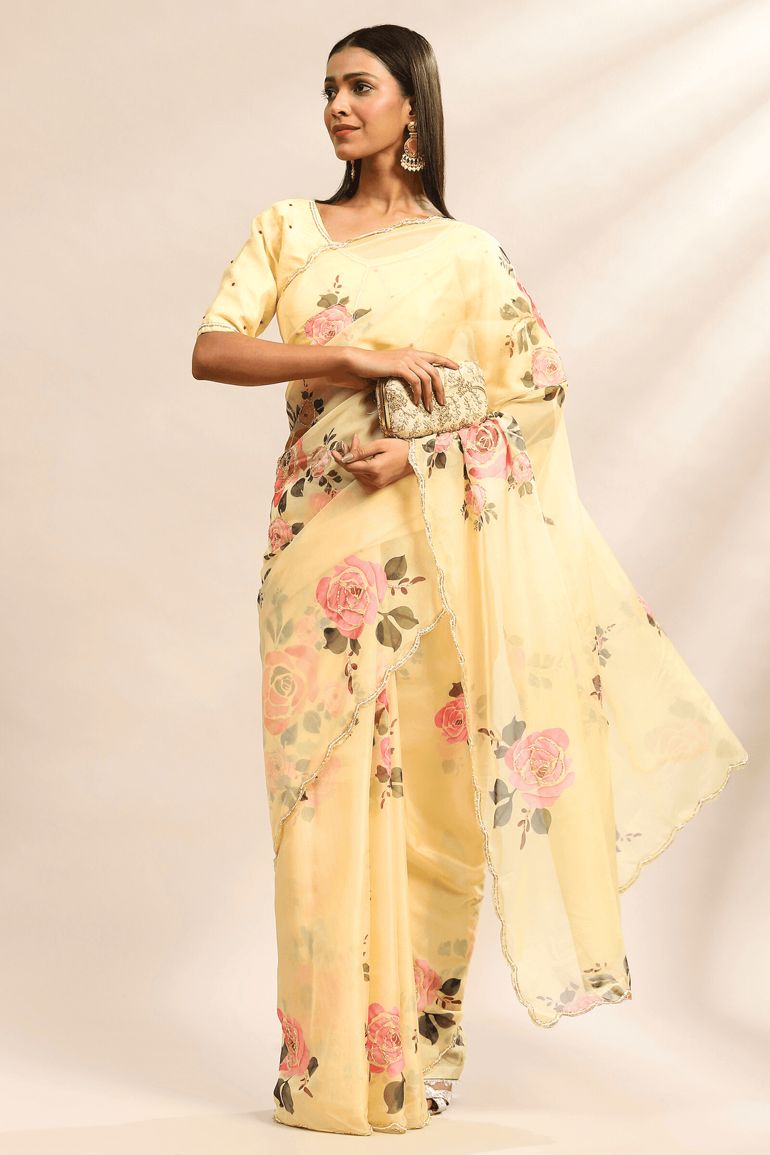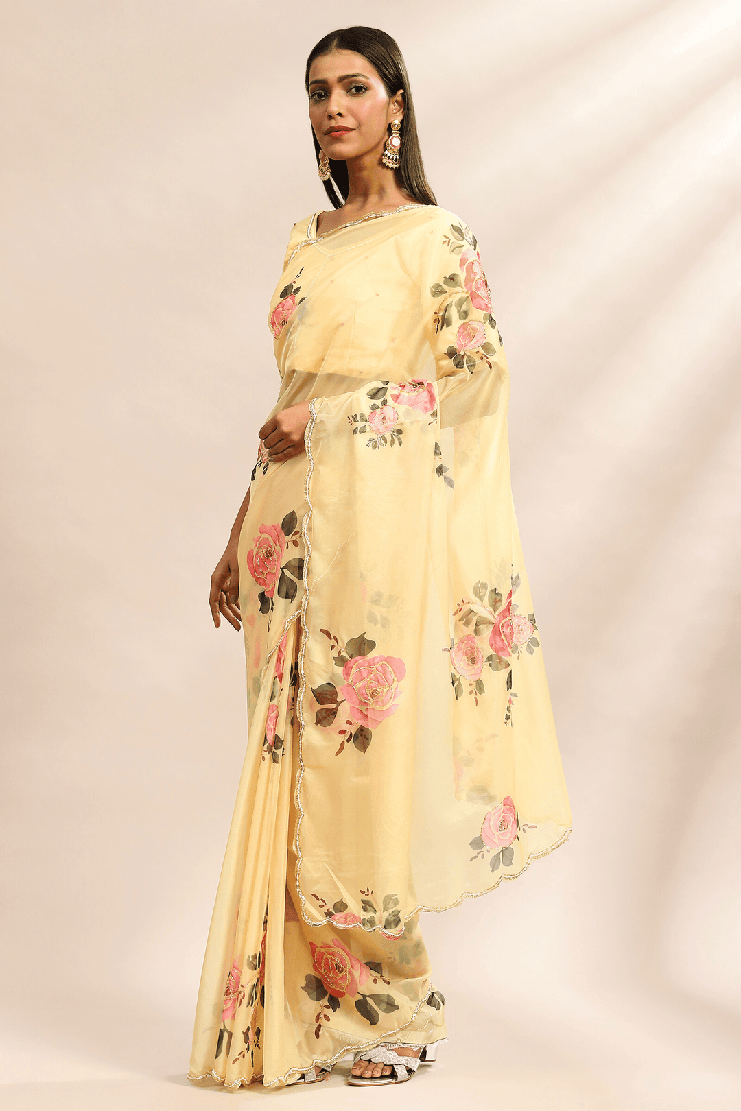 Sunflower | Pre Stitched Floral Organza Saree with Stitched Blouse