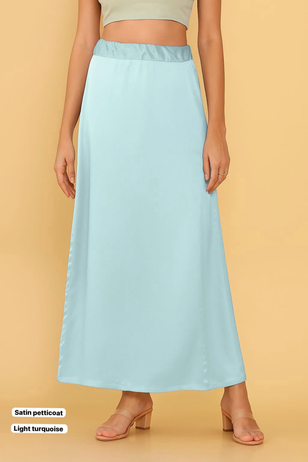 Glamwiz Satin Saree Peticoat - Light Turquoise