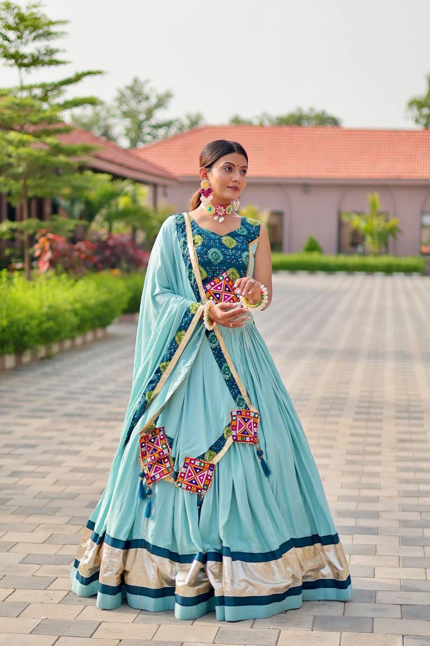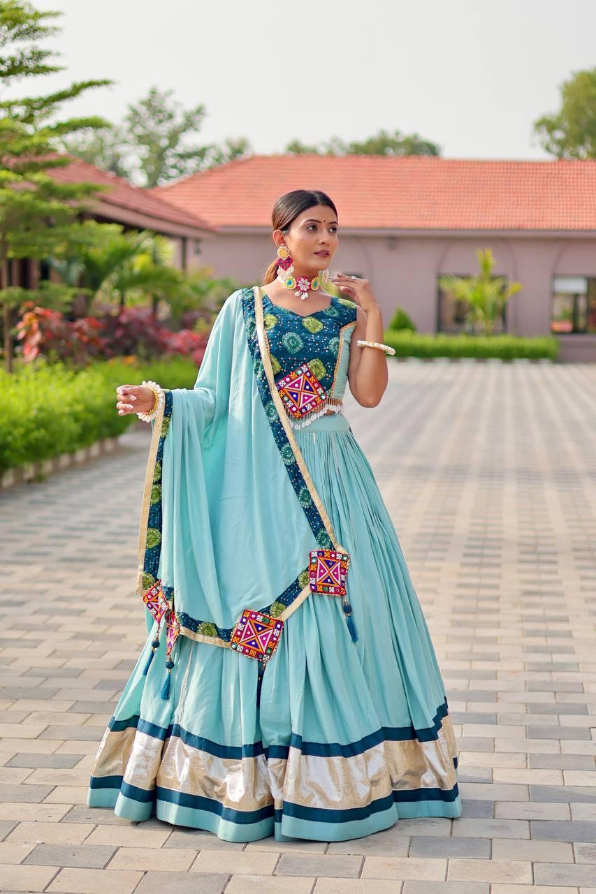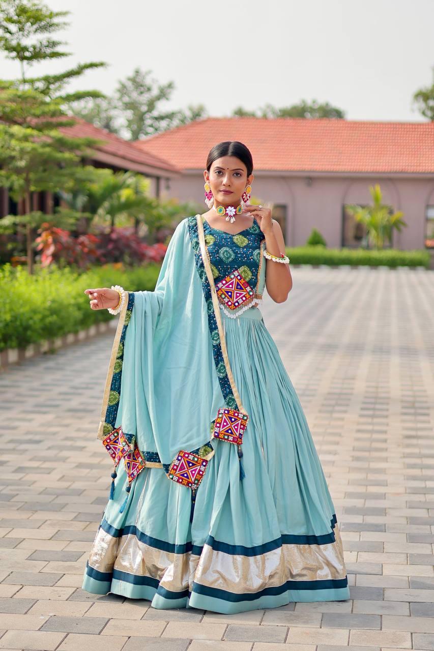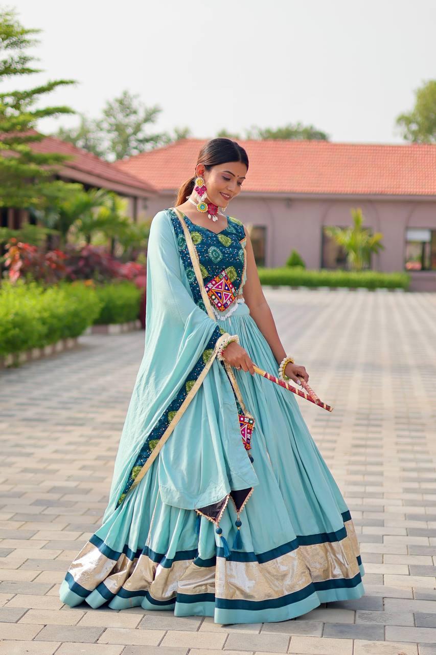 Aasmani Navratna Adaa Lehenga Set