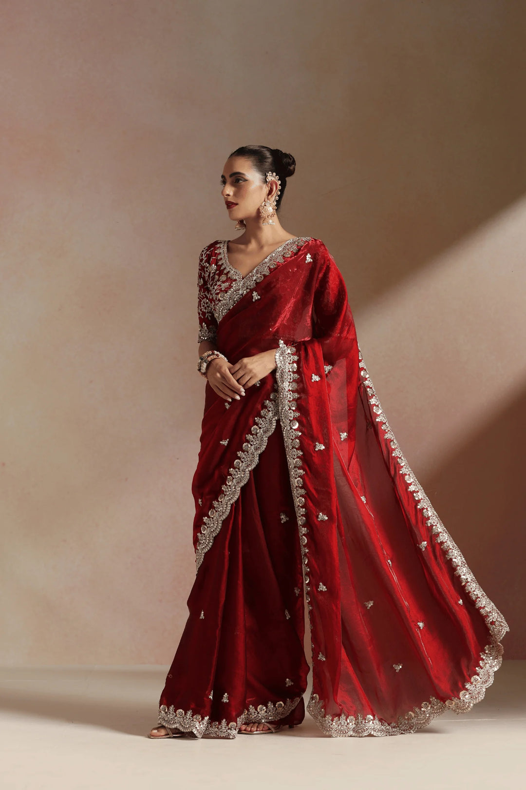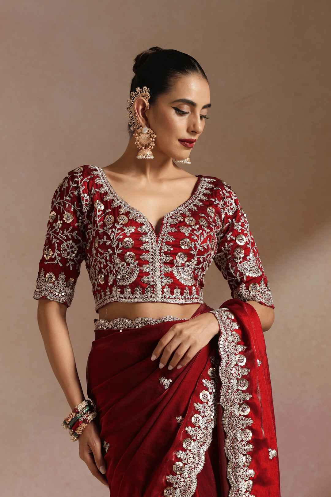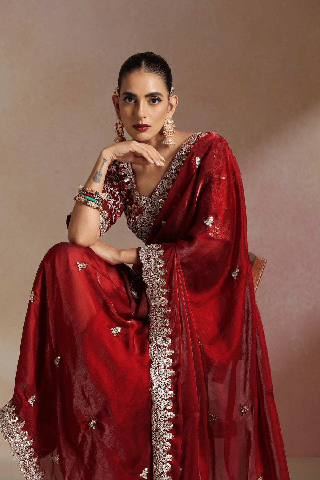 Amour Red | Maroon Ready to Wear Saree with Stitched Blouse