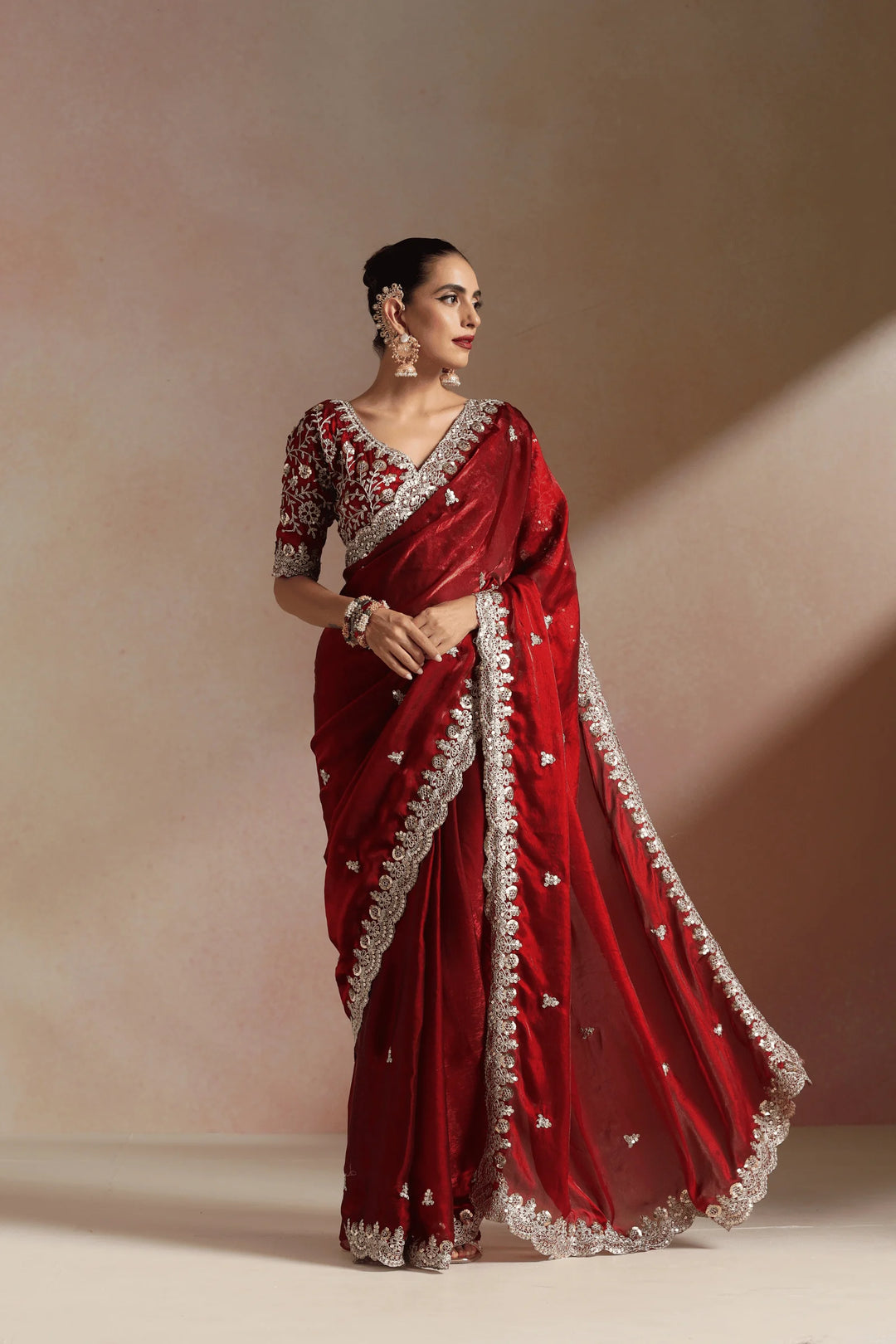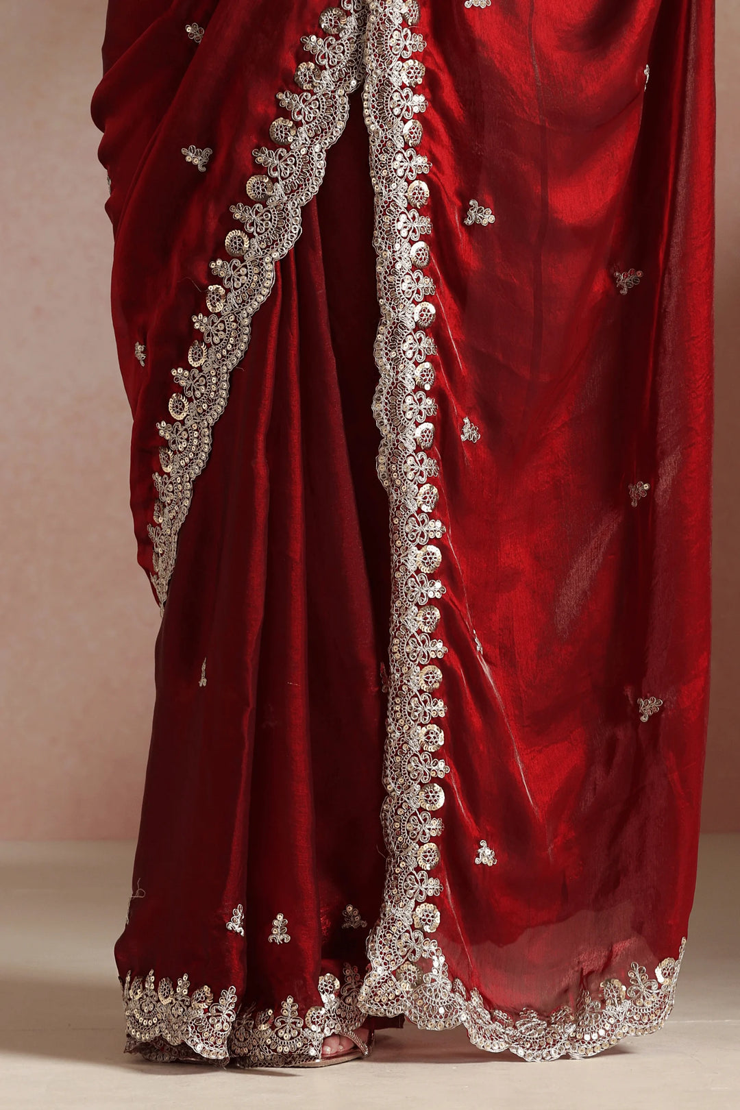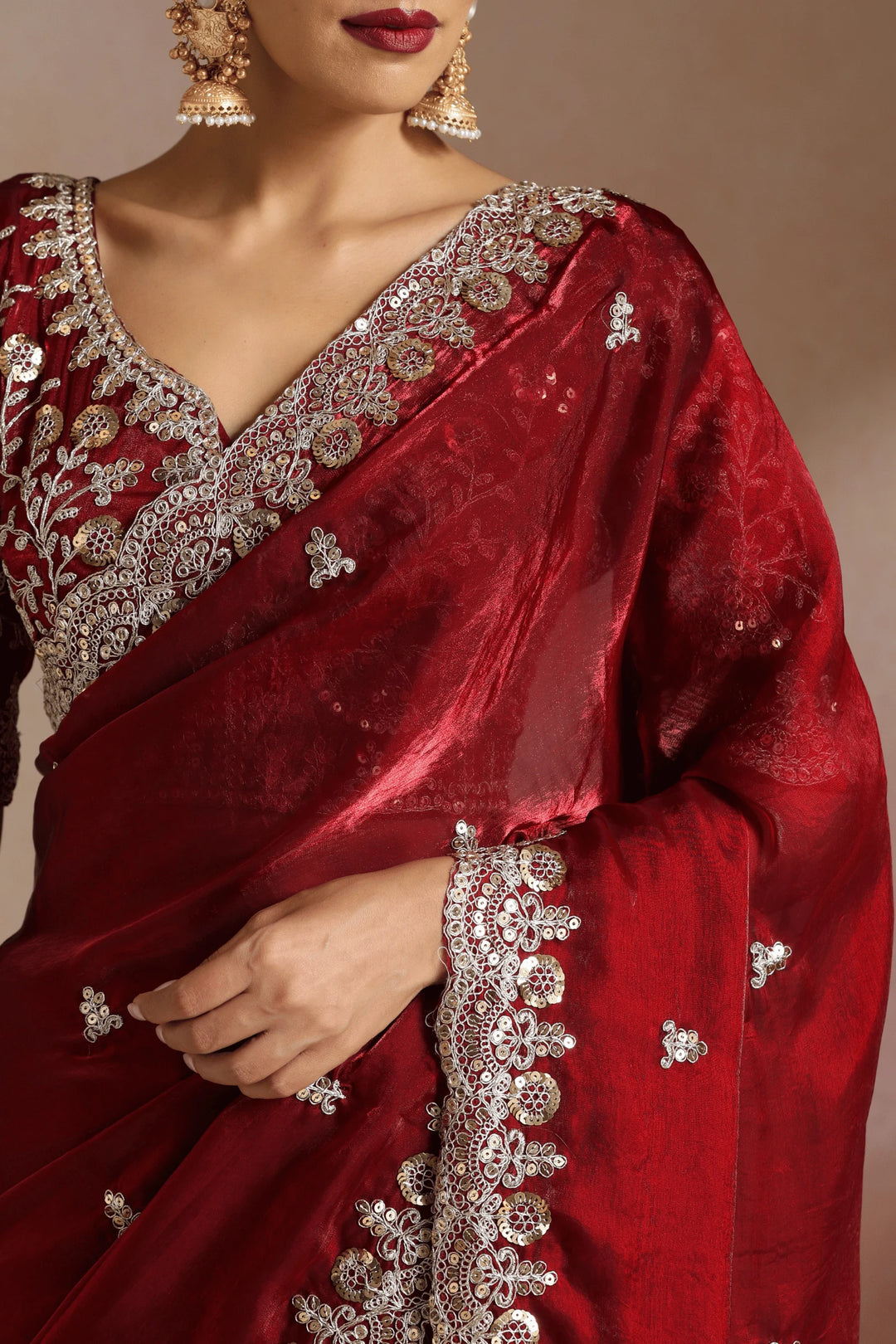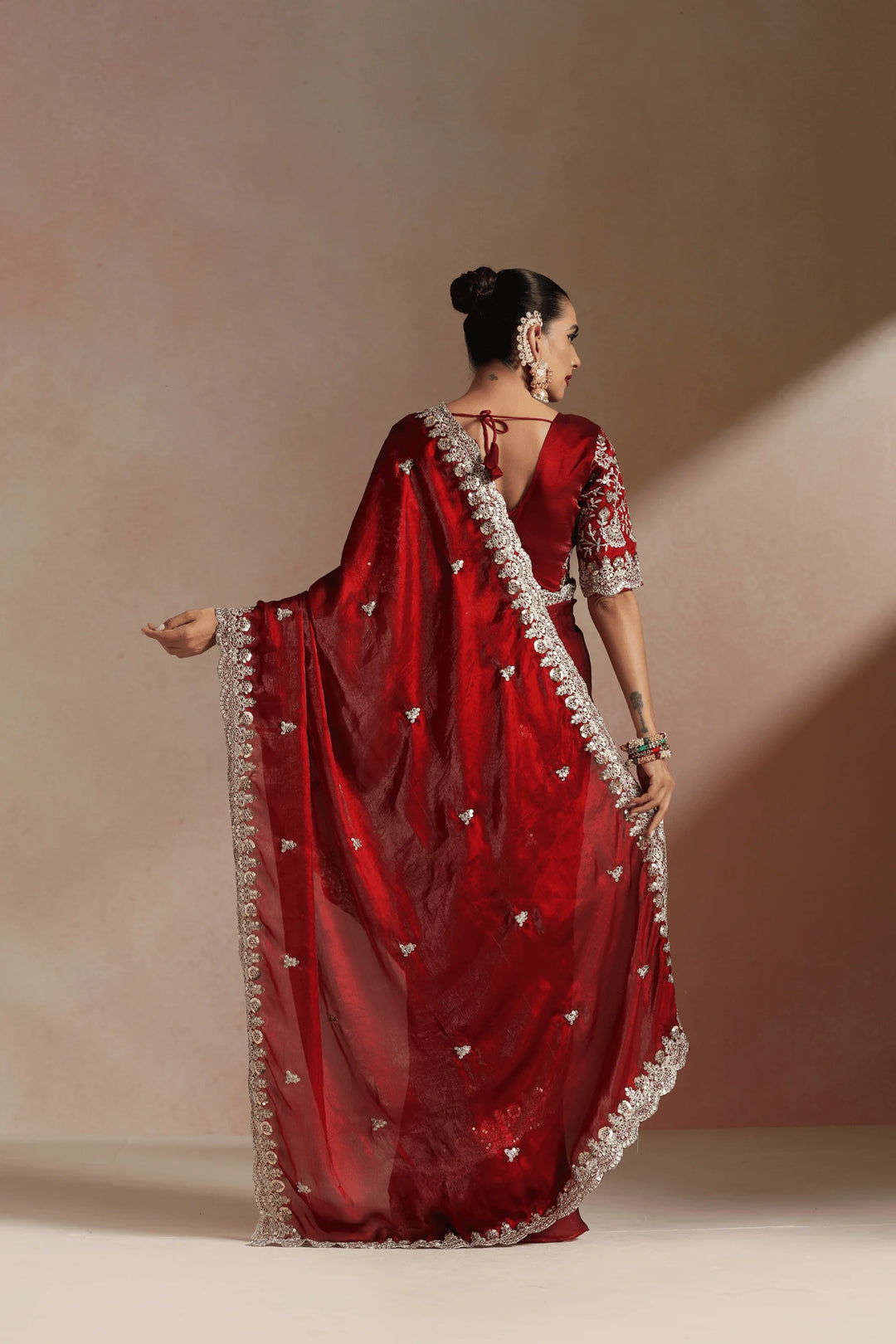 Amour Red | Maroon Ready to Wear Saree with Stitched Blouse