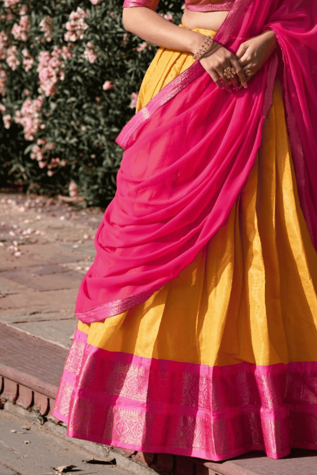 Glamwiz Sunshine & Rose Half Saree Silk Lehenga