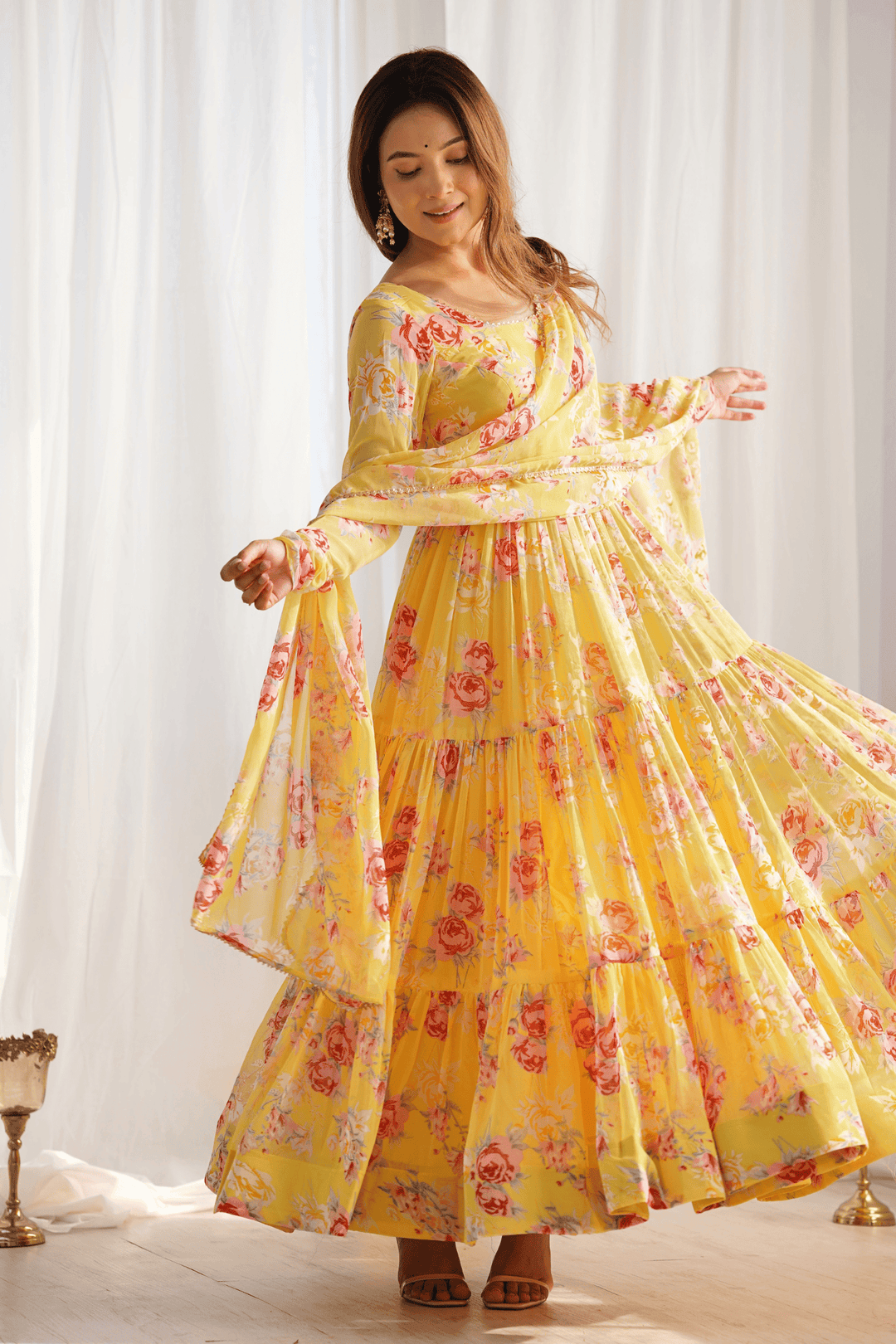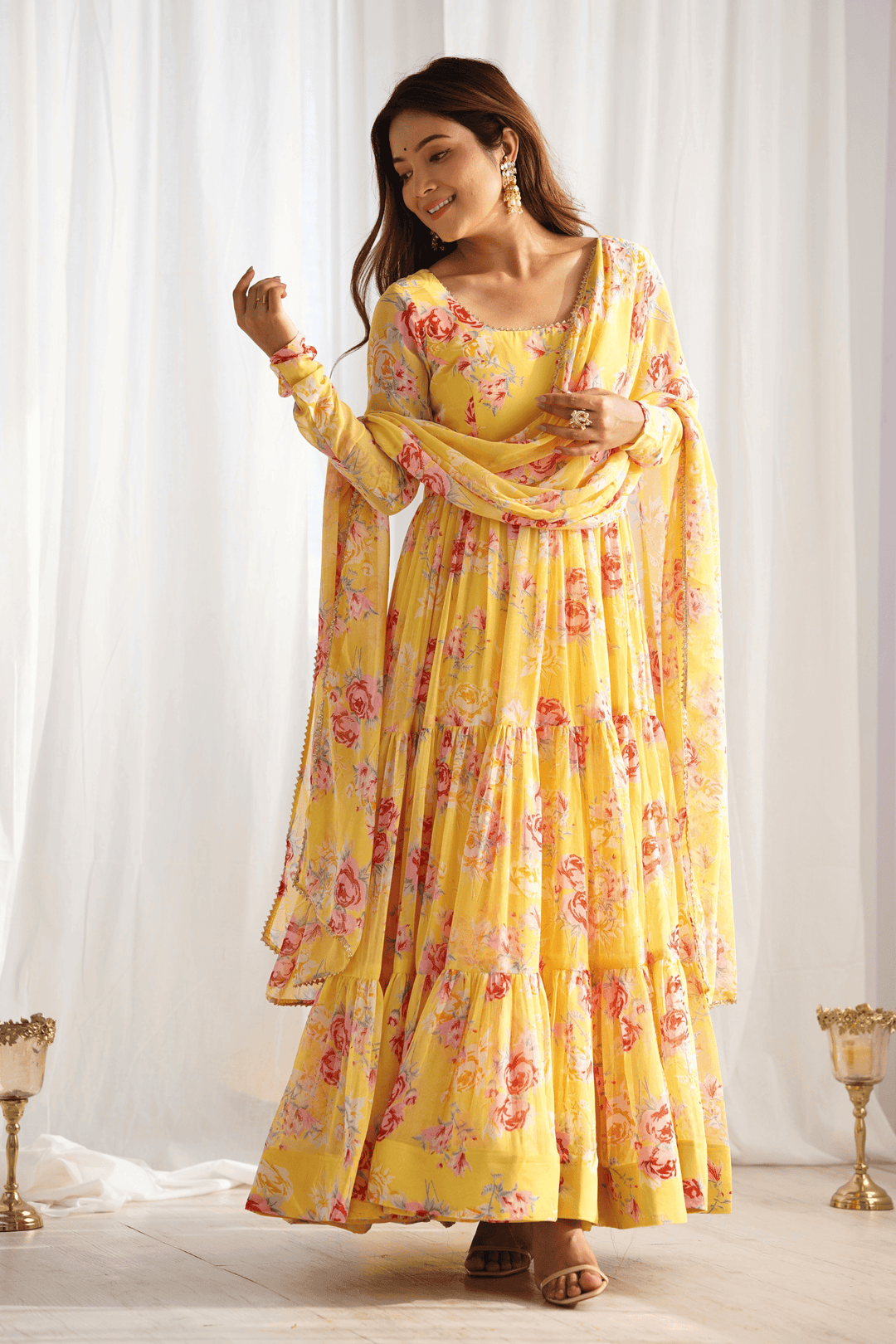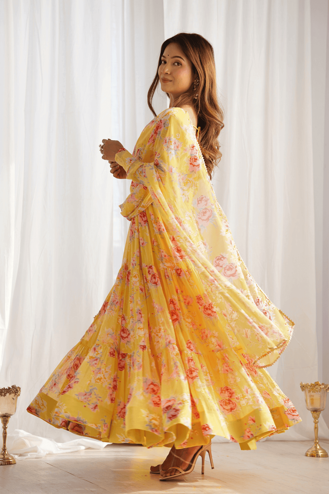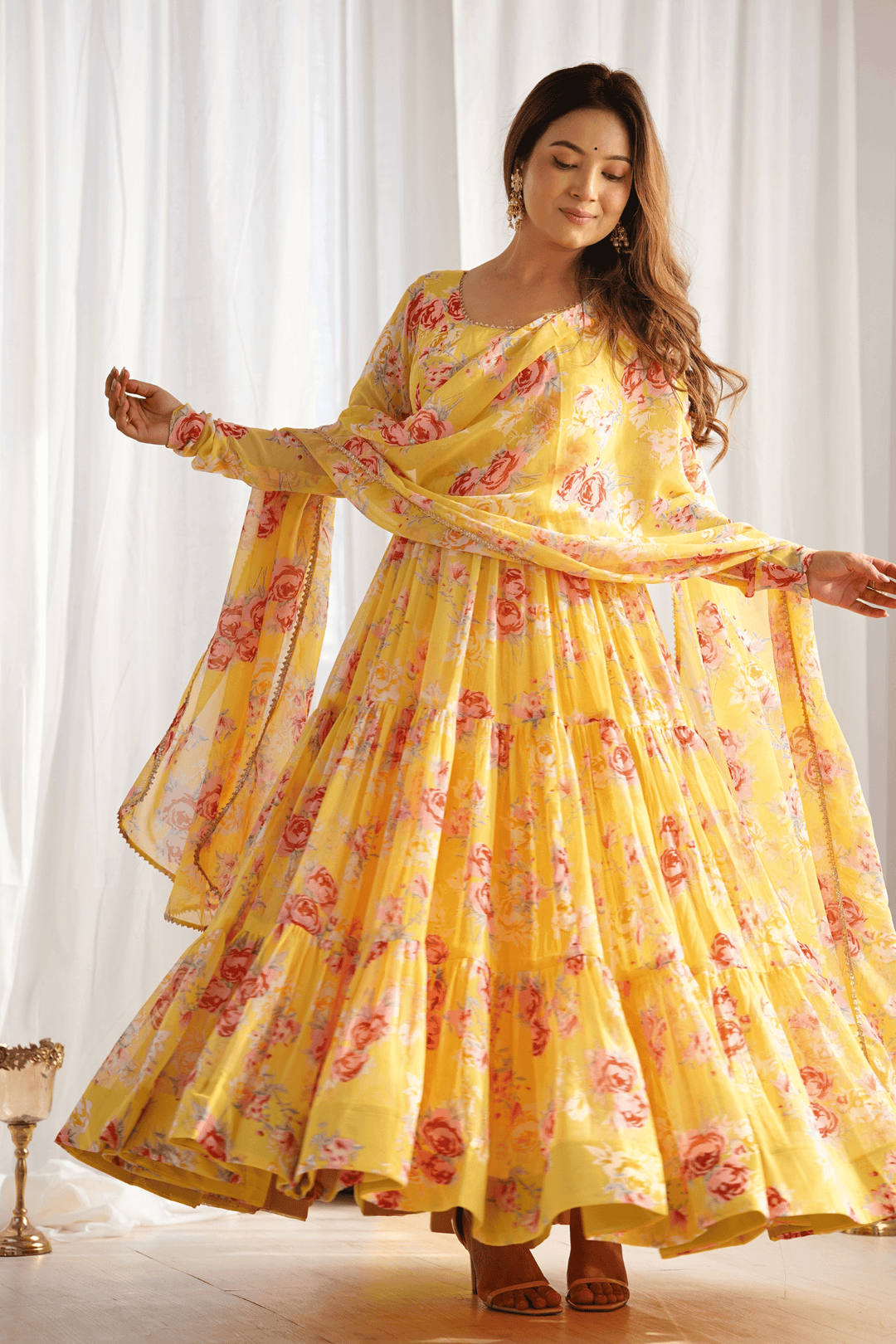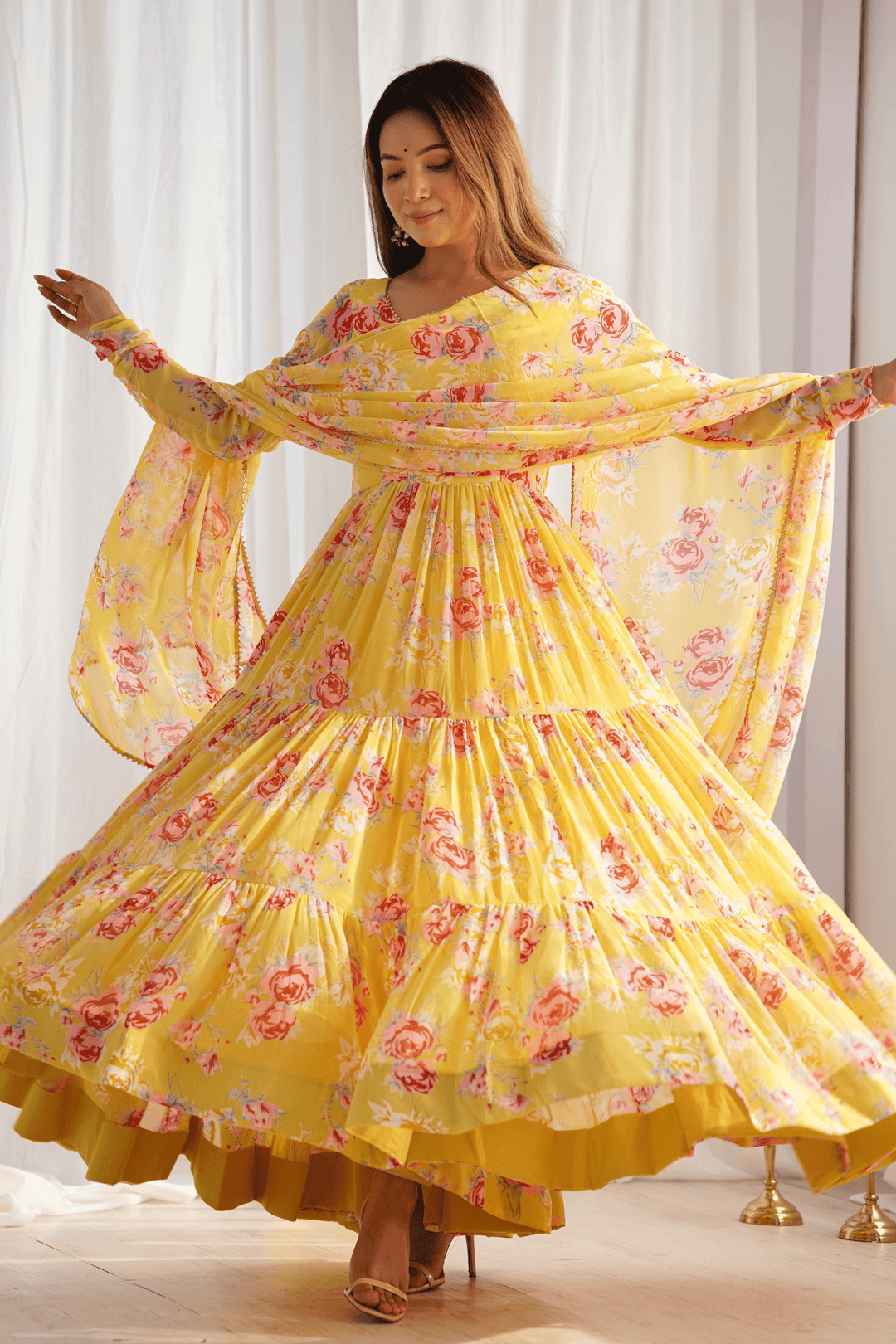Glamwiz Yellow Tuscan Blossom Printed Anarkali Suit
