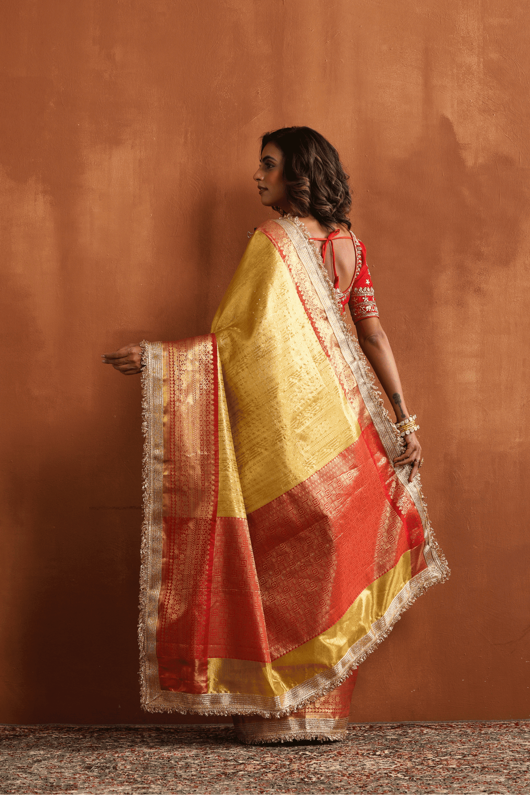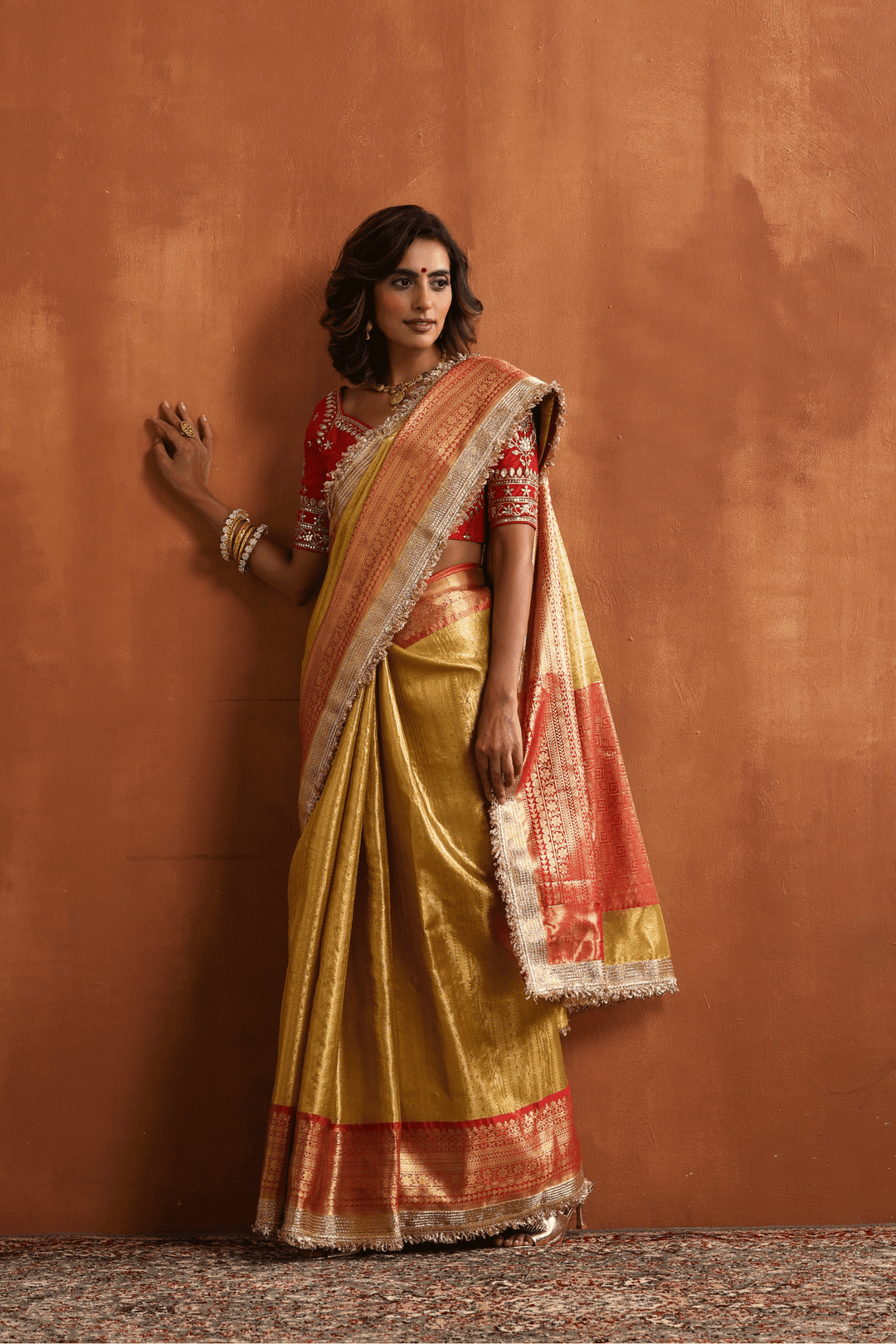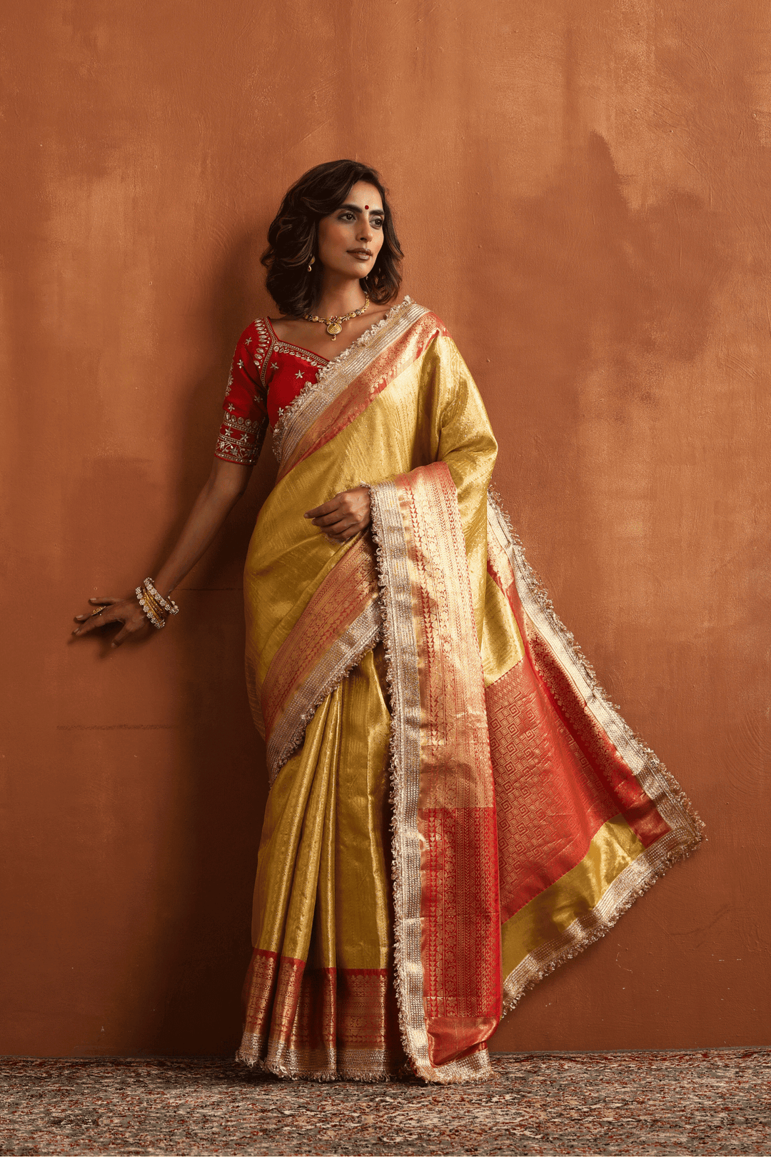 Golden Grandeur | Ready to Wear Gold Tissue Saree