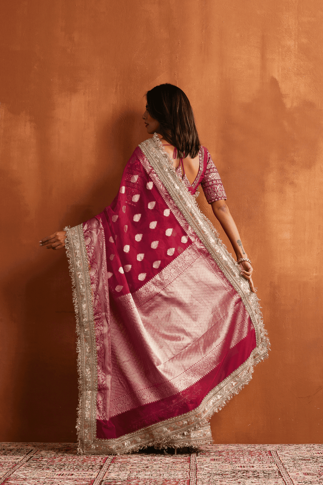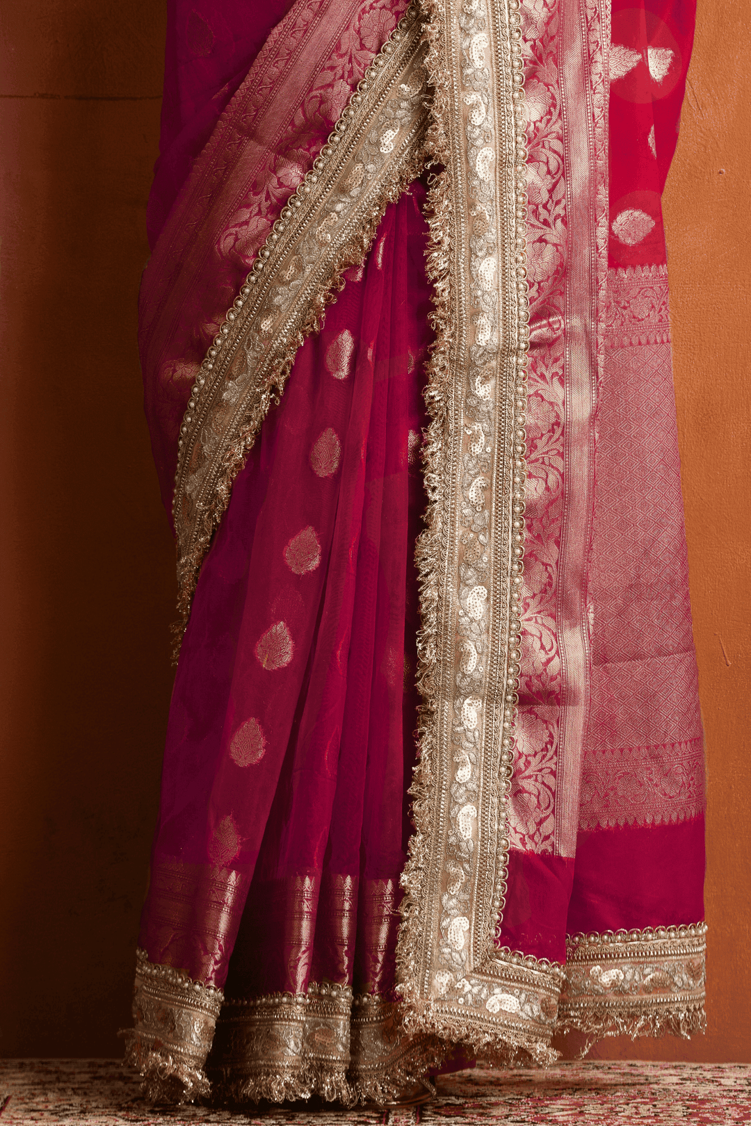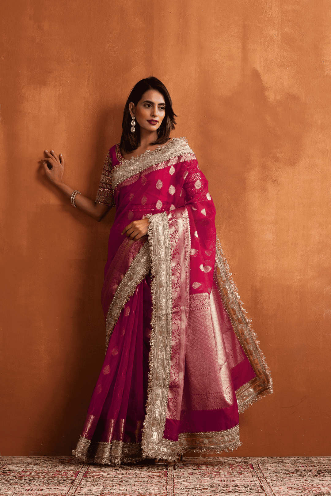 Gulabi Adaa | Ready to Wear Hot Pink Tissue Saree