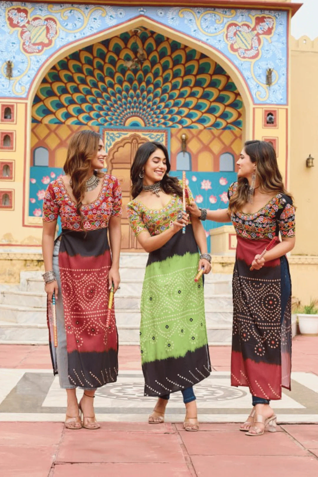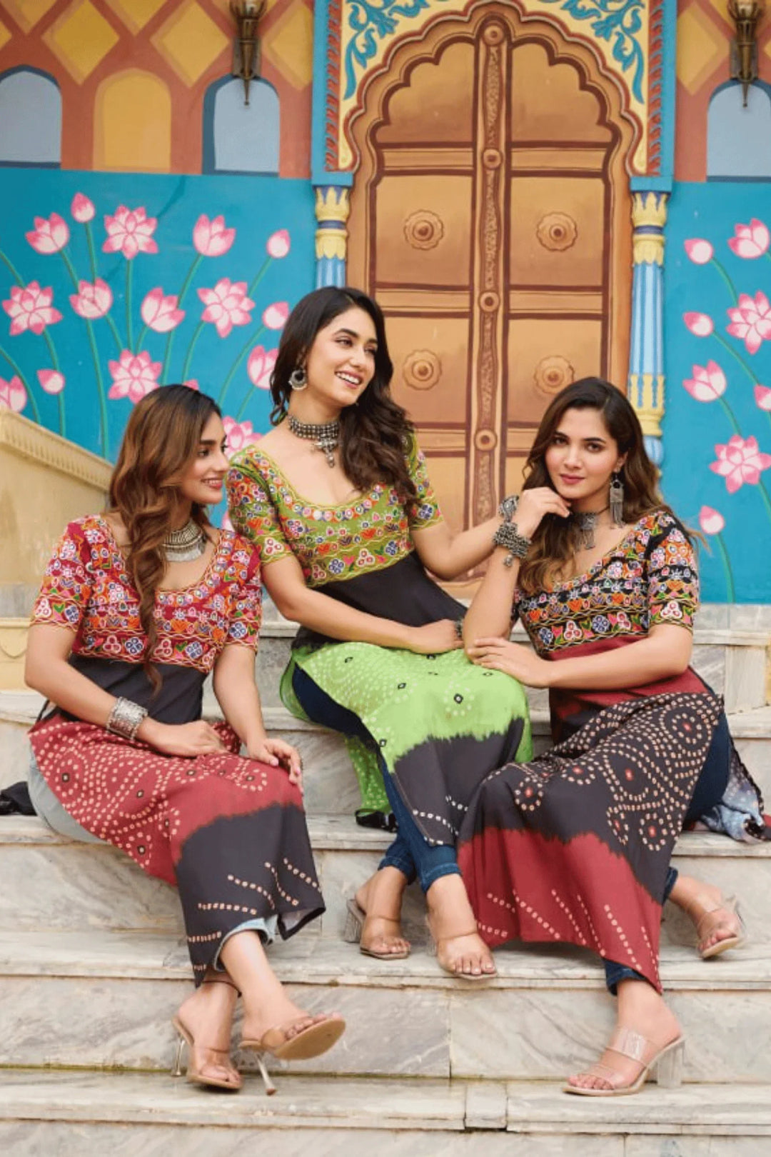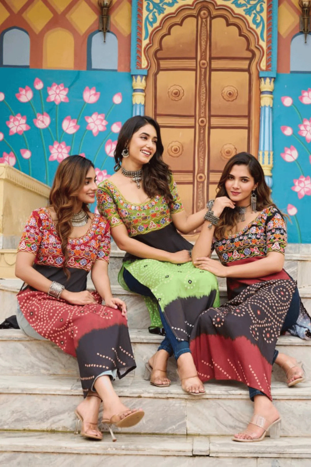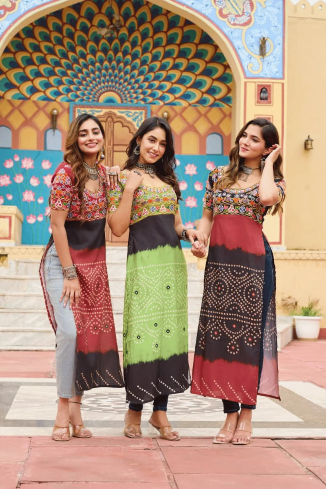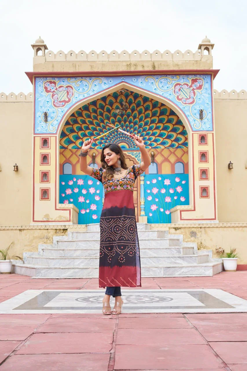 Add a burst of playful elegance to your wardrobe with our Kutchi Gamthi Kurti.
