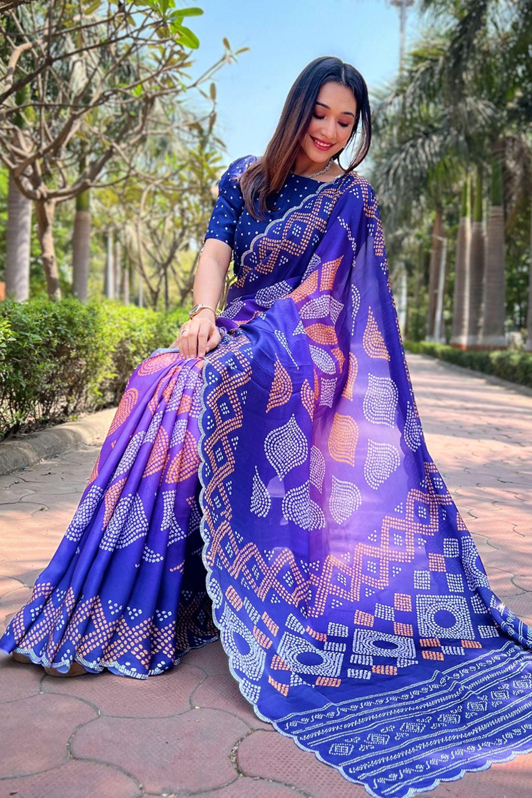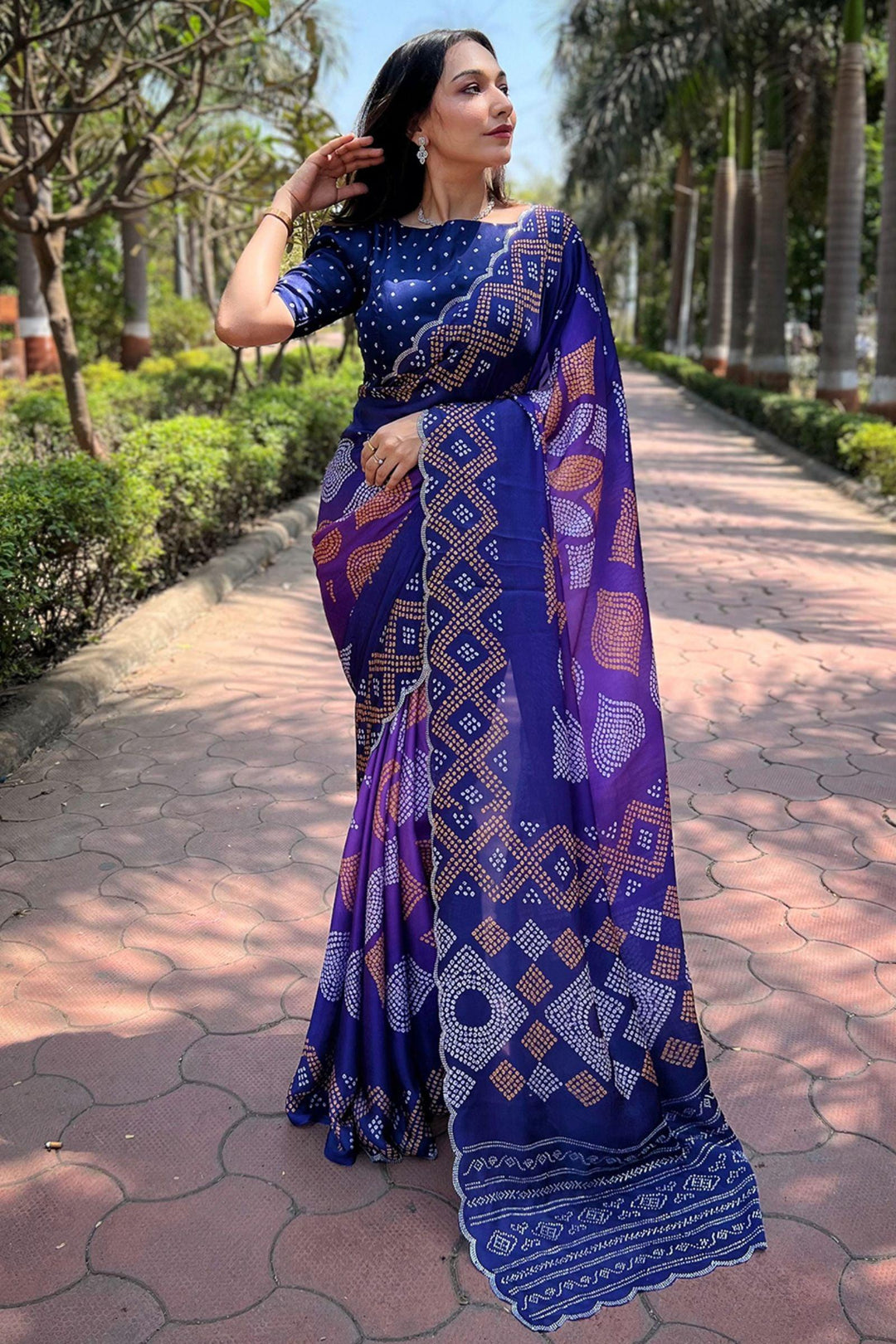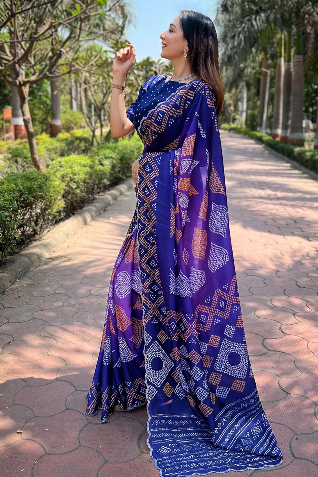 Ready To Wear Midnight Blue Bandhej Saree