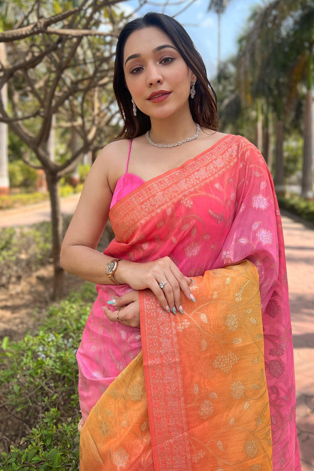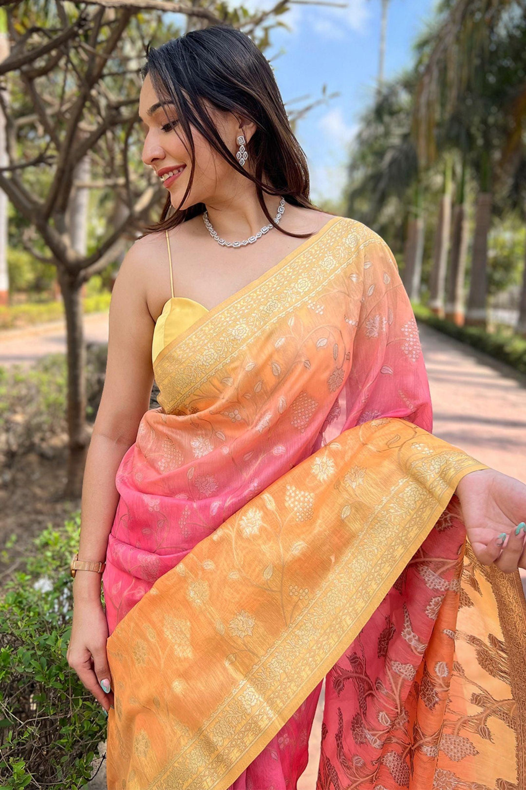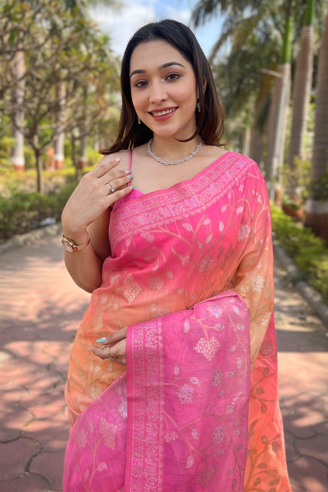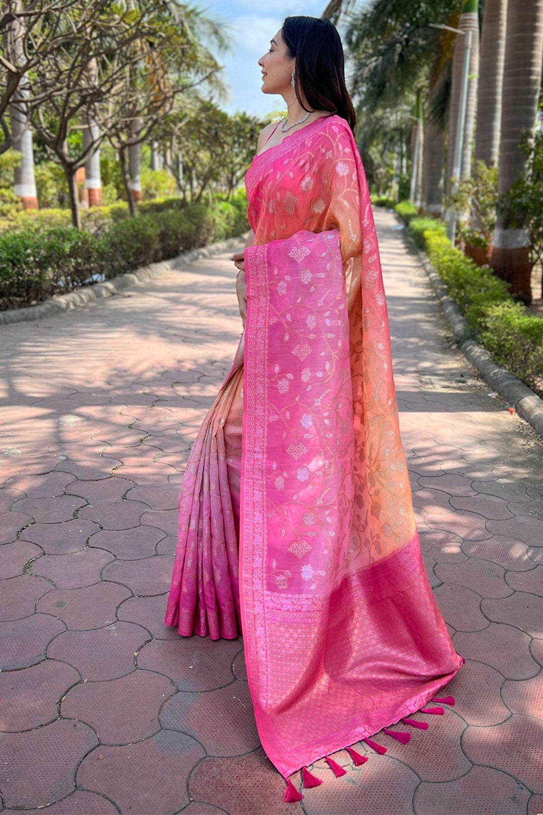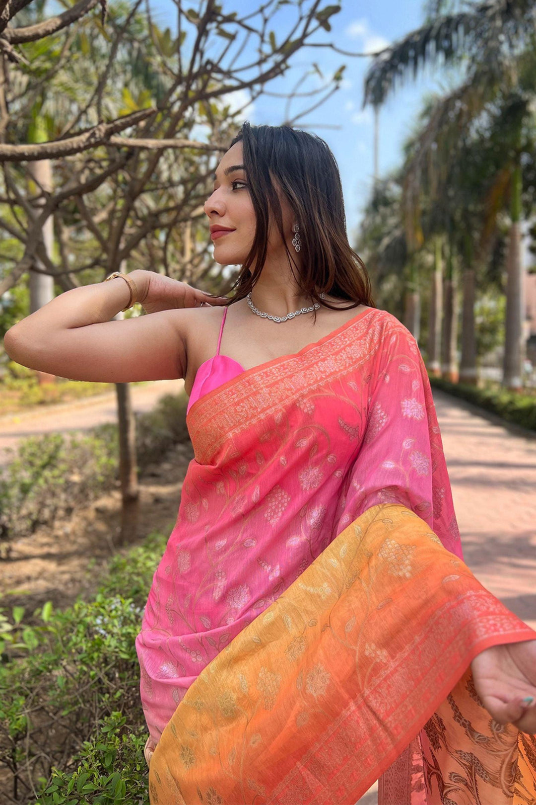 Introducing Glamwiz Ready To Wear Shaded Banarasi Saree. Experience the perfect blend of tradition and convenience with the Glamwiz Ready-to-Wear Saree. This stunning saree is designed to offer you the elegance of a traditional saree with the ease of modern fashion.