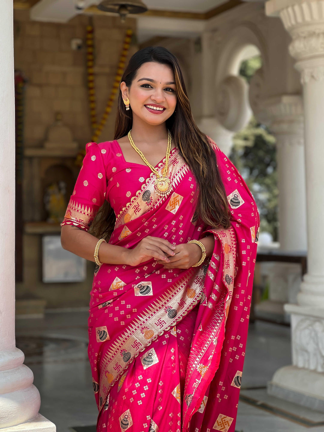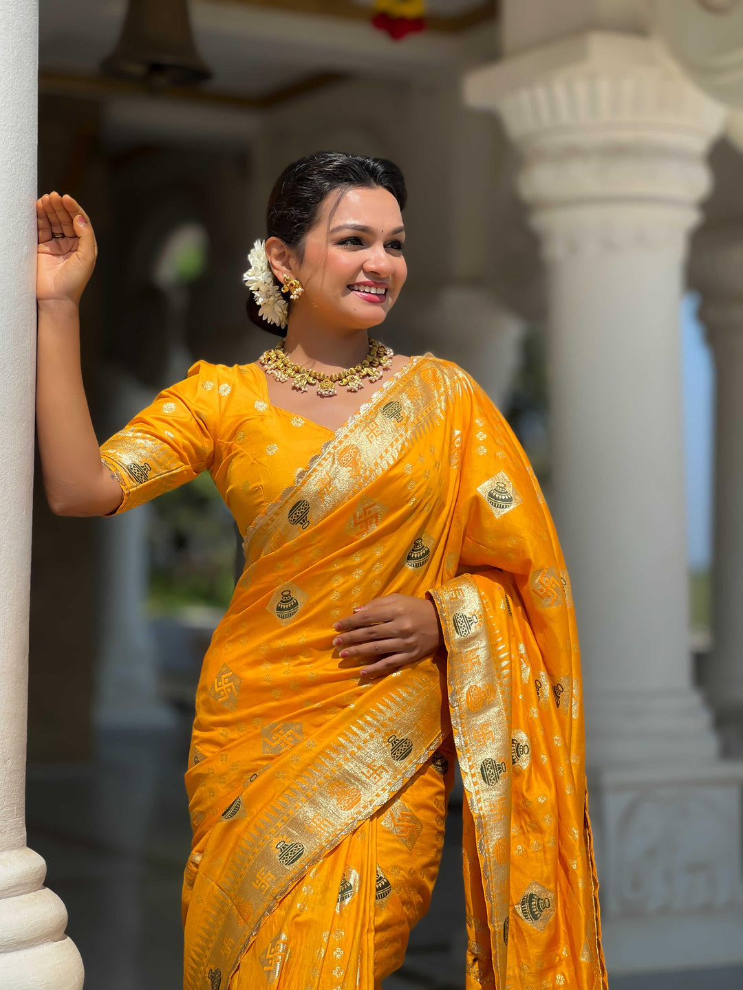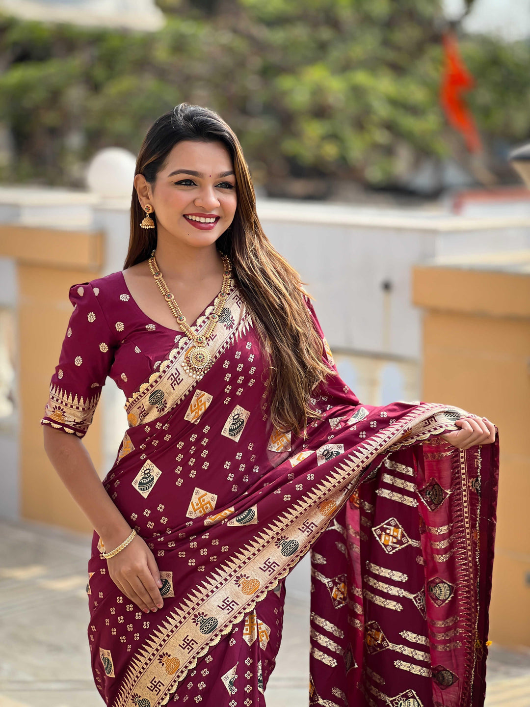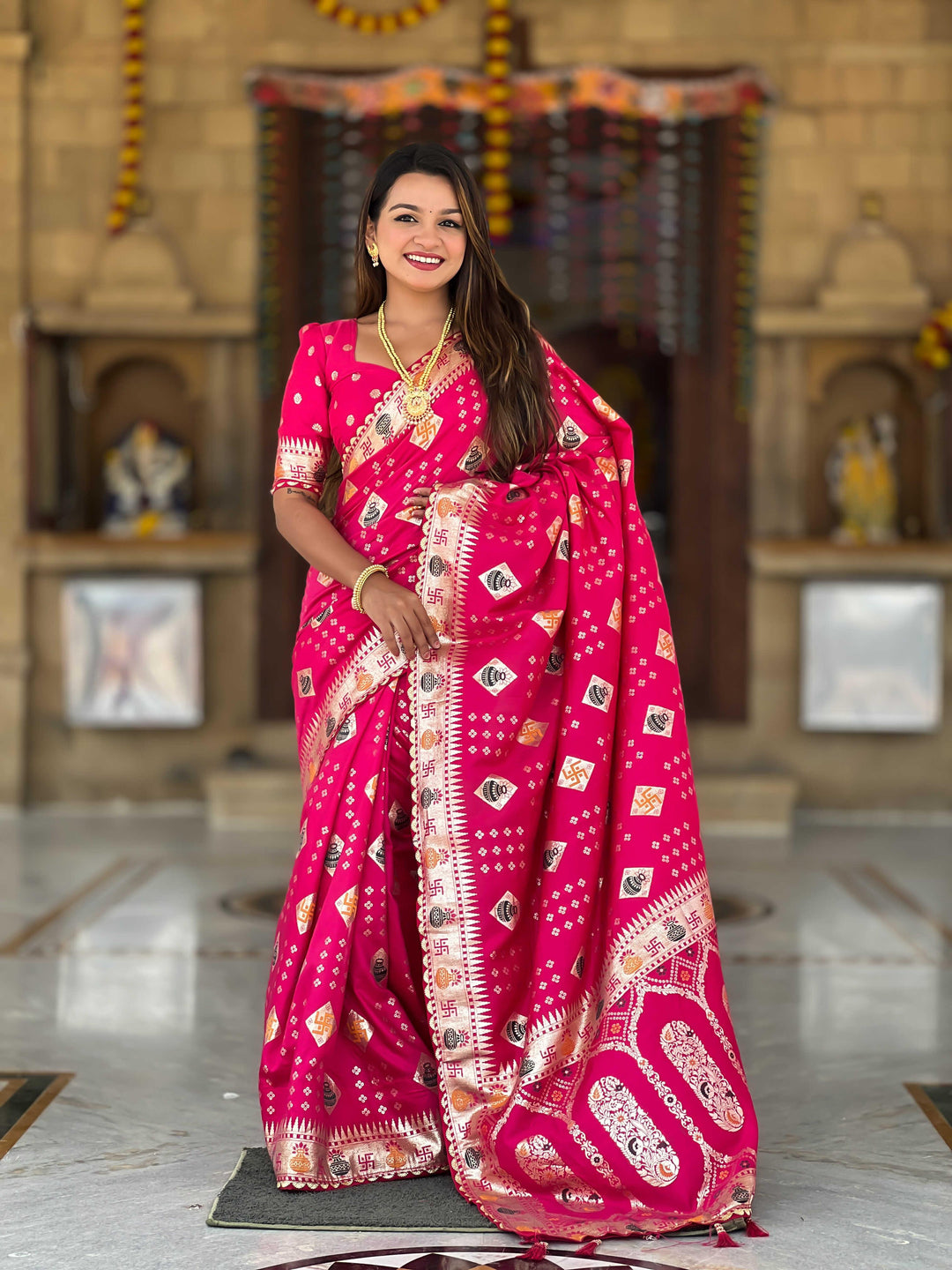 Introducing Glamwiz Ready To Wear Paithani Silk Saree. Experience the perfect blend of tradition and convenience with the Glamwiz Ready-to-Wear Saree. This stunning saree is designed to offer you the elegance of a traditional saree with the ease of modern fashion.