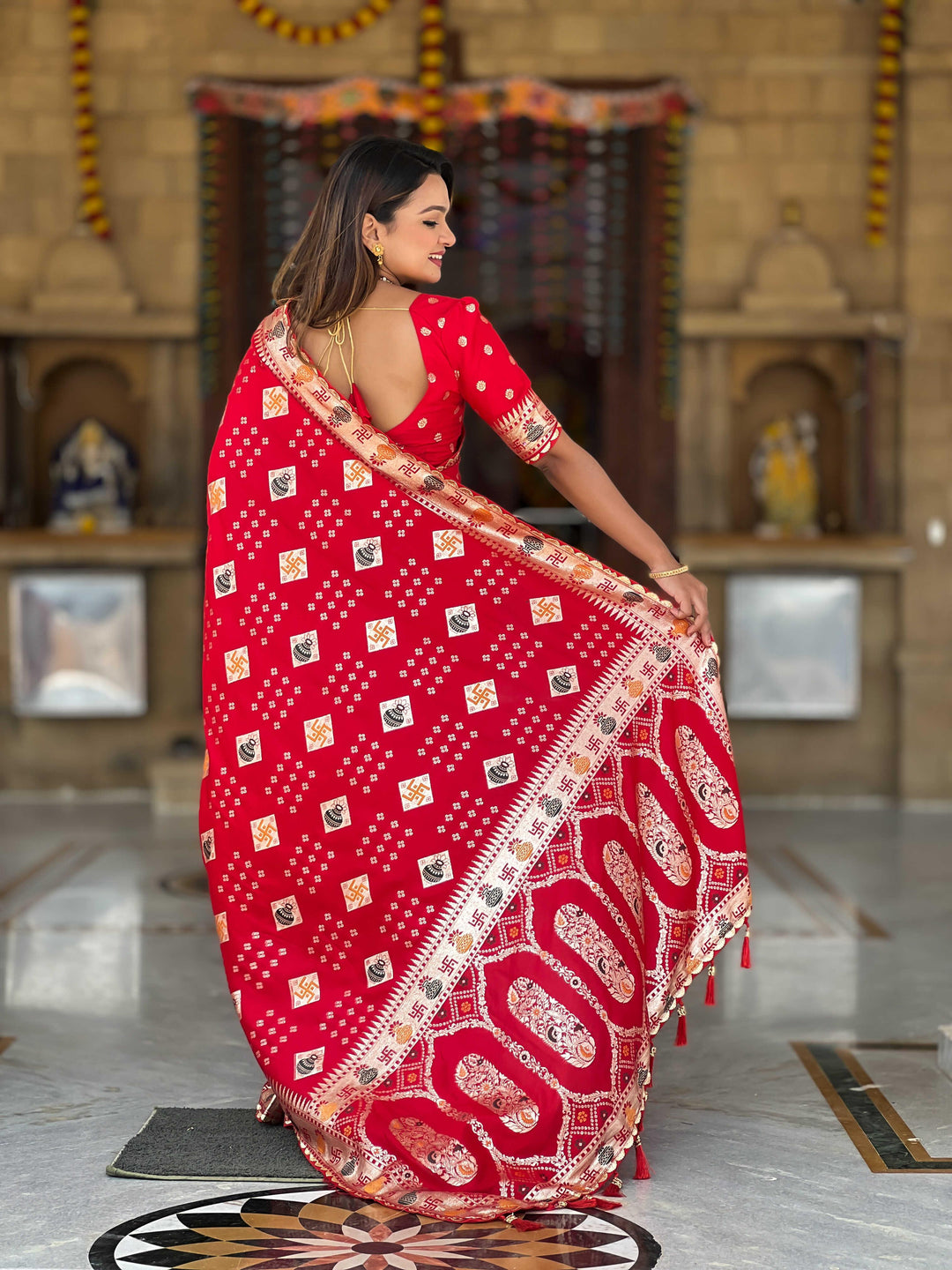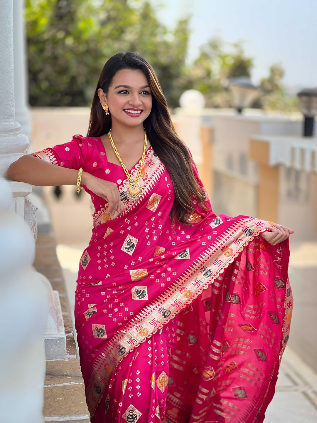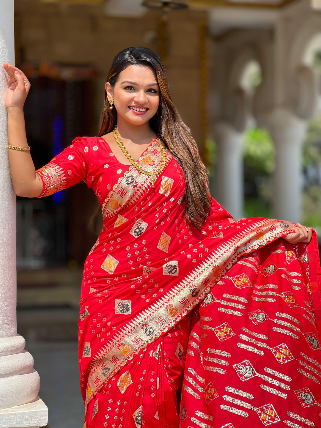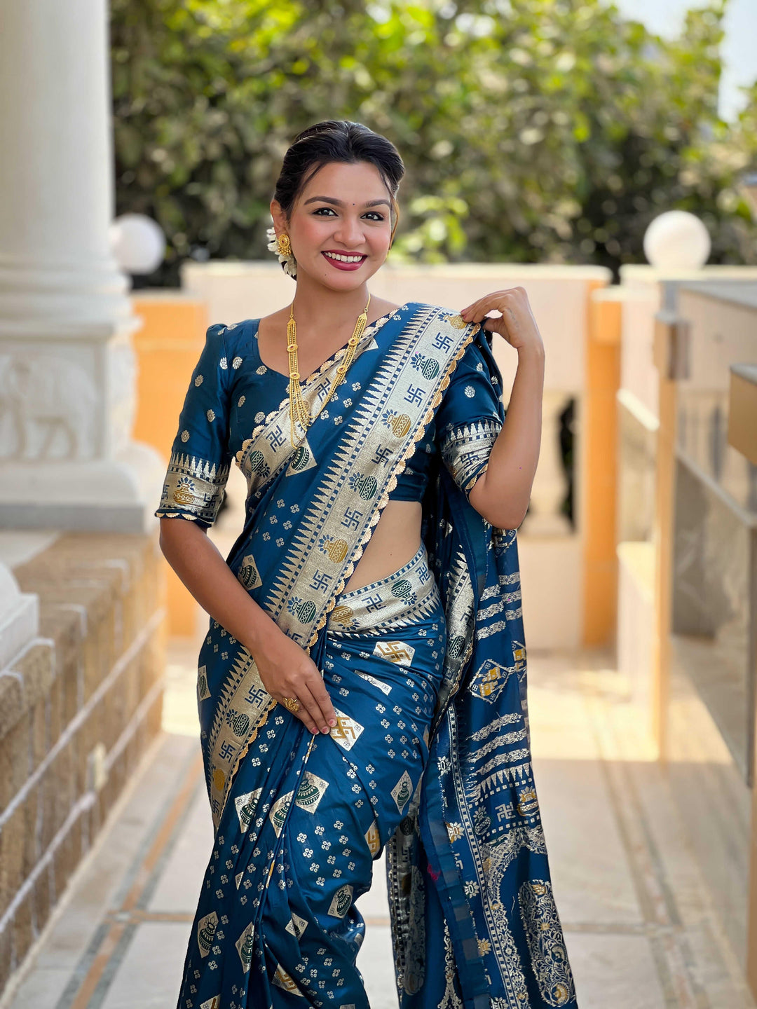 Introducing Glamwiz Ready To Wear Paithani Silk Saree. Experience the perfect blend of tradition and convenience with the Glamwiz Ready-to-Wear Saree. This stunning saree is designed to offer you the elegance of a traditional saree with the ease of modern fashion.