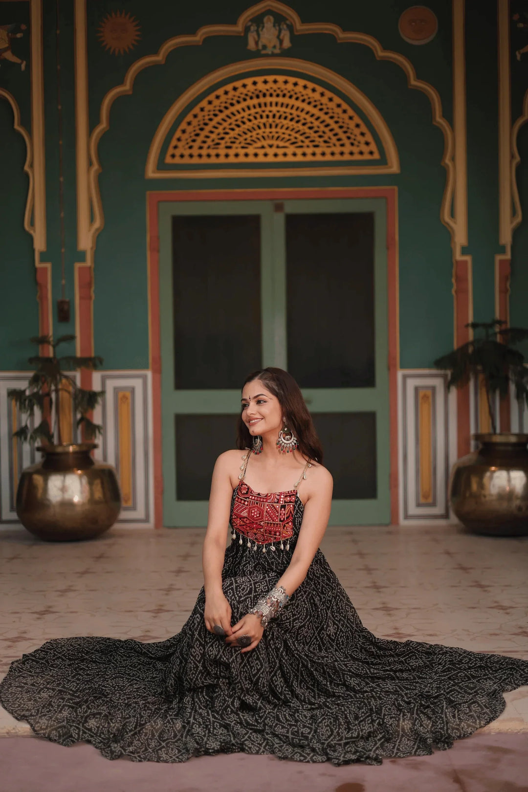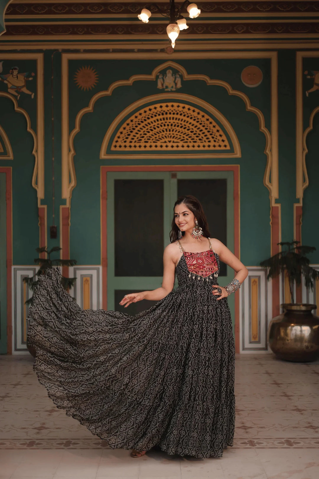Glamwiz Black Bandhej Printed Navratri Anarkali Gown