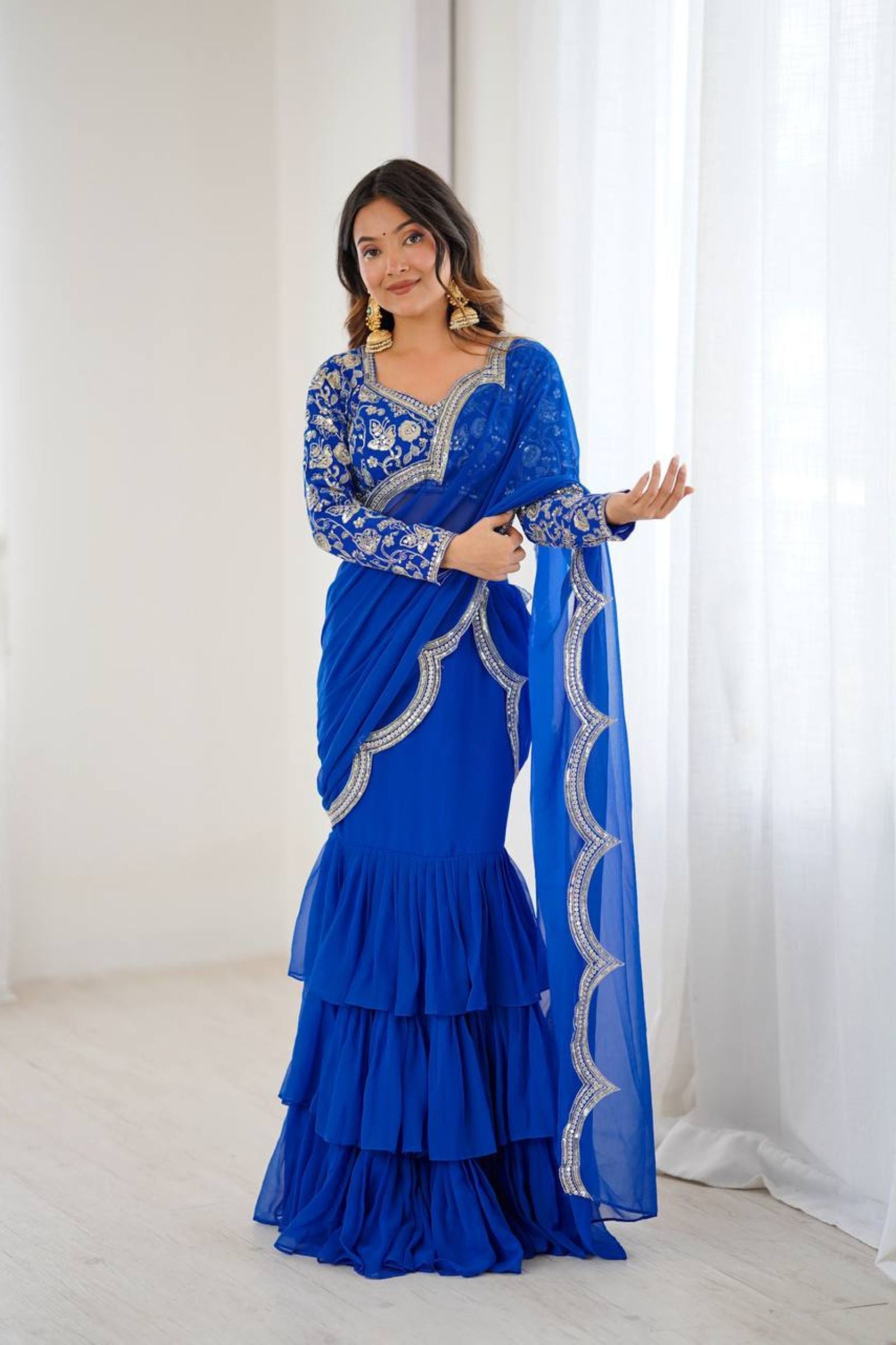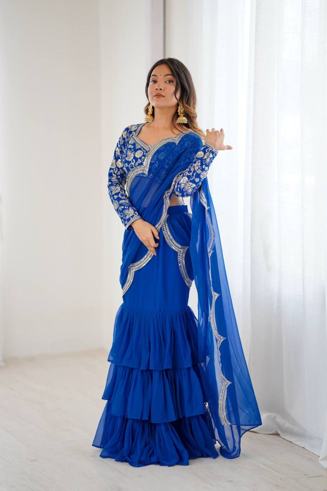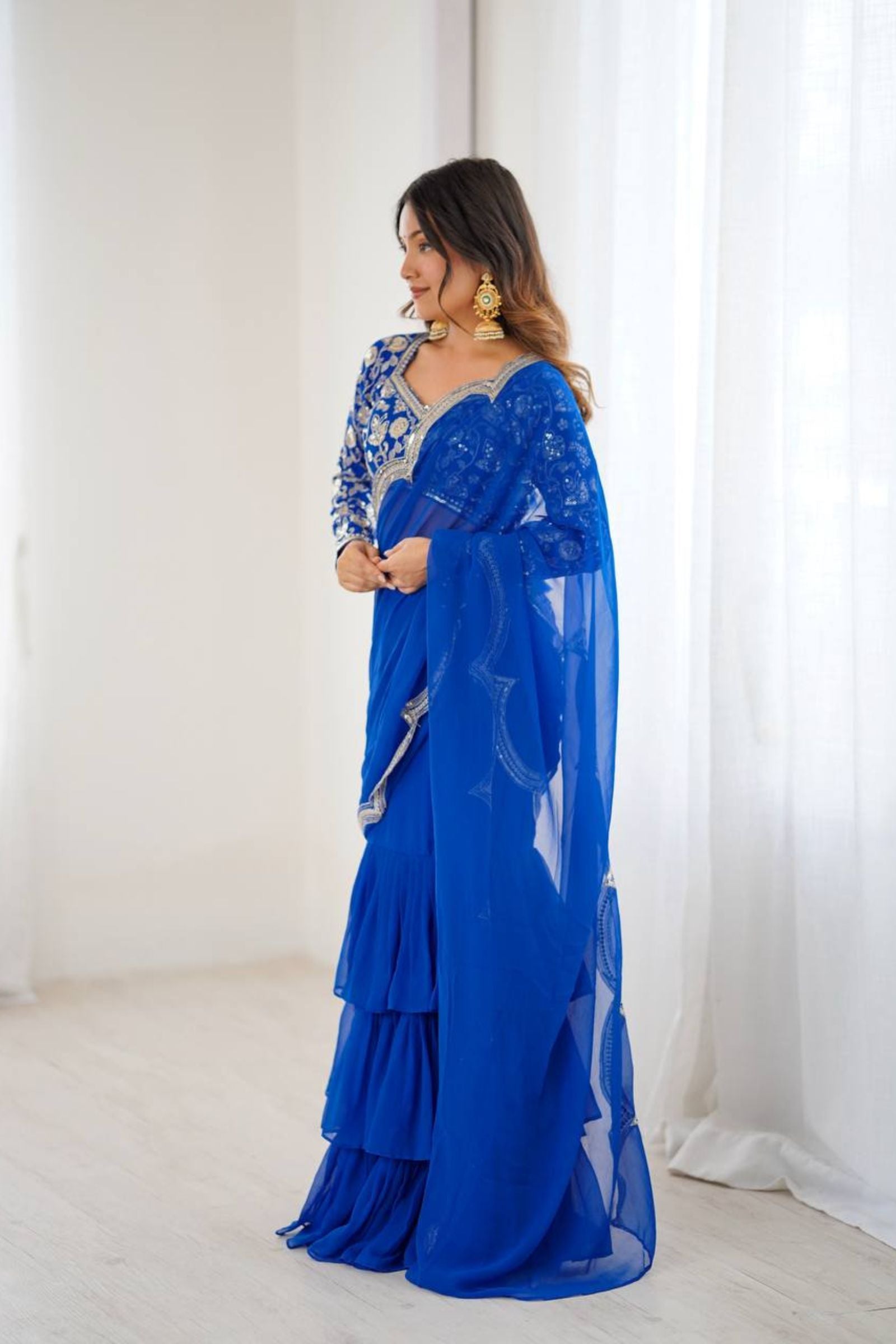 Electric Blue | Ready to Wear Ruffles Saree