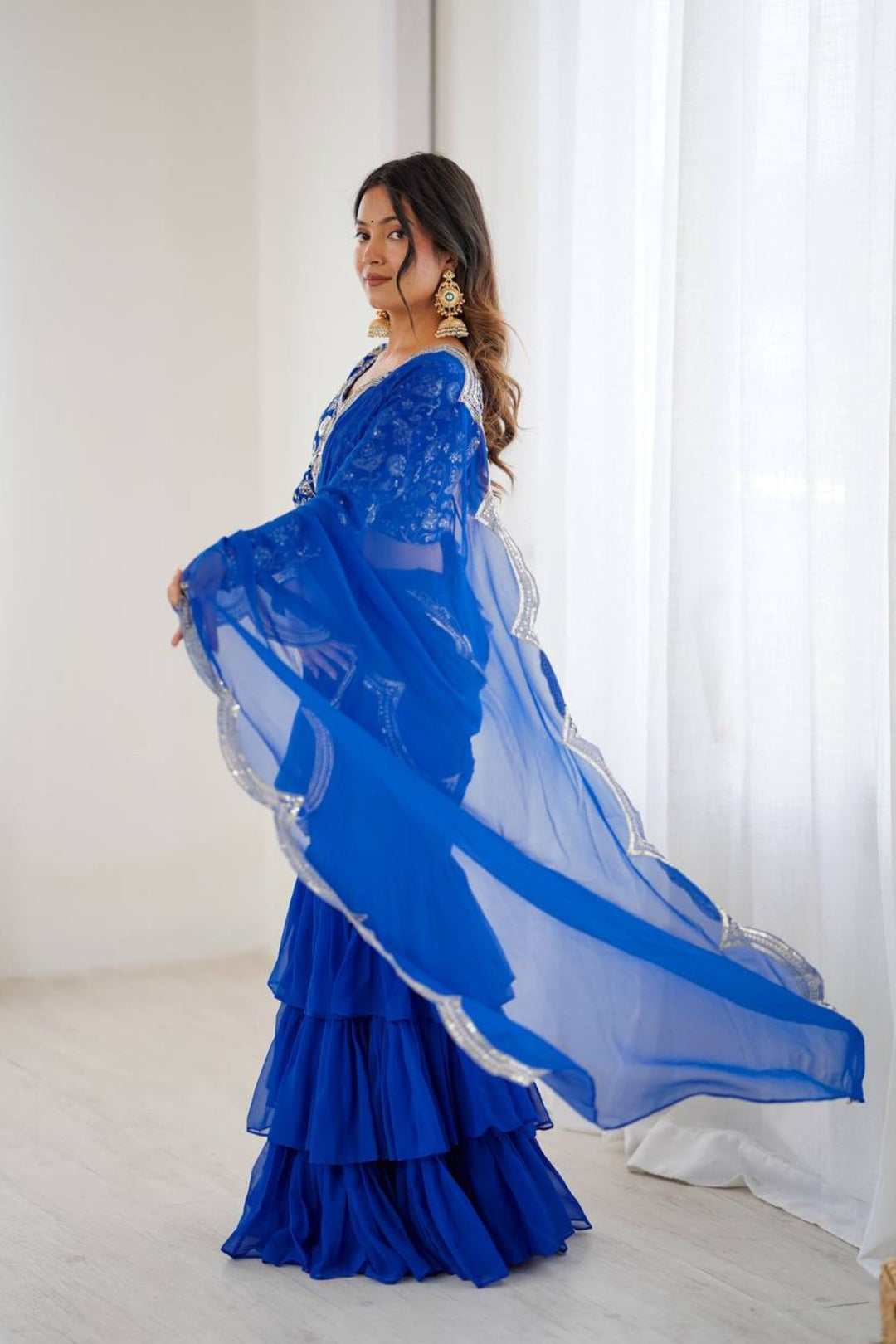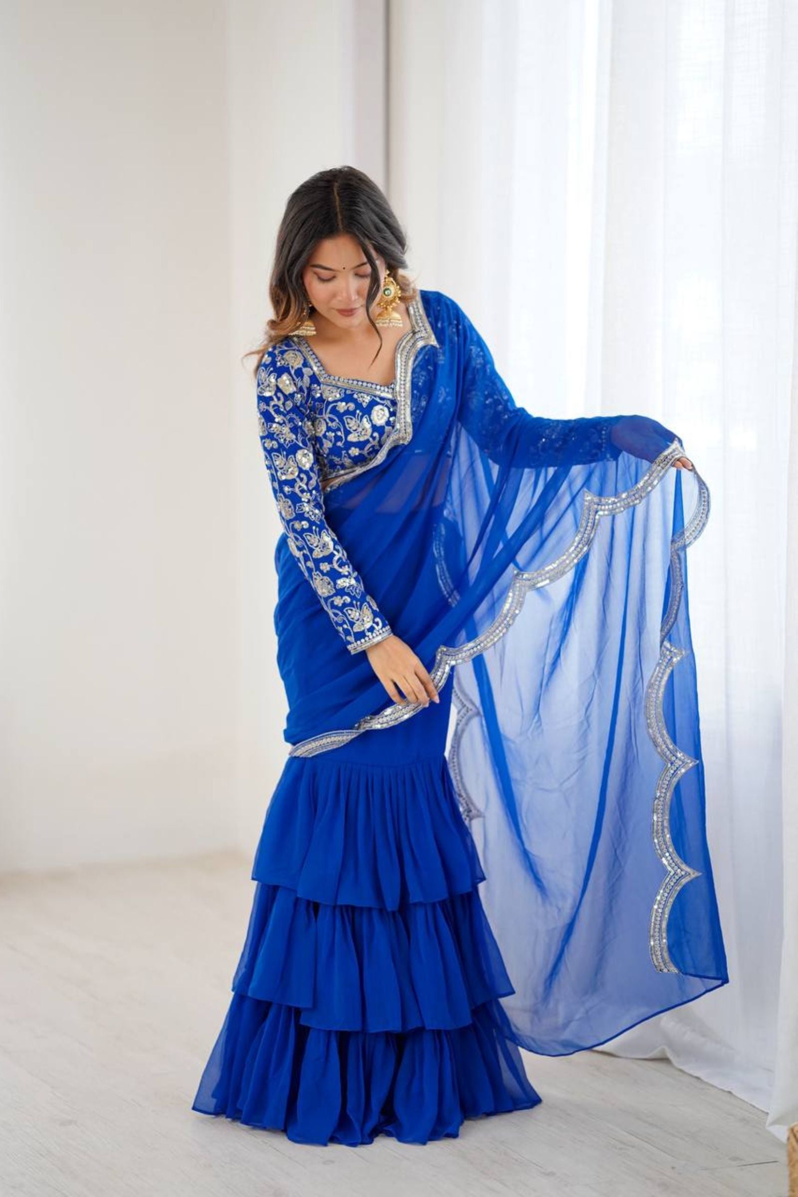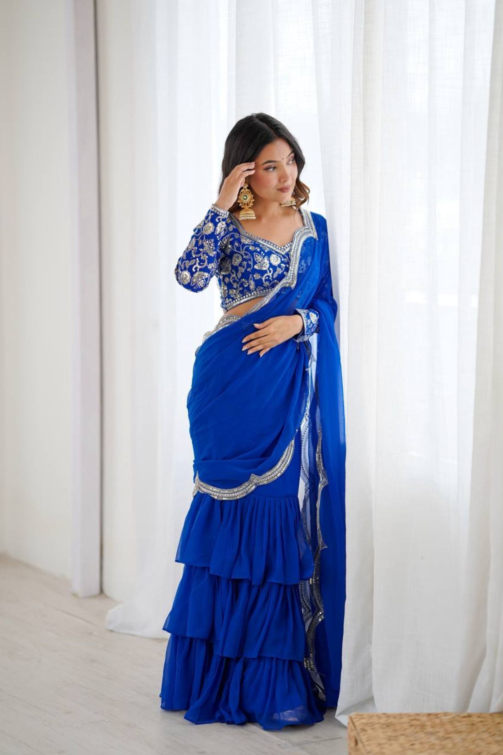 Electric Blue | Ready to Wear Ruffles Saree