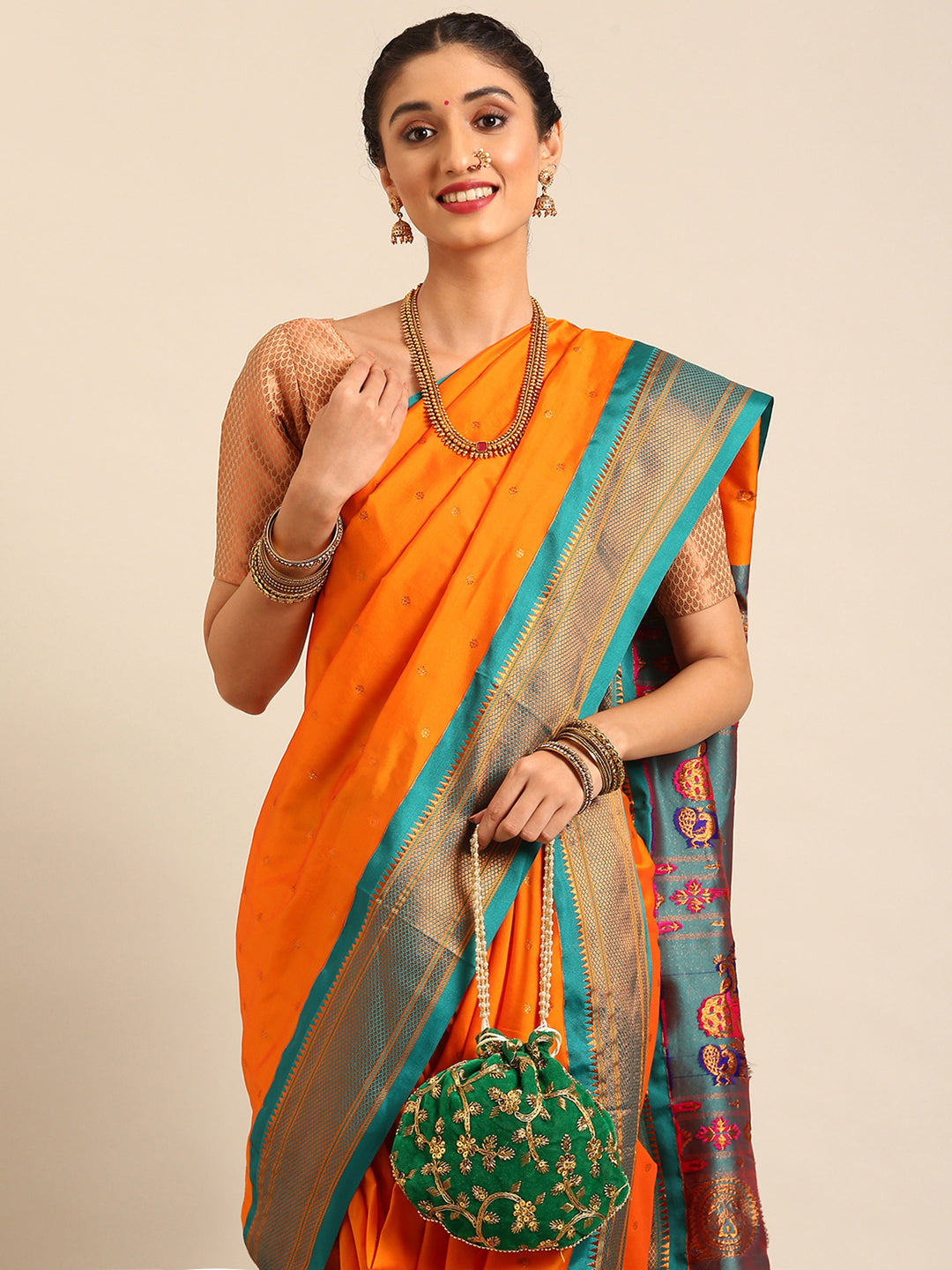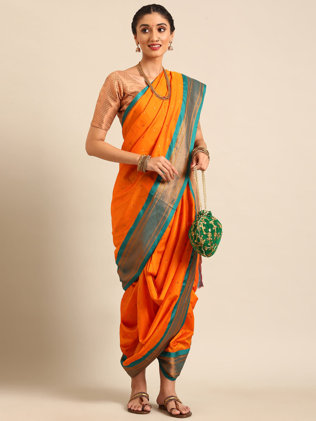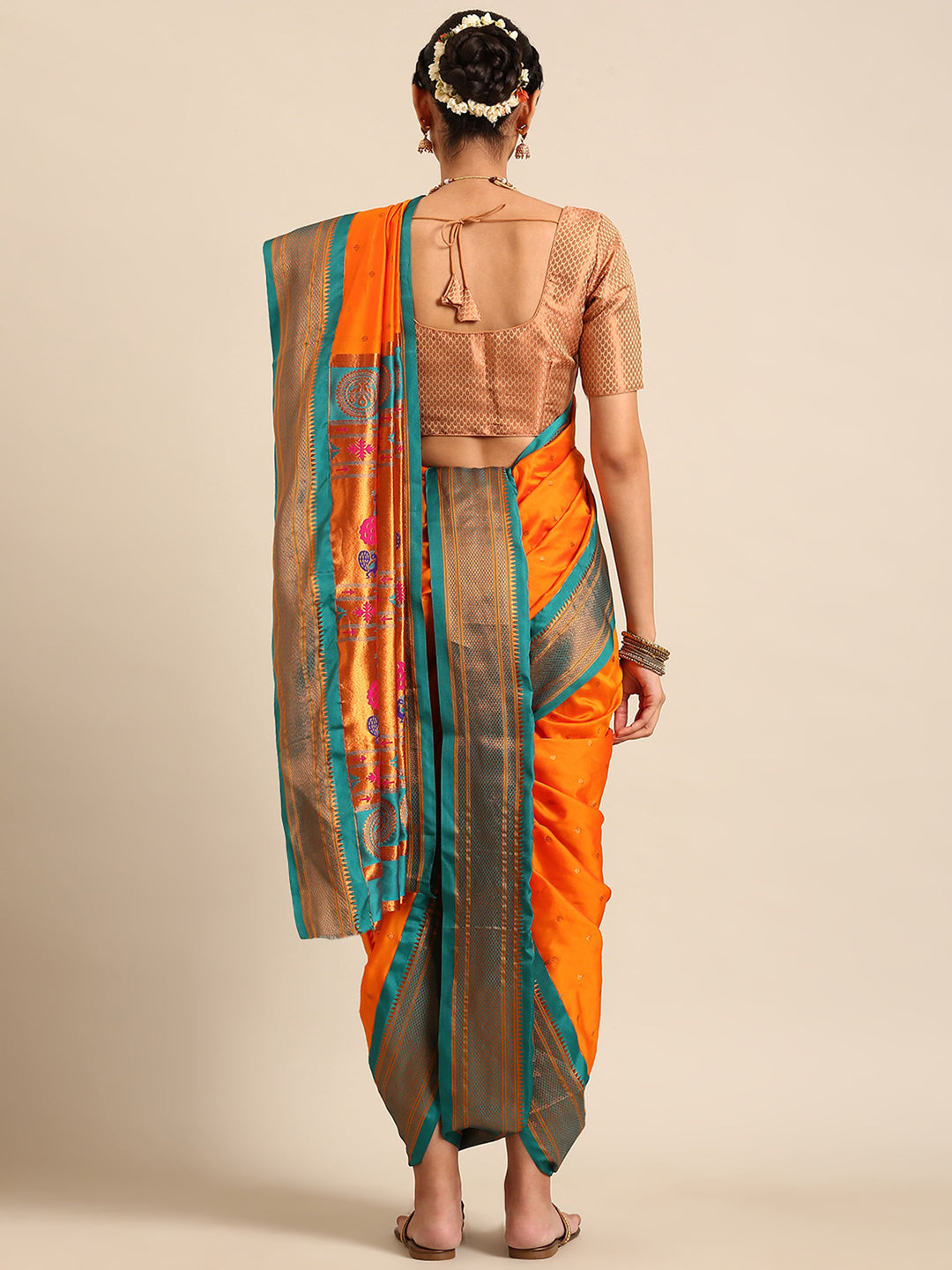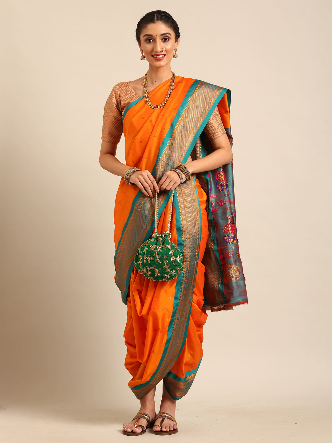 Glamwiz Orange & Rama Maharani Nauvari Paithani Saree