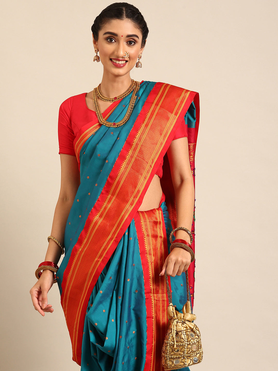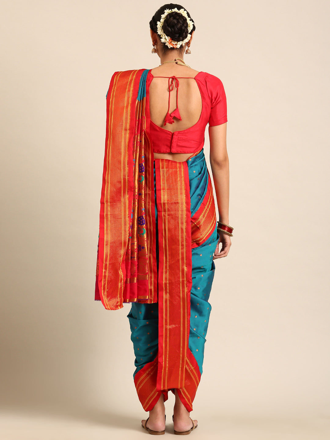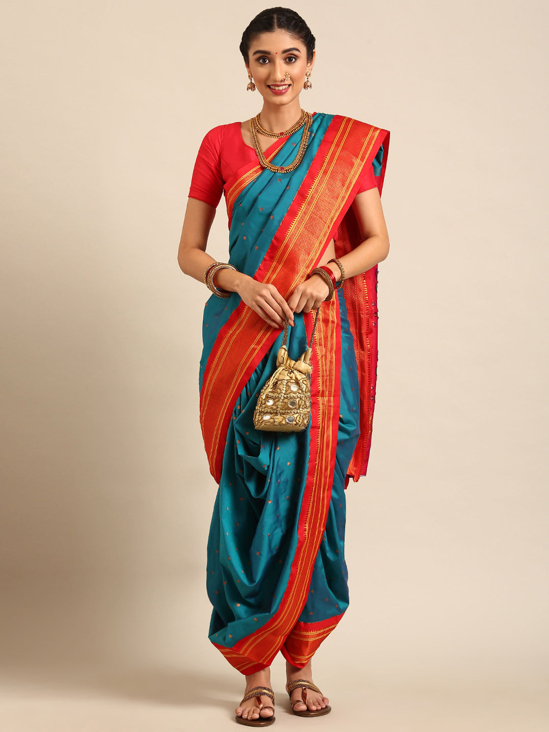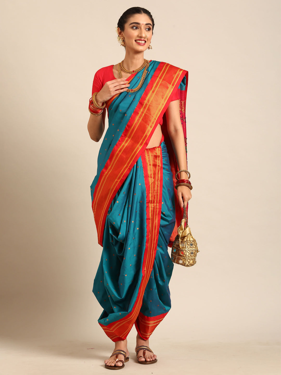 Glamwiz Rama & Red Maharani Nauvari Paithani Saree
