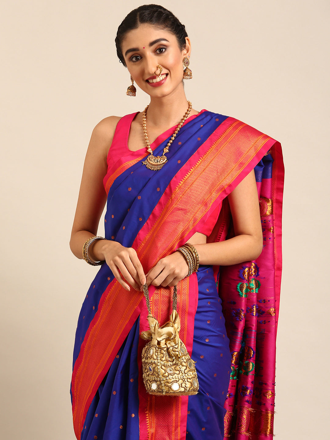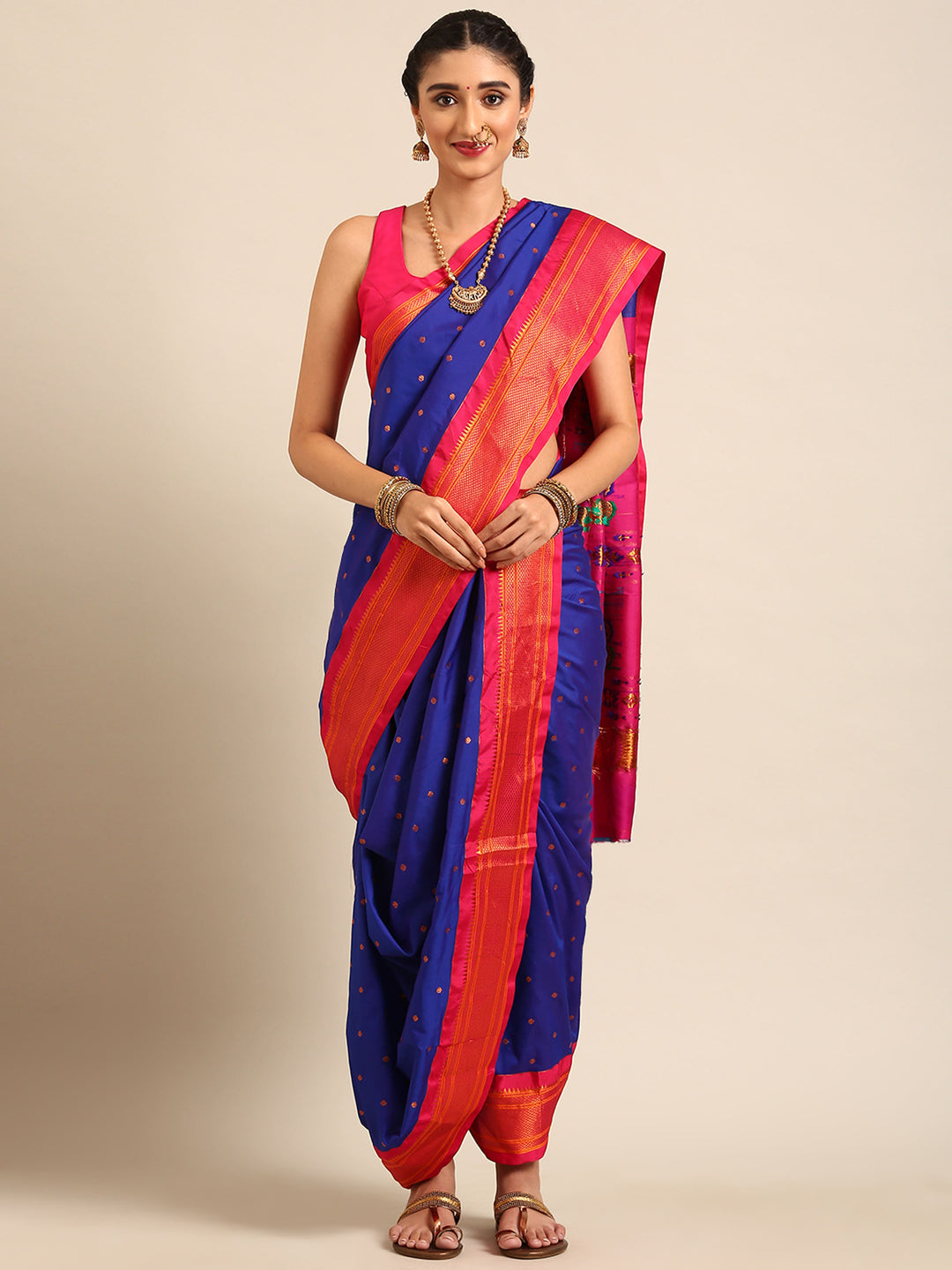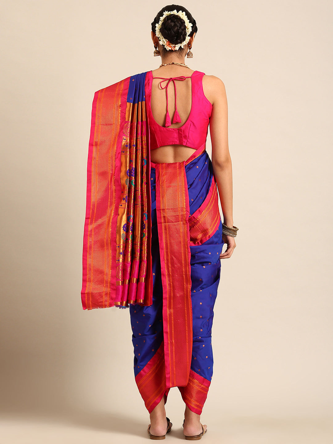 Glamwiz Royal Blue & Pink Maharani Nauvari Paithani Saree