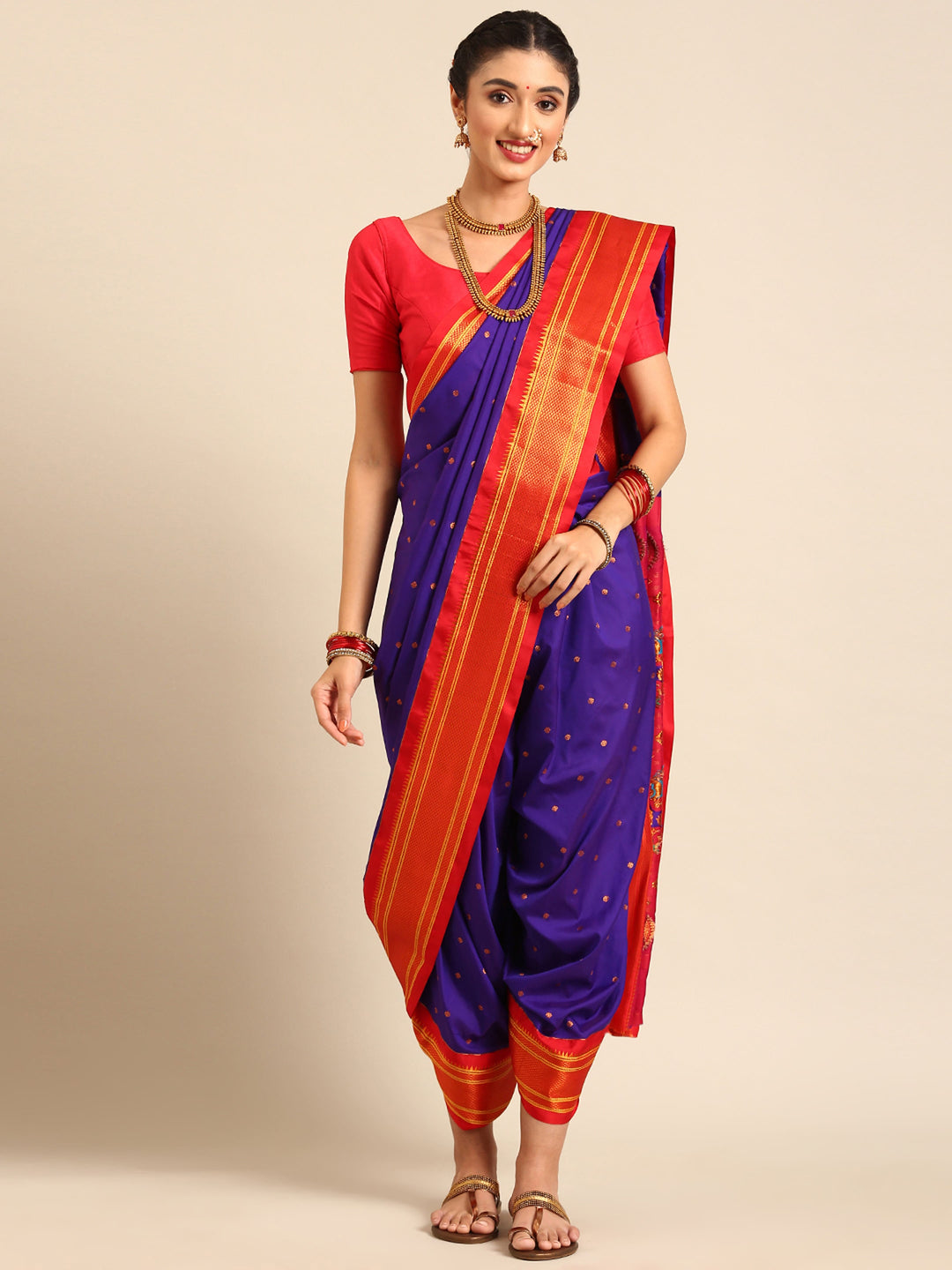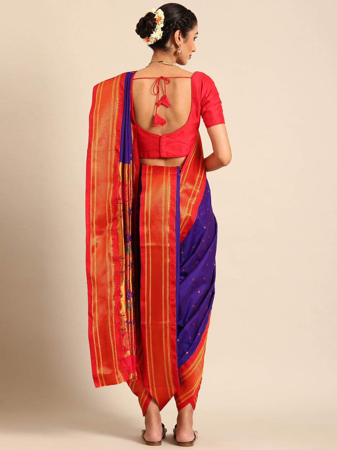 Glamwiz Violet & Red Maharani Nauvari Paithani Saree