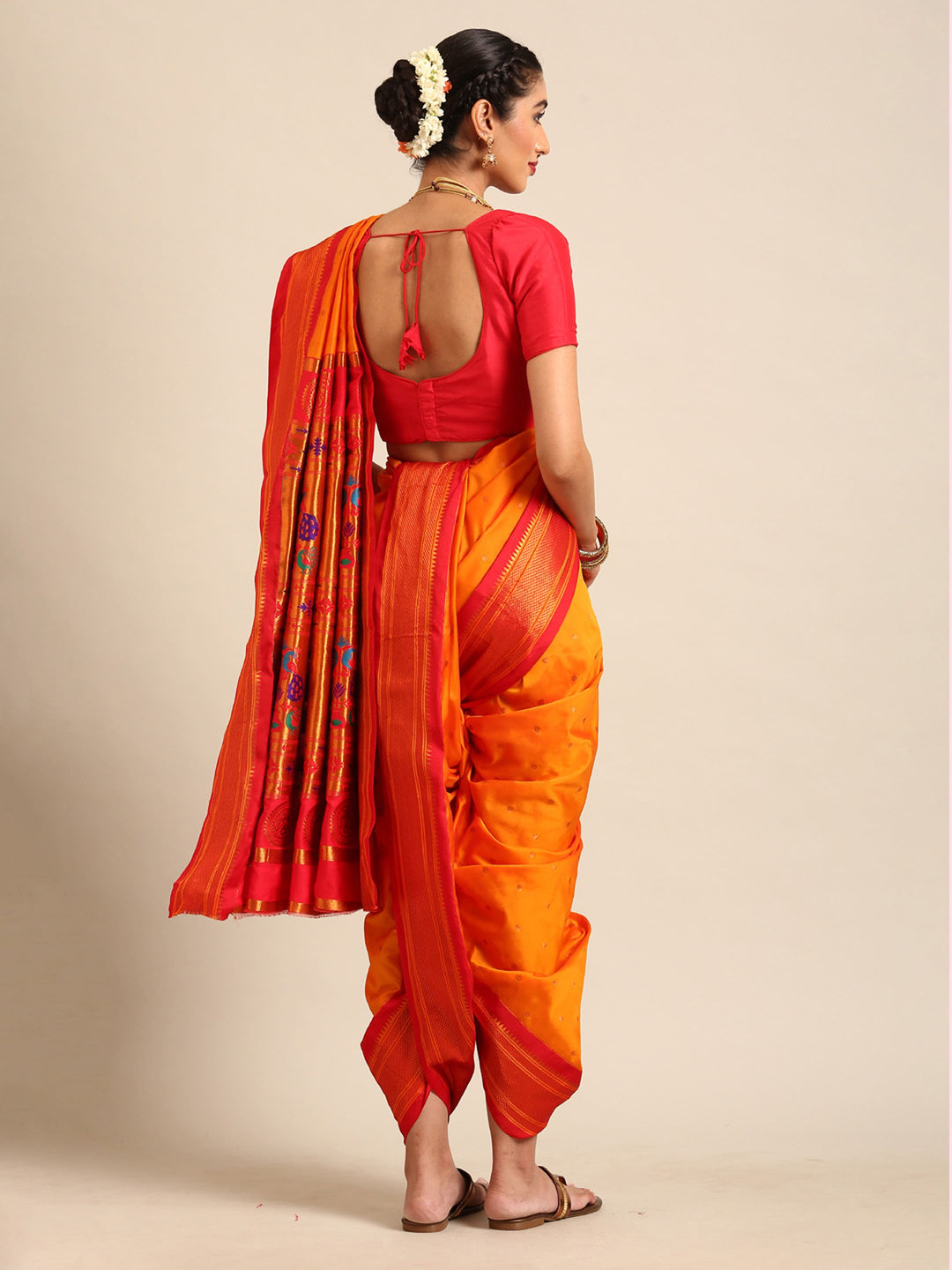 Glamwiz Orange & Red Maharani Nauvari Paithani Saree