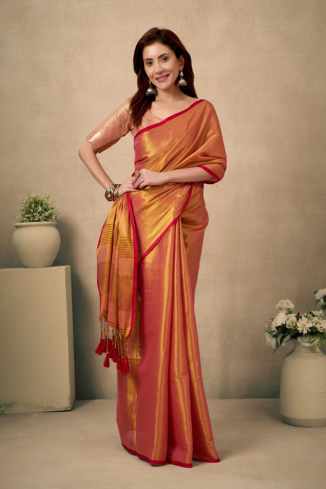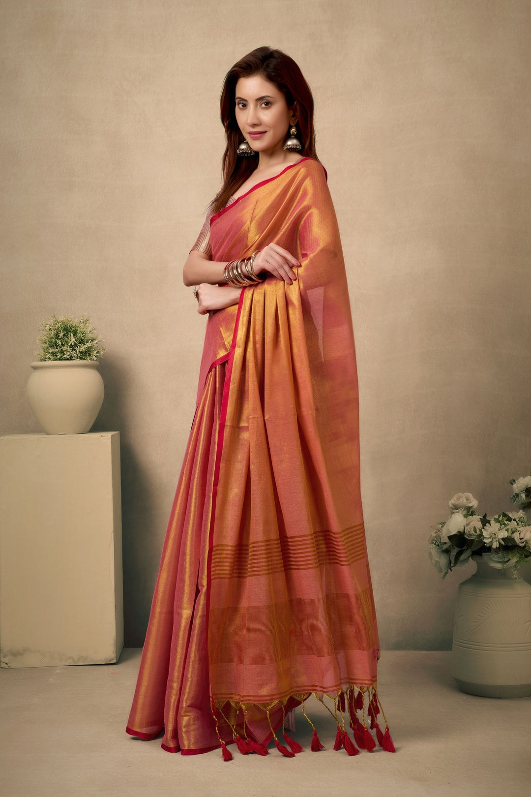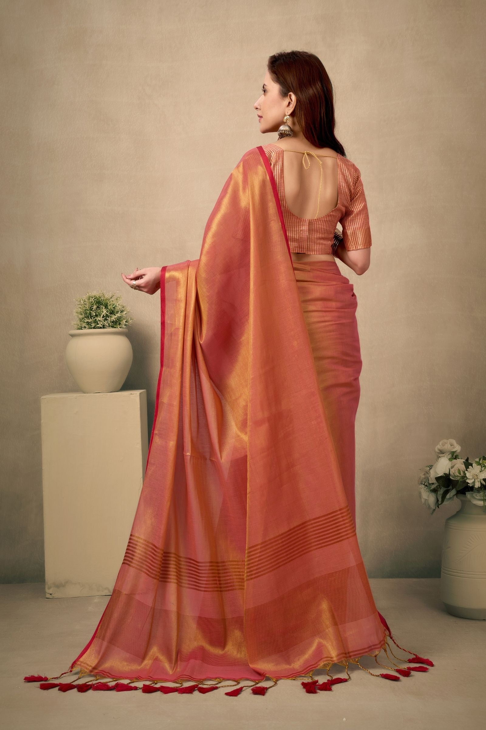 - Lightweight Mul Tissue Silk Saree with Tassel Pallu.
