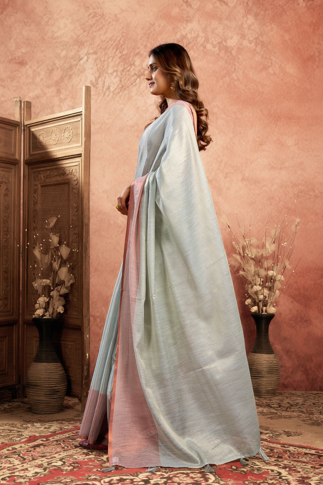 Ice Silk Blue | Ready to Wear Mul Tissue Saree